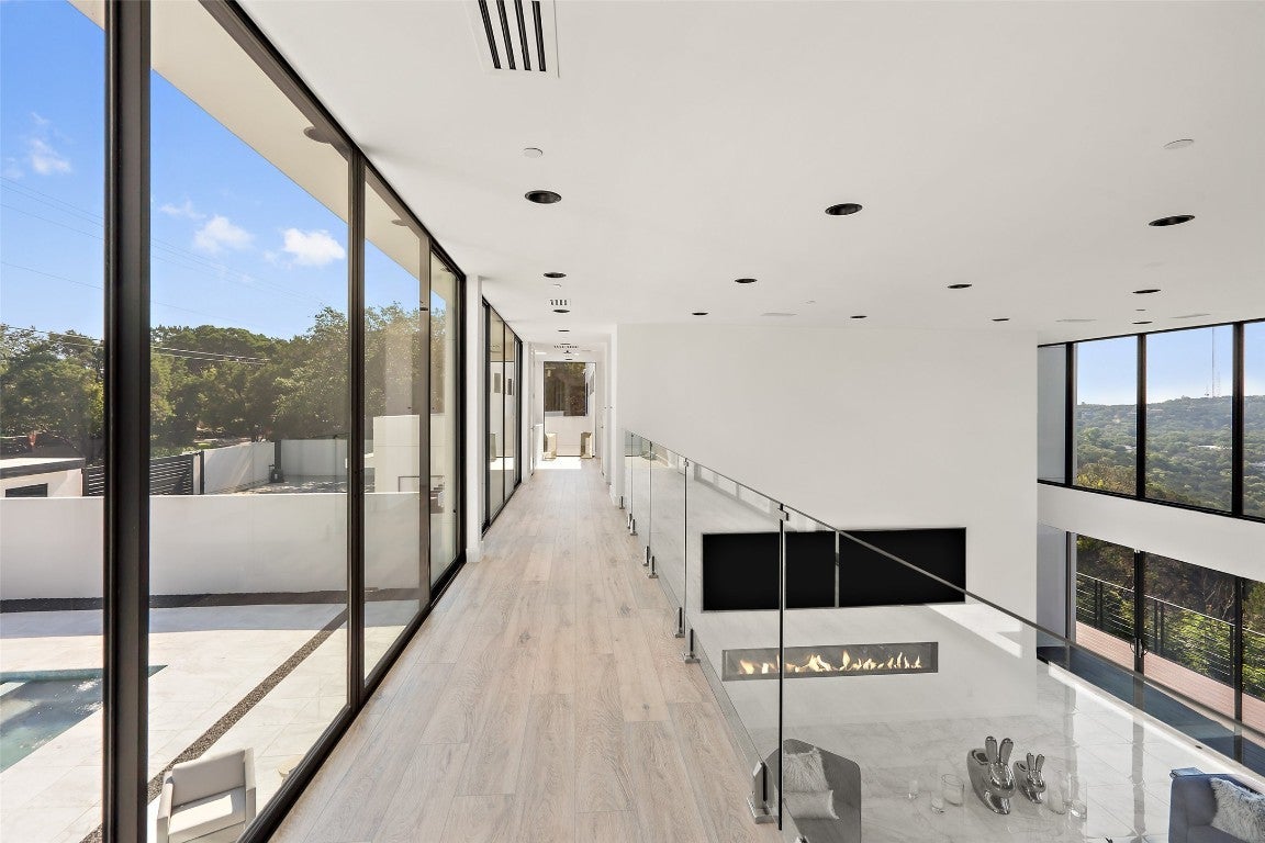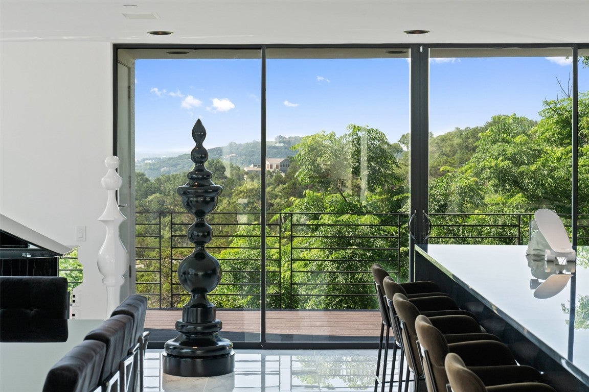 The pinnacle of modern luxury, this unparalleled contemporary estate has been exceptionally designed and extensively renovated. Nestled in the hills of Westlake Highlands and zoned to highly rated & highly sought-after Eanes ISD. Privately situated behind a stucco privacy wall, a gated entrance opens to reveal the impressive, stand alone estate that is 1501 Ridgecrest Dr. Walls of glass seamlessly integrate the expansive living and outdoor spaces and give way to breathtaking canyon views from every room. Ultra modern elegance meets functionality. A contemporary masterpiece, with the utmost attention to detail evident throughout. Design selections exude a modern sophisticated aesthetic (incl. Italian cabinetry, marble and stone throughout imported from Italy and Spain, Miele appliances, etc) and forward thinking, state-of-the-art home automation, security and A/V complete the spacious multilevel floor plan. Perfect for those that are seeking a private retreat of peace and serenity, those searching for amazing family space + those that love to entertain. The entire property is a showcase of stone and glass & black accent detail in every room offer a contrasting element, creating a striking statement against crisp, white walls and pops of chrome fixtures and accents. The main floor features a flex room, access to auto lounge & garage, great room, guest bath and the chef's kitchen is thoughtfully designed with an exquisite black stone center island and sleek black Italian cabinetry concealing state of the art Miele appliances. Accessibly by elevator or stairs, the upper level is thoughtfully designed - open to the main floor the primary suite is secluded to one wing & bedrooms, shared bath & bonus room in the other. The lower level features a wine lounge, home theater, full bath, & guest suite. Truly an exceptional property for the most discerning audiences, weaving contemporary design, home automation and breathtaking views to create a one-of-a-kind living experience.