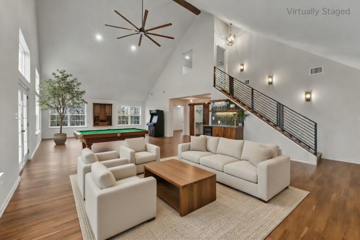 20808 Sandy Brown Ln, Webberville, TX 78621 — Country Living Meets Comfortable Luxury! Welcome to your sprawling 5-acre retreat just minutes from town and a short drive to Austin. Originally built in 2003 and thoughtfully expanded in 2023 with an approximately 1,700 sq ft addition, this exceptional 3,504 sq ft home now offers a 5-bedroom + flex room, 3.5-bath layout that blends modern functionality with peaceful rural living. As you arrive, a gated entry and mature trees signal privacy and serenity. Enjoy peaceful country living with room to roam, plus a 30’ x 36’ barn ideal for a workshop, equipment storage, hobbies, or animals. The land is further enhanced by an established orchard with approximately 29 fruit trees, offering a productive and picturesque outdoor setting. The property’s generous acreage provides space for gardening, outdoor entertaining, play areas, and more — all framed by the natural Texas landscape. Inside, an open and inviting layout is perfect for both everyday living and larger gatherings. The heart of the home features a well-appointed kitchen with breakfast bar and ample counter space, flowing seamlessly into the living and dining areas. Large windows bring the outdoors in, while a cozy fireplace anchors the living room for relaxing evenings. Enjoy the tranquility of country life while remaining close to shopping, dining, parks, and commuter routes. Prime location with convenient access to major employers and innovation hubs: approximately 20 minutes to Tesla Gigafactory Texas, a short drive to SpaceX, The Boring Company, and Hyperloop Plaza in Bastrop, and easy access to Austin — all while maintaining privacy and acreage.