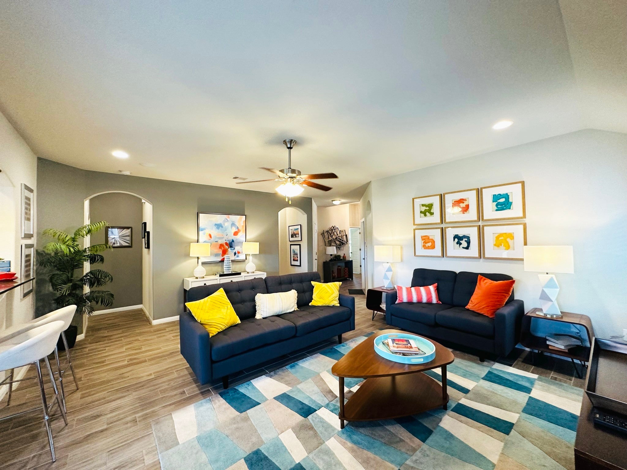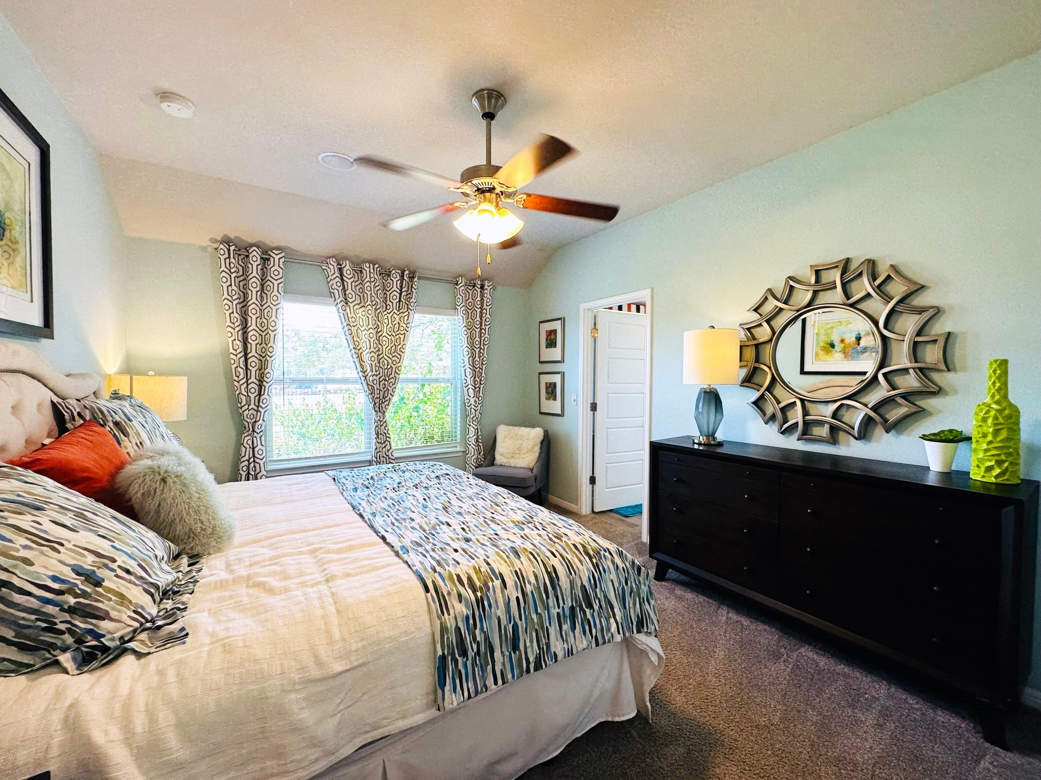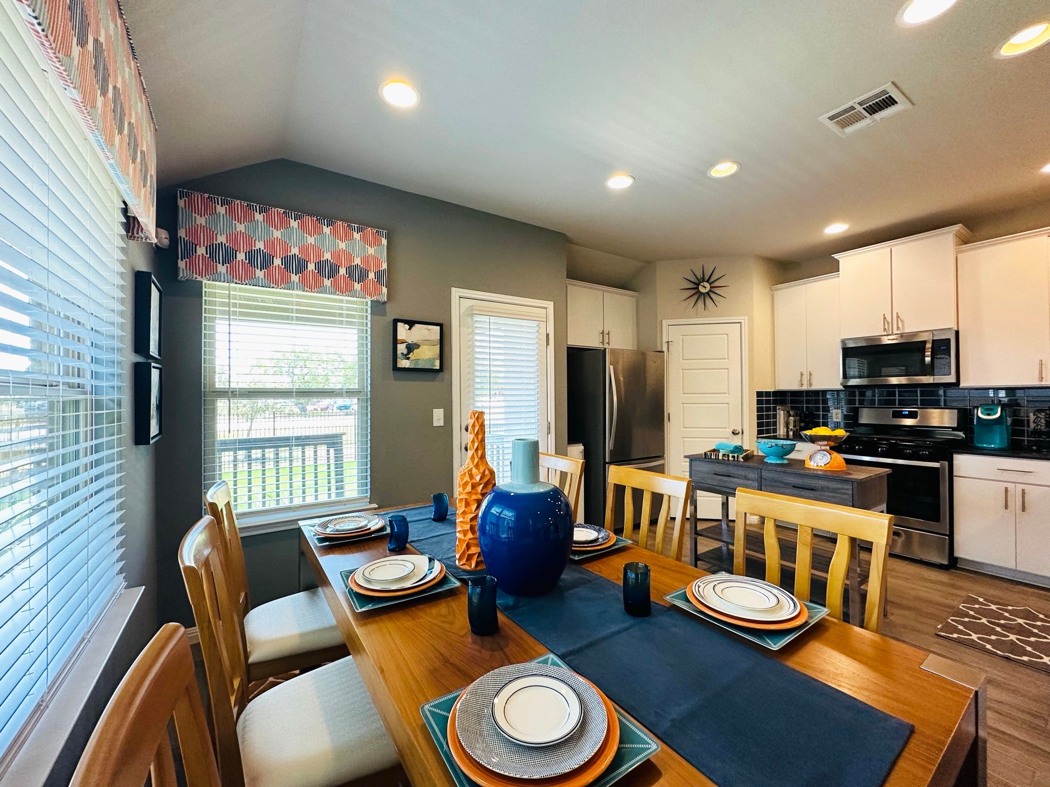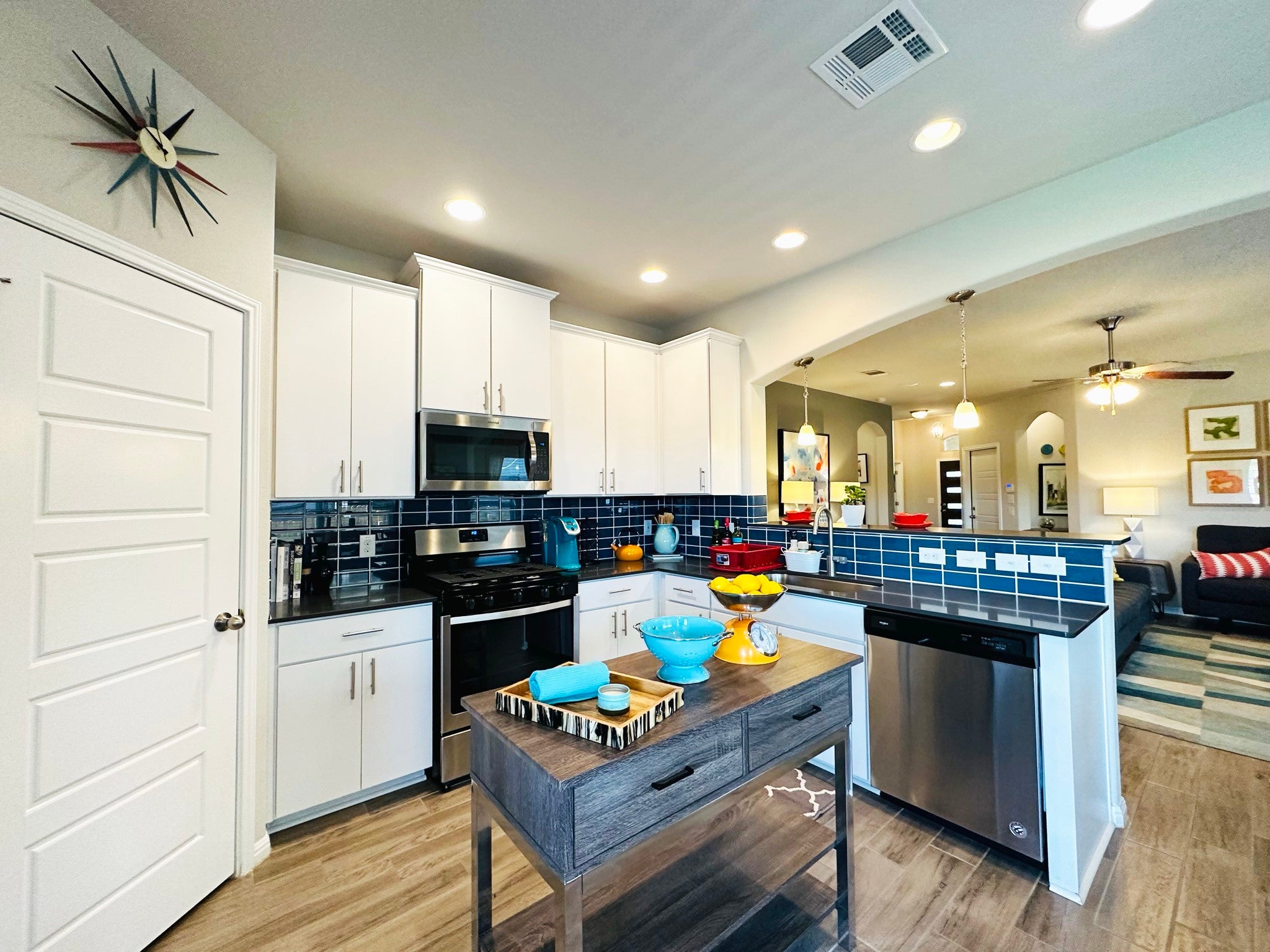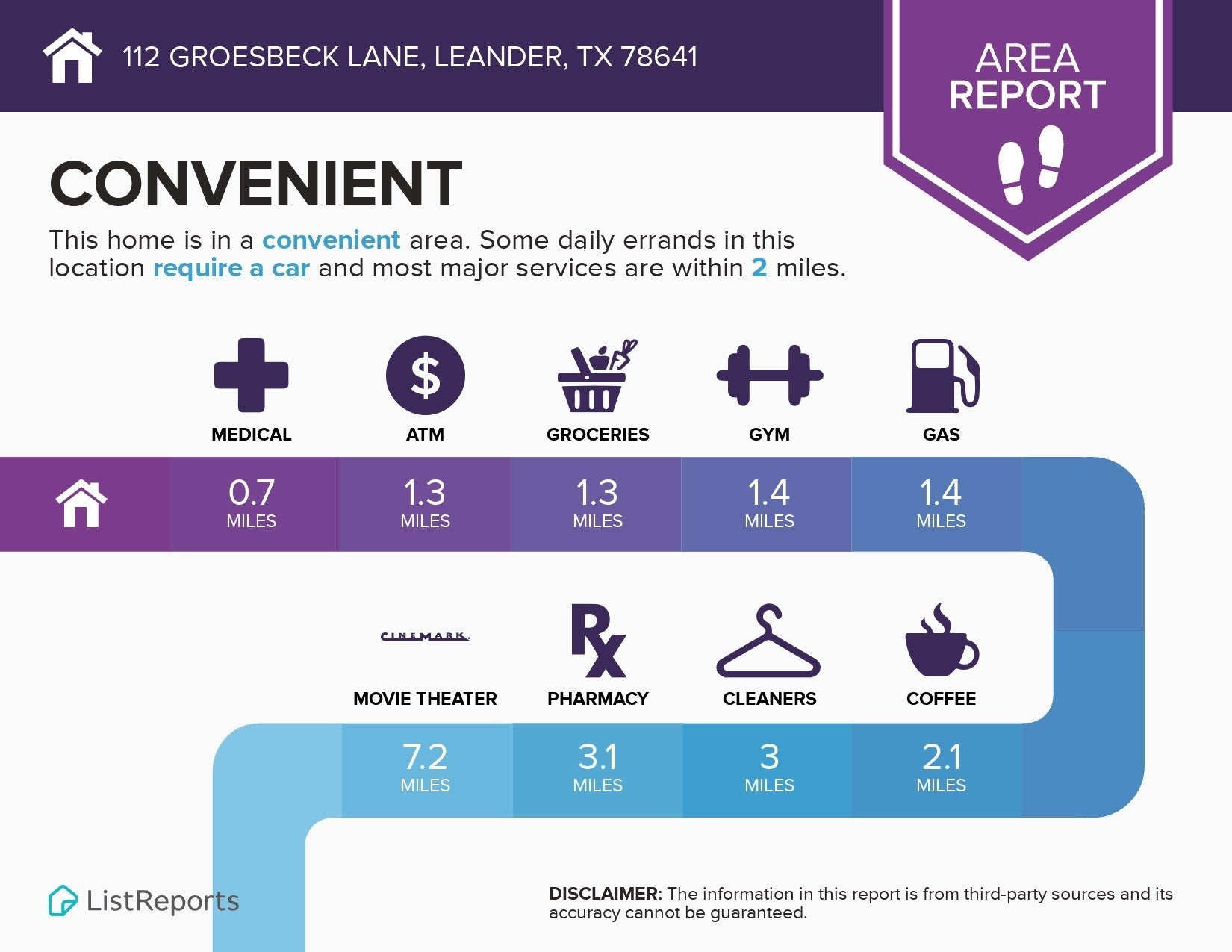 Beautiful fully furnished home in an excellent location, breakfast bar, ceiling fans, Quartz counter, Double vanity, French doors open kitchen, pantry, all bedrooms on main, recessed lighting, laundry room on main, walk in closet. Refrigerator with ice maker, dryer/washer included. @ car garage with remote and easy access keypad. Beautiful landscape. Automatic sprinkler system with rain sensor. Walking distance to pool and amenity center, Wrought iron fence all around. Walking trails and dog parks. Local eatery and shopping in close proximity. Easy access to toll 183, short distance to HEB center and Costco, only minutes to Varity of restaurants and shopping on 1431. Zoned to Highly rated Leander ISD Schools. Larkspur Elementary School 0.2 miles drive time 1-3 minutes walking time approximately 5 minutes. Danielson Middle School distance 2-3 miles, driving time 5-7 minutes approximately. Glenn High School distance 2-6 miles, drive time 6-9 minutes approximately. Leander school district provides bus transportation for eligible students; students are assigned to designated neighborhood bus stop (not always at right at the house) stops are typically inside the neighborhood often a short walking distance. However, students must register for the bus+ get a smart tag through the district to be assigned a route. (leanderisd.org) Since larkspur elementary is so close may not qualify for bus service if within a certain distance threshold.