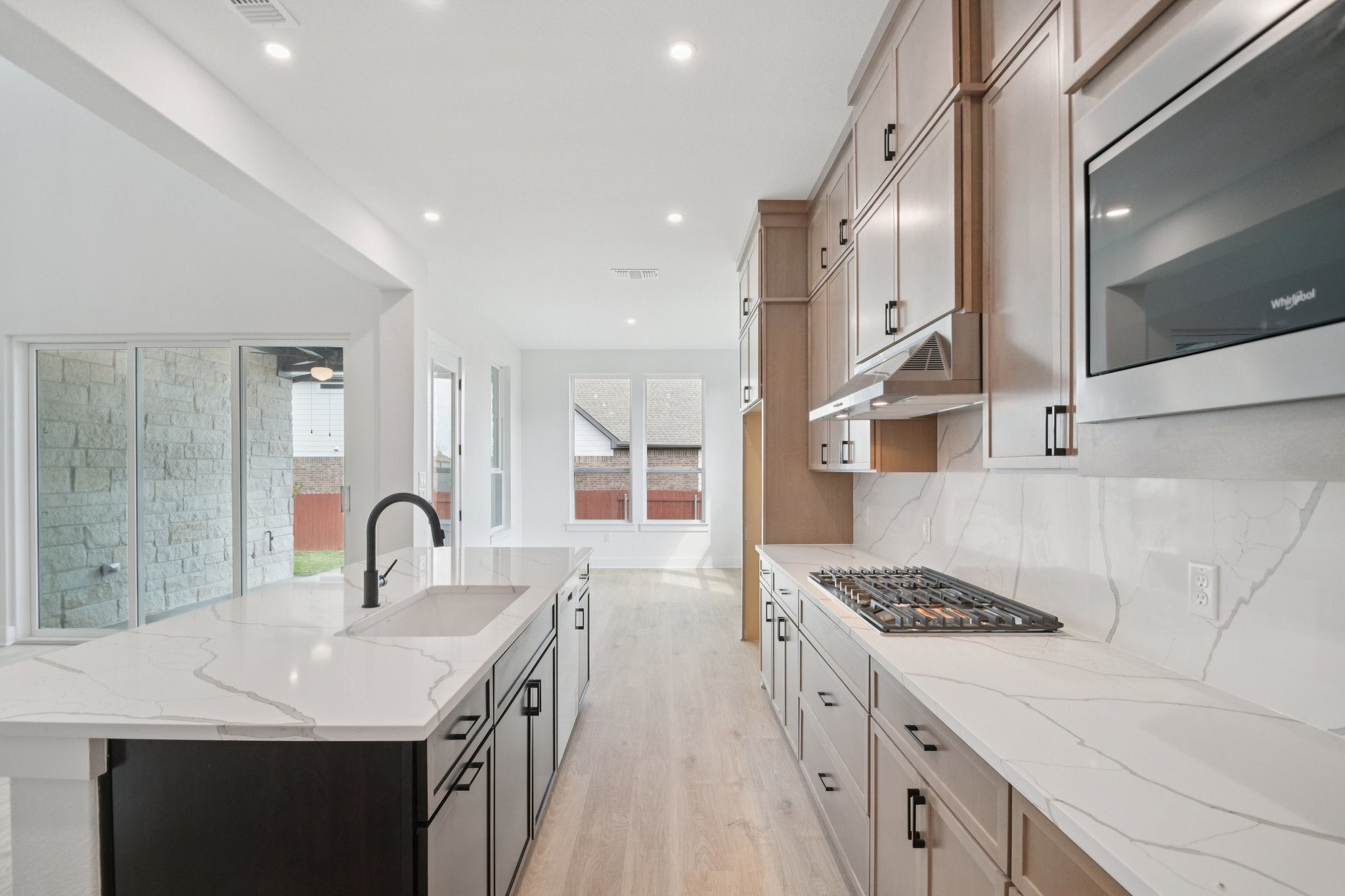 Photos are of a completed model of the same floor plan and are for illustrative purposes only. Actual home is under construction, scheduled to be completed Spring 2026, and design selections, materials, and features may differ. Confirm final specifications with the New Home Consultant. This home sits on a desirable corner homesite with a south orientation. Residents benefit from Round Rock ISD schools including Fern Bluff Elementary, Chisholm Trail Middle, and Round Rock High, along with a low tax rate. The community offers convenient access to major roadways, shopping, dining, and everyday essentials, with nearby parks and trails providing opportunities for outdoor recreation. The thoughtfully designed Mesquite floor plan offers approximately 3,075 square feet with 4 bedrooms and 3.5 baths. Two bedrooms and a dedicated study are located on the main level, providing flexibility for guests, multigenerational living, or a private work from home space. Soaring ceilings and abundant natural light highlight the open concept layout, creating a seamless flow between the kitchen and family room. The spacious kitchen features a center island, granite or quartz countertops, built in oven, gas cooktop, stainless steel appliances, and an open design ideal for entertaining. The private primary suite serves as a retreat with dual vanities, a garden tub, separate walk in shower, and generous walk in closet. Upstairs, two additional bedrooms are complemented by a game room and office nook, offering versatile living space. A dramatic 9 foot sliding glass door opens to the covered patio, extending the living area outdoors. Additional highlights include a 3 car garage and sprinkler system. Sauls Ranch East offers the ideal balance of natural surroundings and city convenience. With easy access to major commuter routes, retail centers, dining options, and local parks, this location continues to be one of Round Rock’s most sought after addresses for new construction homes.