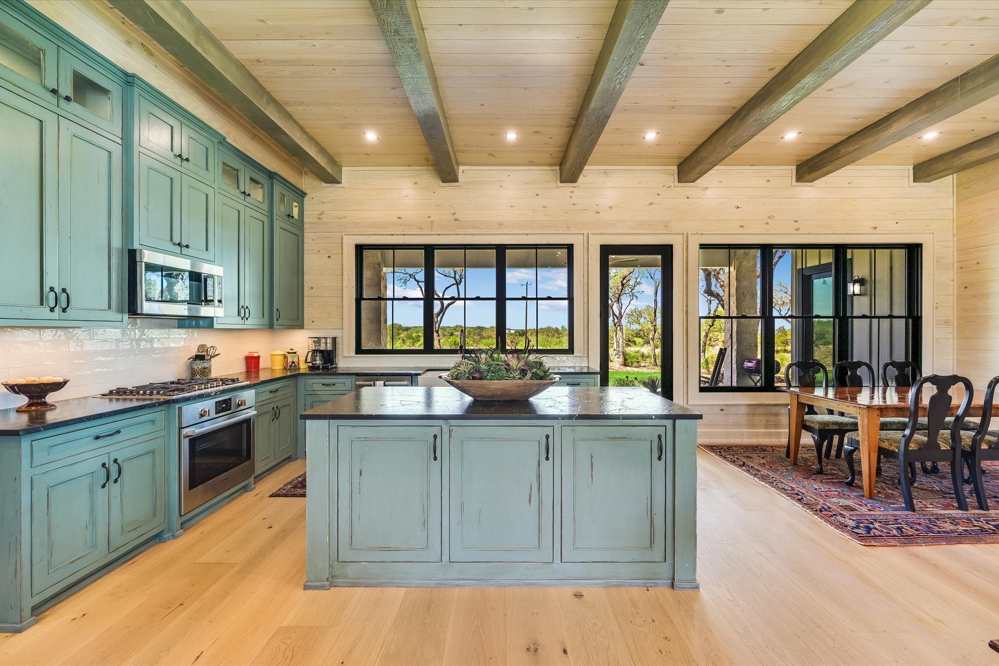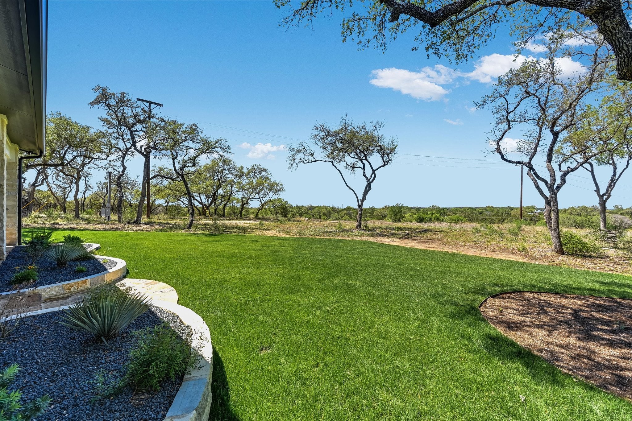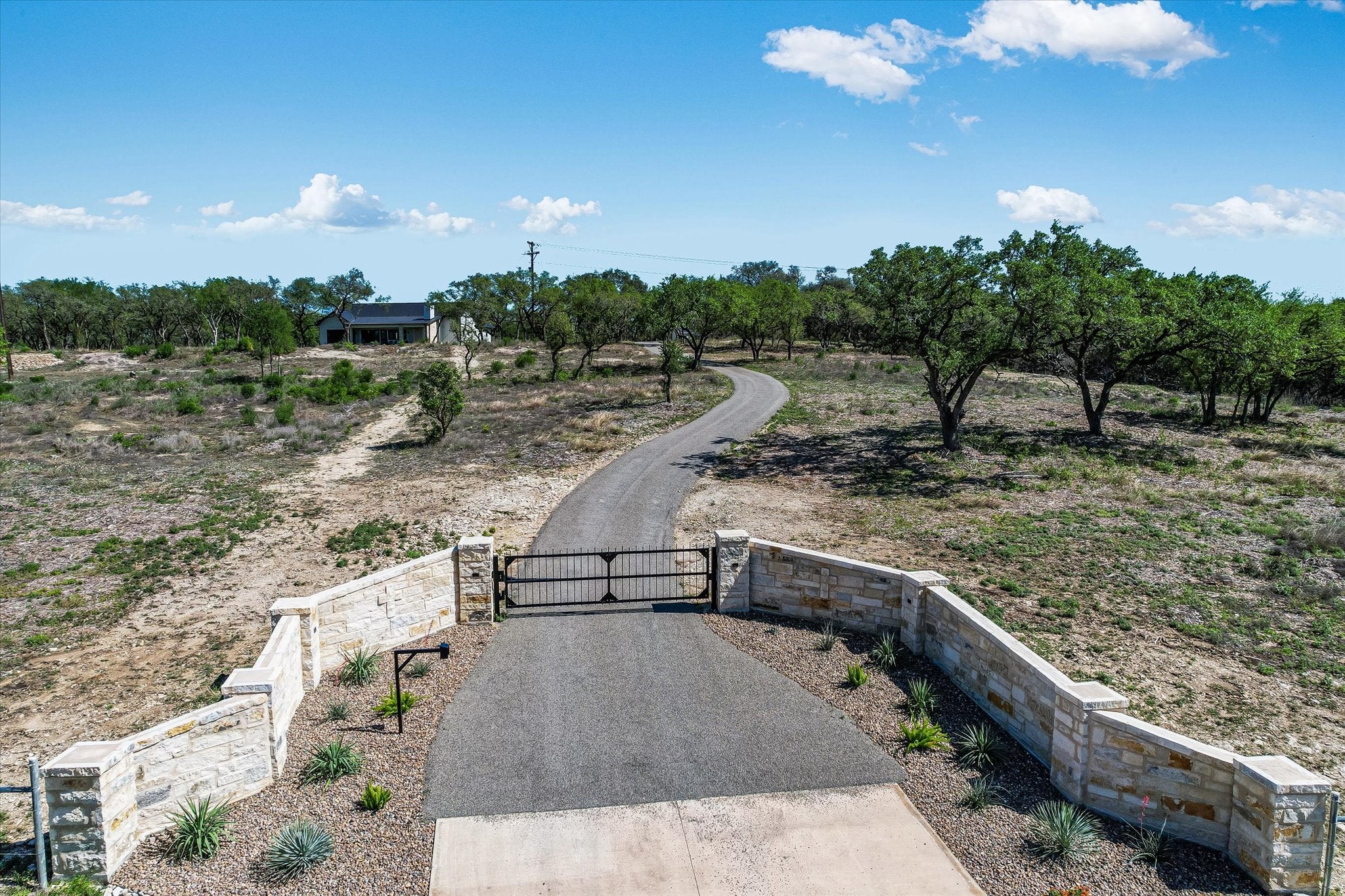 Magnificently built Custom Home on almost 15 acres-This home is in pristine condition and owner would like to sell completely furnished-Home was completed earlier this year-Beautiful wood floors with walls made of white pine-Hill country views toward the west-Very open floorplan-Kitchen has countertops and island made of Quartz, Bosch stainless steel appliances, microwave, oven and dishwasher, 5 burner gas cooktop, tile backsplash and a large sink-Living area has solid beams in the ceiling-Barn sliding doors in the house-Metal roof-Master is very large with views of the hill country-Master bath has double vanity, large walk-in shower and a bowled tub a big walk-in closet with lots of shelves and built-in drawers-Huge oversized garage with extra storage room-Landscaping has rock raised flower beds-Pella windows-Property has a well with 2500 water gallon storage tank