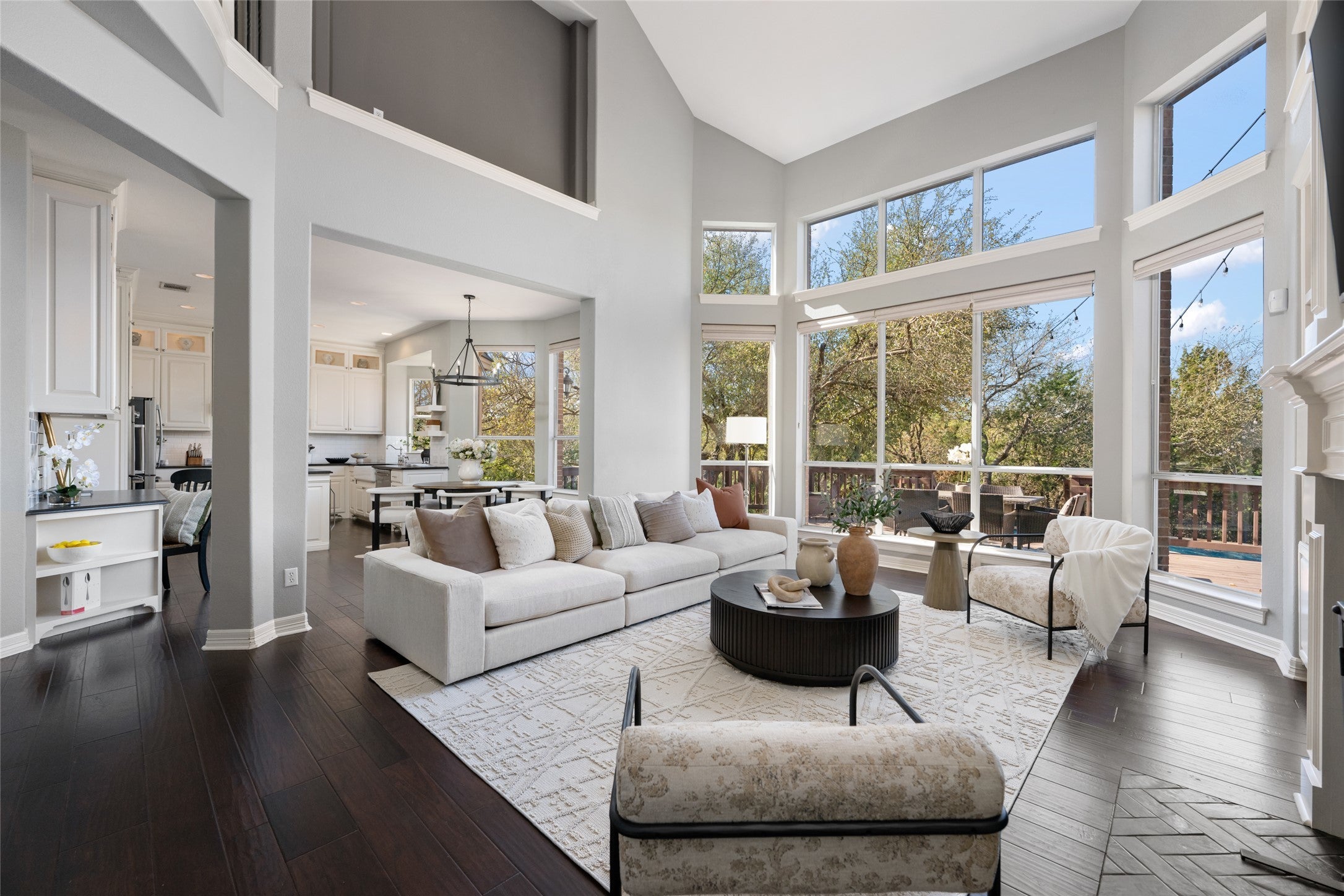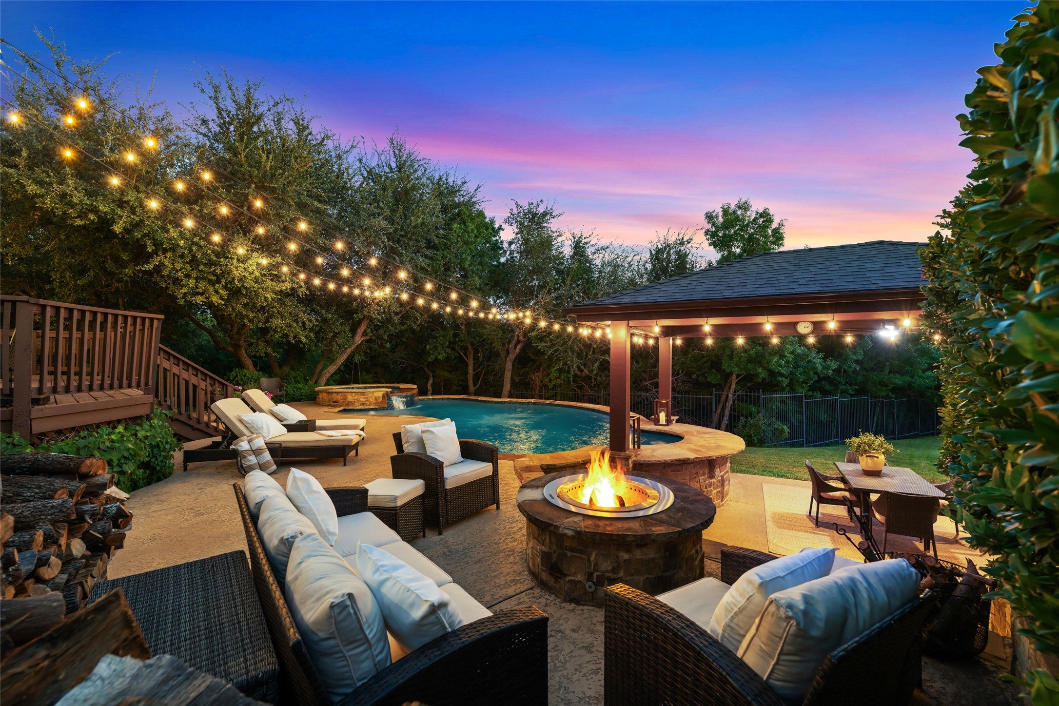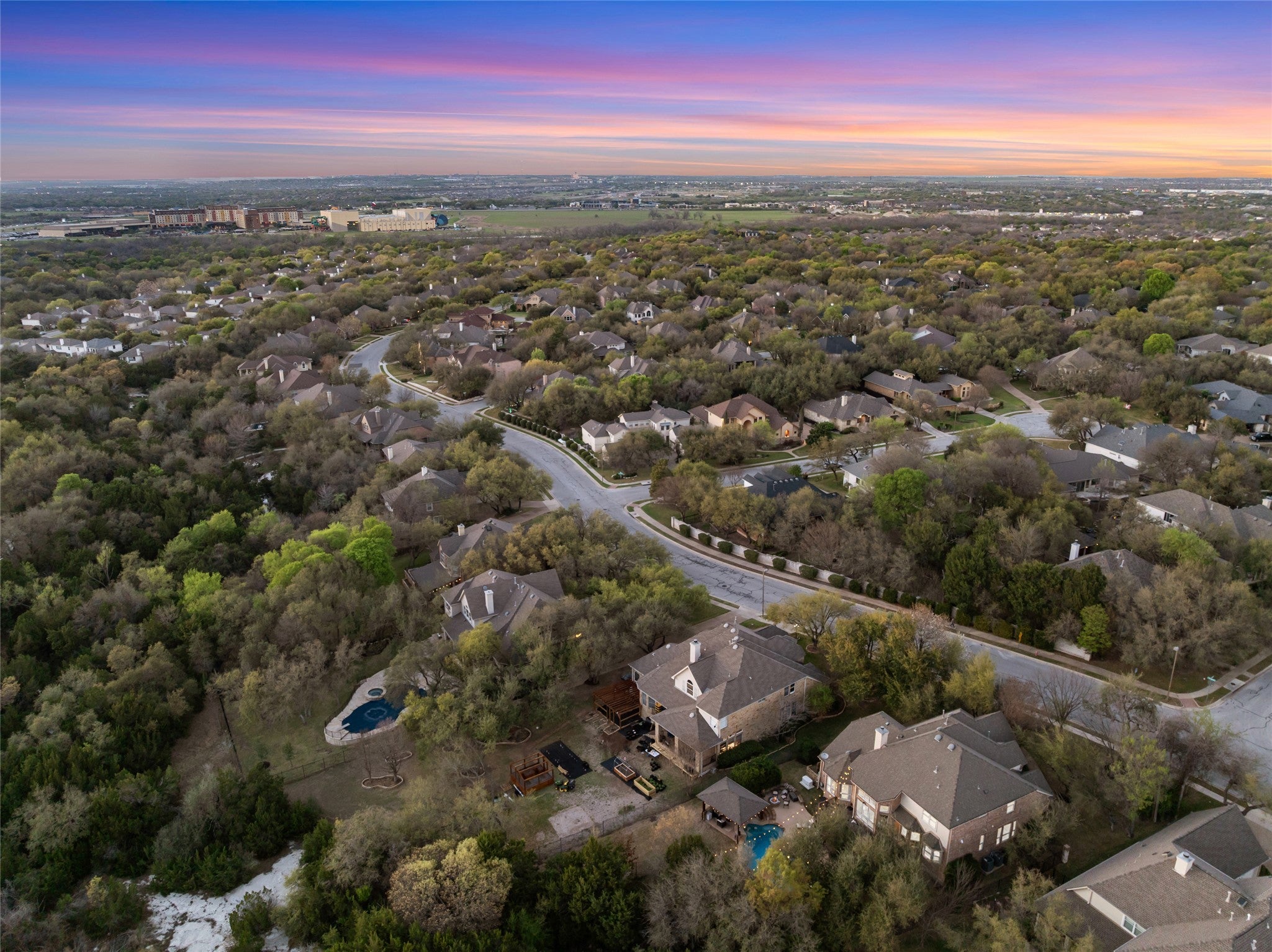 Introducing a rare luxury residence in the highly sought-after Lake Forest community on coveted Collingwood Drive.This fully remodeled 4-bedroom, 3.5-bath home offers over 3,700 square feet of refined living with high-end finishesand custom upgrades throughout. A grand foyer with soaring ceilings, a curved staircase, and elegant chandelier setsthe tone. Glass double doors open to a private office or flex space. The two-story living room features a custom gasfireplace and floor-to-ceiling windows overlooking the backyard oasis. The bright chef’s kitchen showcases premiumappliances, custom cabinetry, designer surfaces, and a walk-in pantry, flowing seamlessly into the formal dining room.The main-level primary suite features a spa-inspired bath with marble tile, soaking tub, frameless glass shower,bespoke cabinetry, and custom closet. Upstairs includes a private en-suite guest bedroom, second living area, customhome theater with 4K projector and surround sound, plus two additional bedrooms connected by a remodeled sharedbath. Situated on 0.37 acres backing to a peaceful greenbelt, the outdoor living space impresses with a resort-stylepool, hot tub, water feature, swim-up bar, cabana, smokeless fire pit, and bistro lighting. A whole-house generatorprovides year-round peace of mind. Conveniently located near top-rated Round Rock ISD schools with easy access toSH-130, SH-45, and Mopac. Just minutes to Downtown Round Rock, Dell Diamond, shopping, dining, major employers,The Domain, Lakeline Mall, and Austin-Bergstrom International Airport.