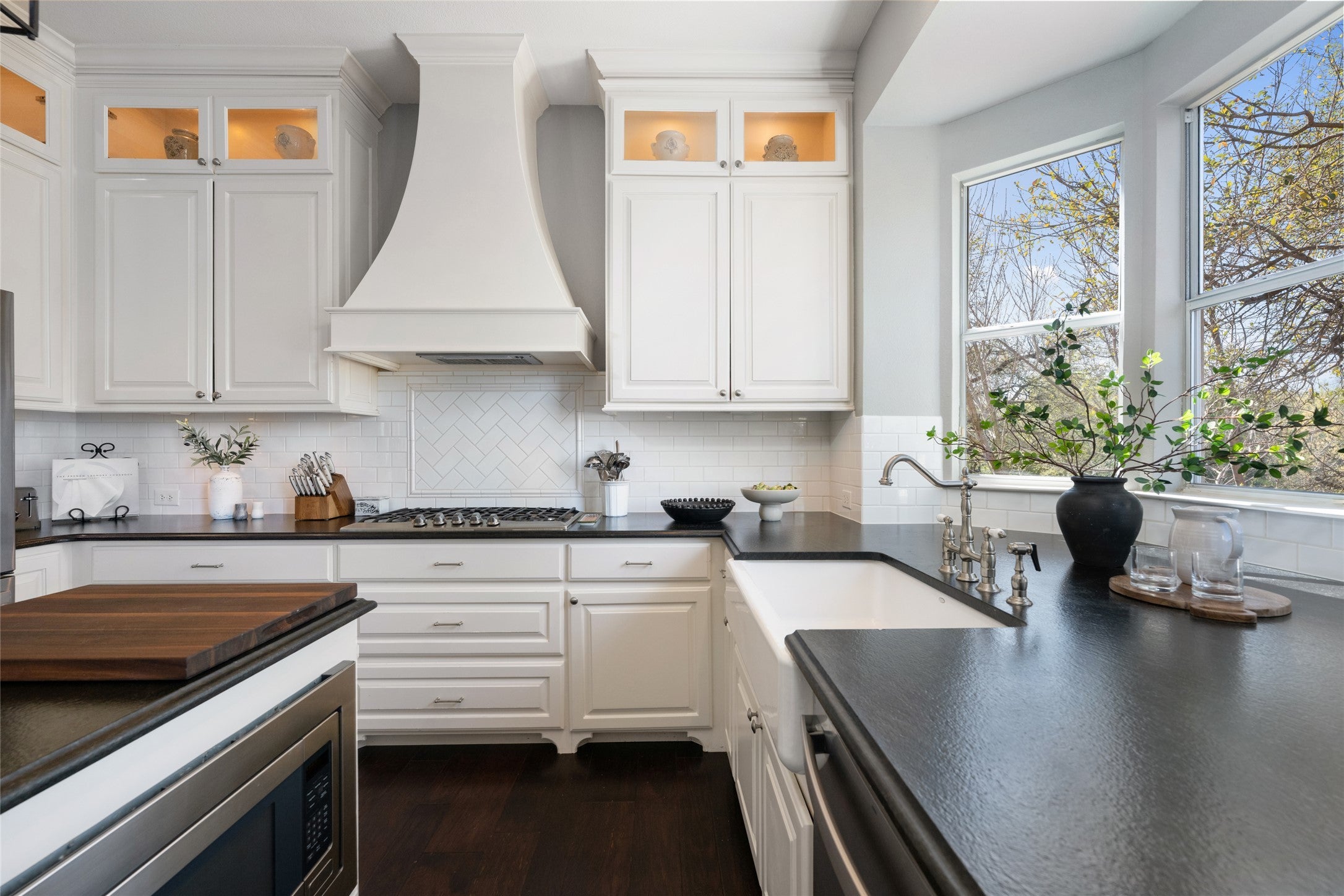 - Cooktop, Double Oven, Dishwasher, Exhaust Fan, Electric Oven, Electric Water Heater, Gas Cooktop, Disposal, Microwave, Oven, Refrigerator, Range Hood, Wine Cooler