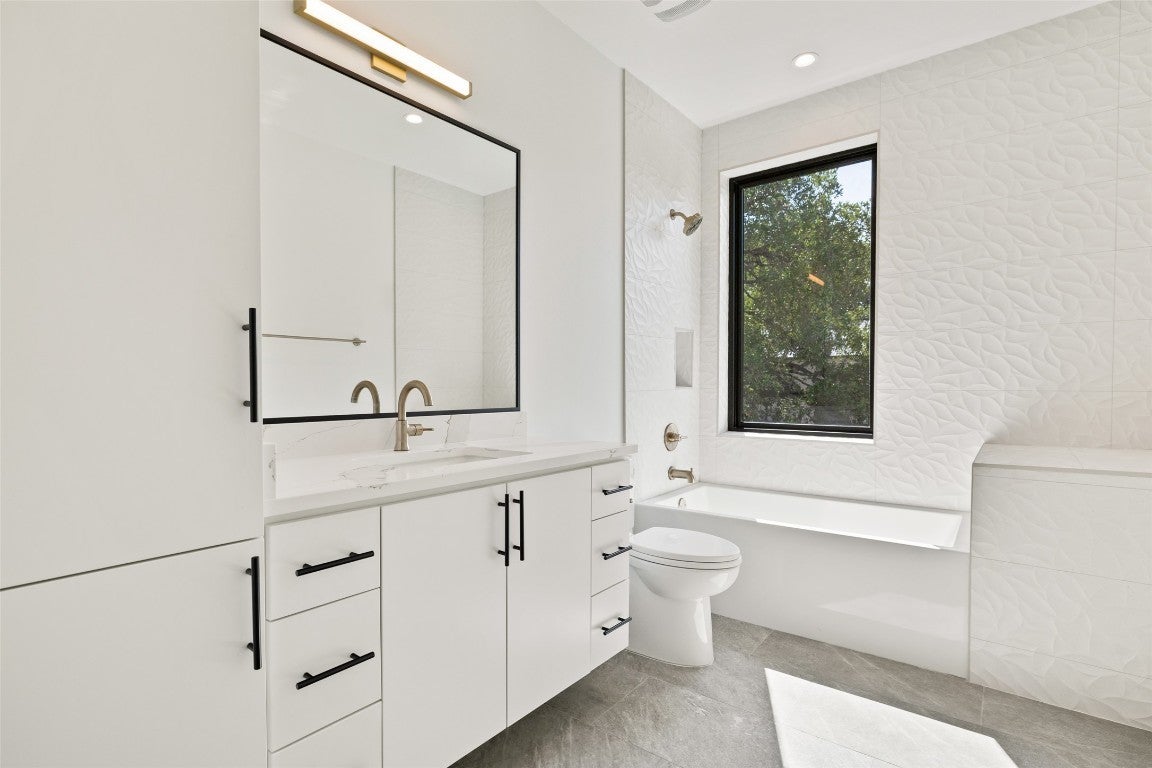 READY TO SELL! NEW CONSTRUCTION IN 78704.....Modern city living near downtown. 3 Bedrooms, 2.5 baths, 1 living & 1 car garage (Semi-detached home) 1 of 8 unique residences nestled in the small enclave of Clawson Oaks. All 8 homes have different floor plans. Showcasing contemporary design, clean lines & stylish finishes, these two & three bedroom homes offer the perfect blend of function, location & lifestyle. Beautifully designed elevated bathrooms. Abundant natural light fills the interior, highlighting such features as quartz countertops & backsplash with KitchenAid appliances, Modern Euro style cabinets & soft close hardware. Beautiful plank wood floors throughout & custom tile bathrooms. Each home has a private backyard, offering a tranquil retreat amongst the stately Live oaks that adorn the property. Enjoy the vibrant outdoor ATX lifestyle. Located near many of Austin’s favorite hangouts, restaurants, coffee shops, bars, BBQ, music venues, Lady Bird Lake, Barton Springs & Zilker Park. Your perfect private retreat close to everything. (Andersen sliding doors & casement + bay windows, Standing seam interlocking metal roof, Stucco & architect line James Hardie V Plank siding exterior, Tankless hot water heater, Spray foam insulation, Carrier HVAC, Wood and tile flooring throughout & Google fiber) Ready for BLUE TAPE buyer walk through and final construction punch list. Builder warranty provided at closing. Must see! *AI Virtually staged