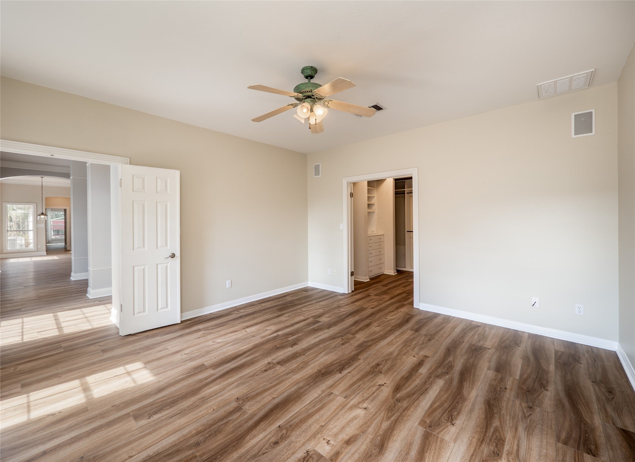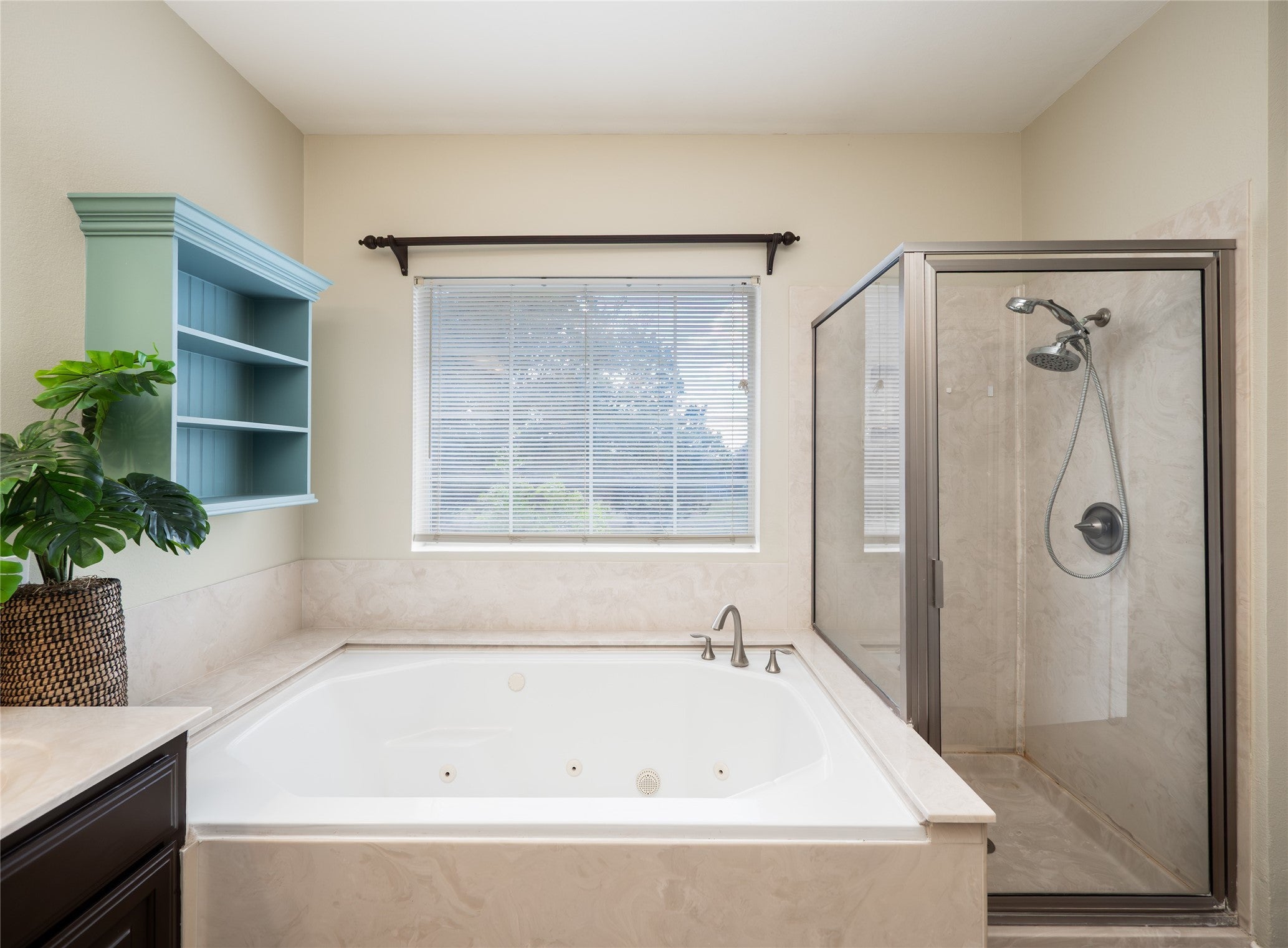 Experience the pinnacle of Hill Country living in this move-in-ready Vista Oaks estate, perfectly situated on five sprawling acres with breathtaking views. The circular drive provides a grand welcome to this 2,972 square-foot residence, where refined details like brand new flooring, plantation blinds, and elegant crown molding set a sophisticated tone. The heart of the home is an expansive living area anchored by a fireplace and custom-built-in shelving, all framed by stately architectural columns. The gourmet kitchen boasts granite countertops, a stone backsplash, a central island, and a glass cooktop. With a built-in microwave and oven, the kitchen flows seamlessly into the breakfast area and formal dining room for effortless entertaining. A spacious bonus room offers versatile space for a home office or media retreat. The primary suite, accessed through French doors, serves as a private sanctuary with its jetted tub, separate shower, dual vanities, and a magnificent walk-in closet featuring built-in dressers. Two secondary bedrooms each provide ample storage with their own walk-in closets. Outdoor functionality matches the interior elegance, featuring a gambrel style shed with electricity, providing the perfect setup for a workshop, studio, or climate-controlled storage. The property also includes an additional metal barn and storage building, offering endless possibilities for hobbies or equipment amidst the serene landscape. Bring your Horse !!