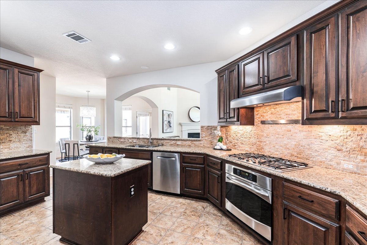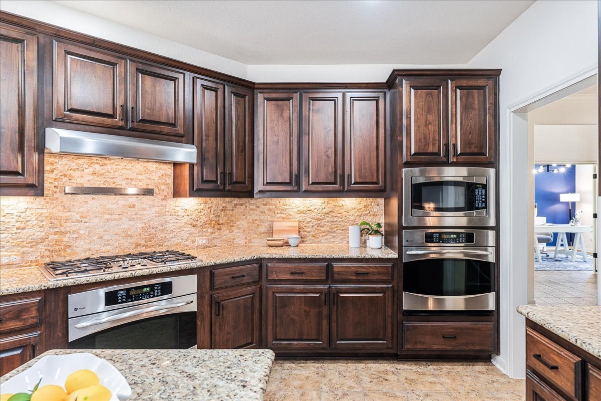 - Built-In Gas Range, Built-In Oven, Double Oven, Dishwasher, Disposal, Microwave, Stainless Steel Appliance(s)