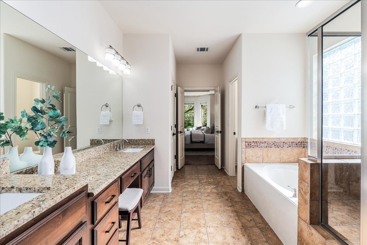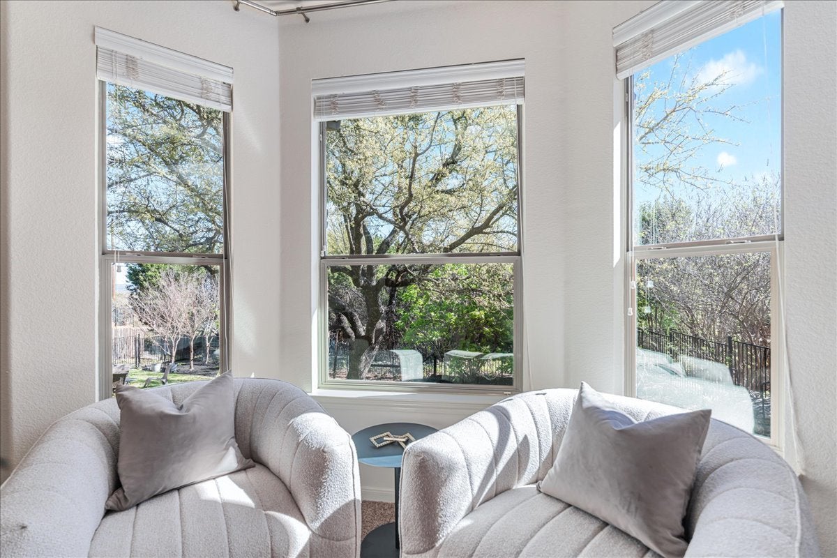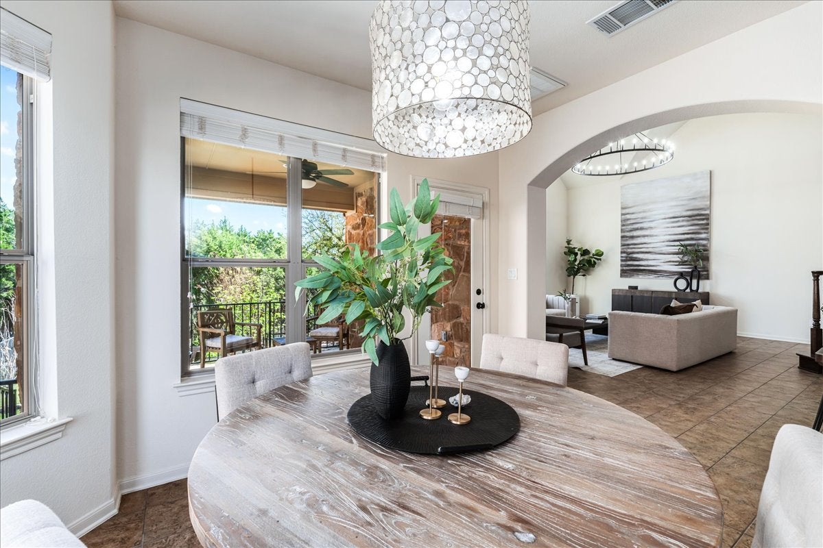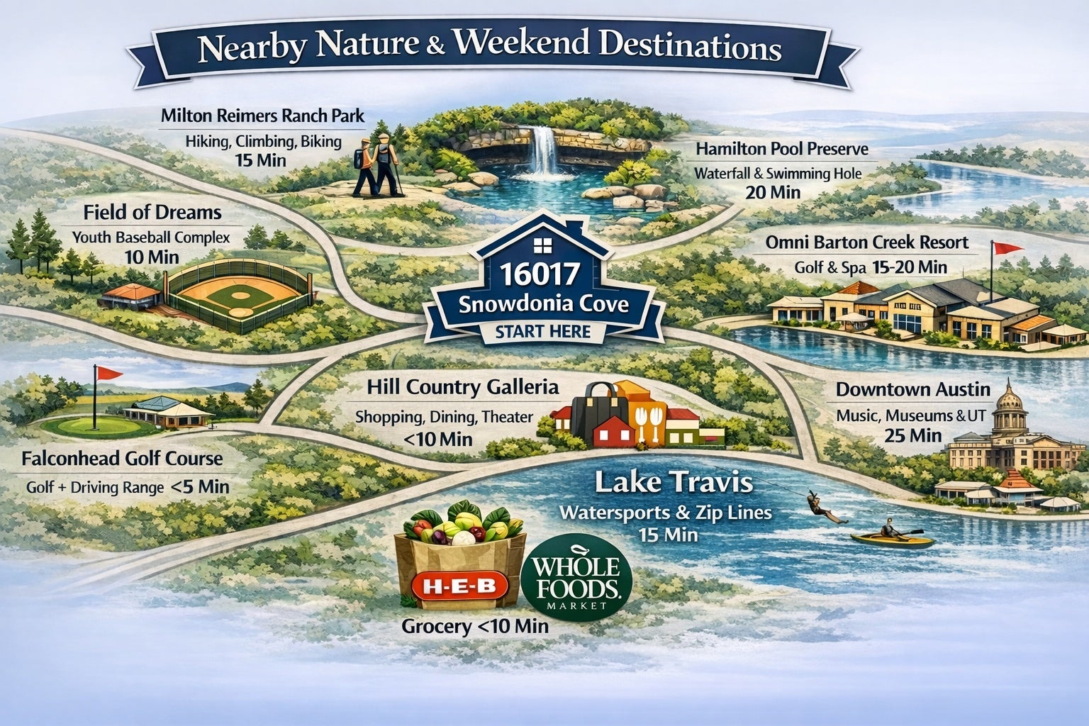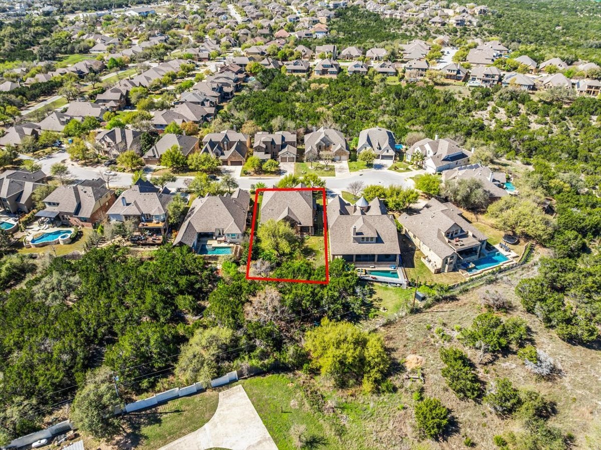 Location location! Nestled in the rolling beauty of the Texas Hill Country, this Falconhead West home offers the ideal blend of privacy and everyday convenience. Tucked away on a quiet cul-de-sac and backing to a lush greenbelt, the home enjoys a tranquil backdrop while remaining minutes from Bee Cave and Lakeway’s vibrant amenities and top-rated schools. Spanning 3,543 square feet, this well-maintained home features 5 beds, 4 baths, and a game room, thoughtfully arranged to balance comfort and functionality. Soaring ceilings and expansive windows fill the interiors with natural light, creating an airy, uplifting atmosphere throughout. A dedicated office with french doors provides a quiet space for work or study, while the formal dining room sets the stage for memorable gatherings. Enhanced with over $80K in upgrades, the home reflects careful attention to both style and function. Craft gourmet meals in a chef's kitchen with a 5-burner gas stove, double ovens, and abundant counter space. A luxurious owner’s suite on the main floor offers a secluded retreat with bay windows and a sitting area overlooking the incredible backyard. The primary bath features a built-in custom closet. This backyard is something truly special. The space feels open, private, and full of possibility. Garden enthusiasts will appreciate several producing fruit trees, multiple garden beds, and a composting station, creating a backyard that’s both impressive and purposeful. This prime location places you in the heart of one of West Austin’s most desirable pockets, with fabulous proximity to several neighborhood trails, Bee Cave Central Park, walk and bike access to middle and high schools, and close to dining, shopping and recreation —making daily life seamless for everyday needs. Ideally situated between Lakeway/620 and Hwy 71, the community provides easy access to downtown Austin and the Austin airport. Quietly tucked away yet remarkably connected, this is the home that has it all!