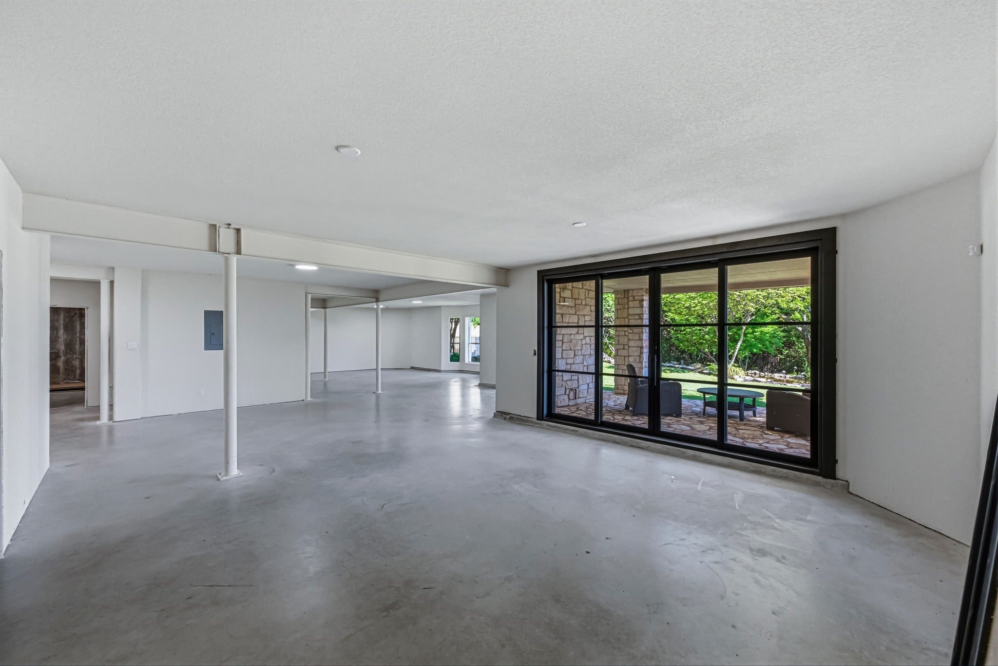 - Balcony, Exterior Steps, Lighting, Rain Gutters, Uncovered Courtyard