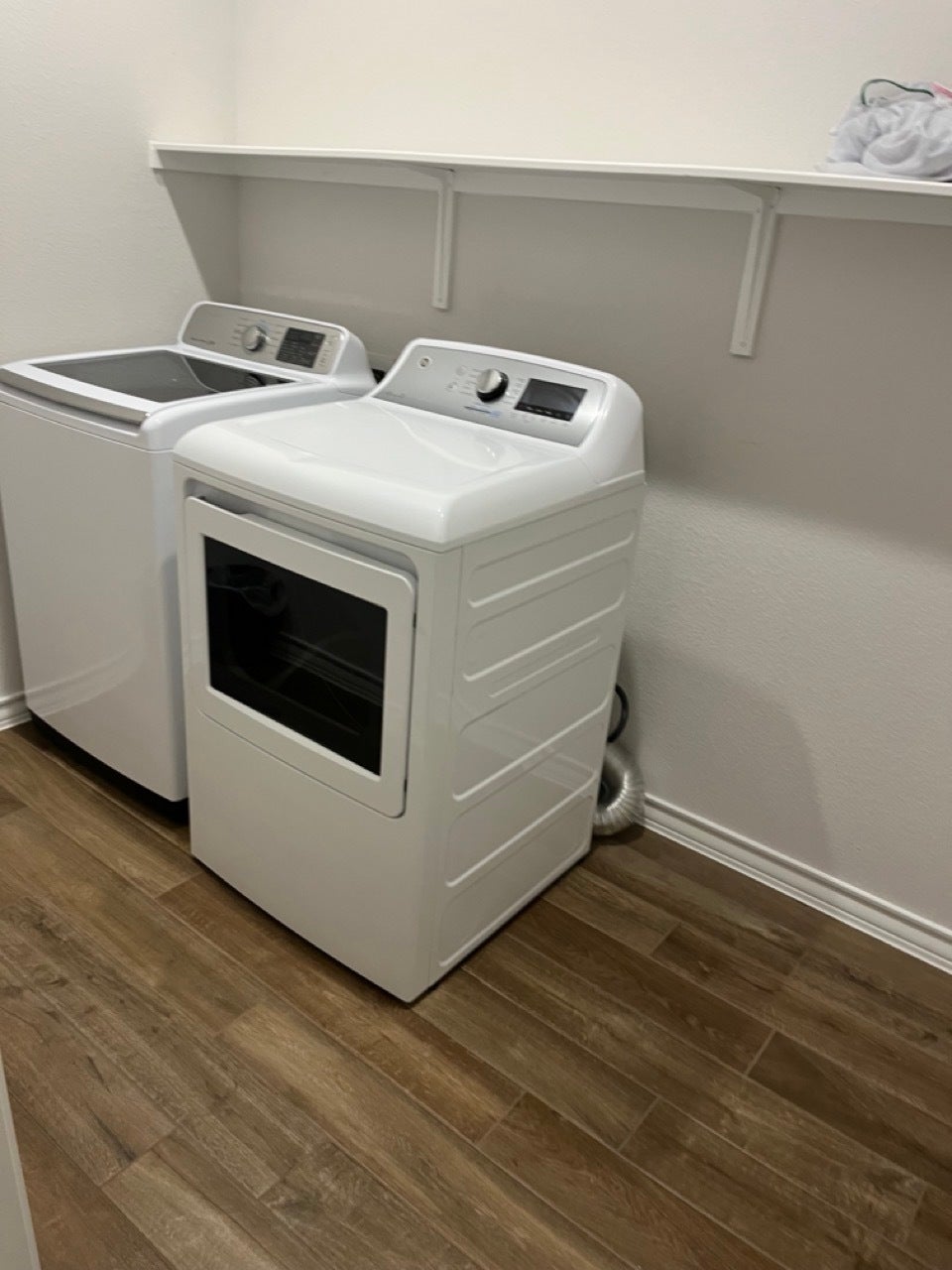- Dryer, Dishwasher, Free-Standing Gas Range, Disposal, Gas Water Heater, Microwave, Range, Refrigerator, Range Hood, Stainless Steel Appliance(s), Vented Exhaust Fan, Washer