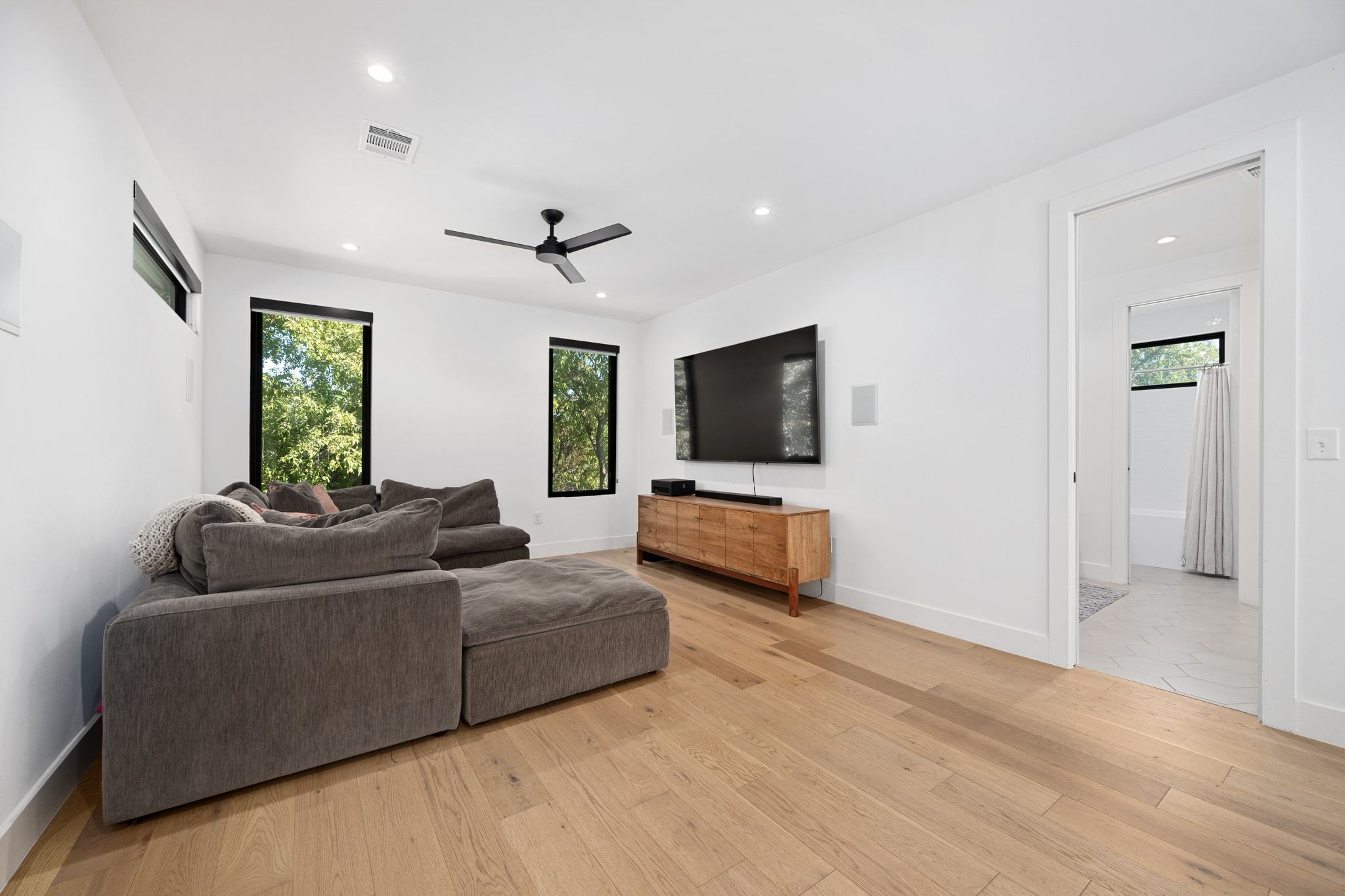 Modern South Austin home located on a quiet cul-de-sac in highly desirable 78704. Built in 2020 with approx 2,723 sq. ft., this 4-bedroom, 3-bath beauty features an open-concept layout with floor-to-ceiling windows, wide-plank wood floors and abundant natural light throughout. The main level offers a gourmet chef’s kitchen with custom cabinetry, gas range, oversized island and designer lighting, along with a first-floor primary suite and a bedroom or office with full bath. Upstairs includes two bedrooms, a full bath and a spacious TV lounge or game room. Enjoy premium features throughout including built-in surround sound, seamless indoor-outdoor living and motorized window shades at the front door. The private backyard features a shaded patio with a built-in grill, and easy flow which is ideal for entertaining. One-car garage and driveway parking with EV capability. Minutes to South Lamar, Zilker Park, Barton Springs, and Downtown Austin. Located in a quiet residential pocket of South Austin, offering both privacy and immediate access to the city’s most iconic parks, dining, and entertainment. Welcome home to Audrey Court!
