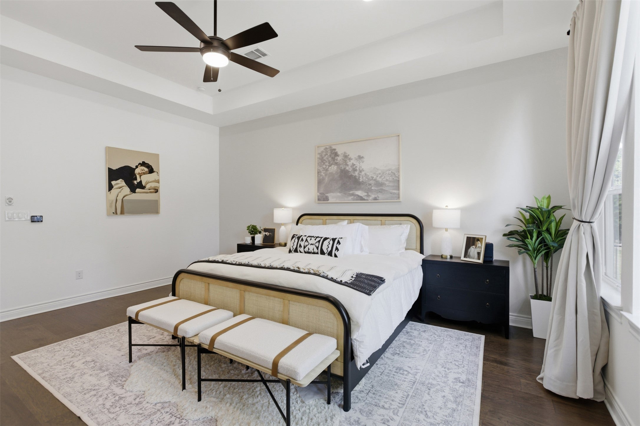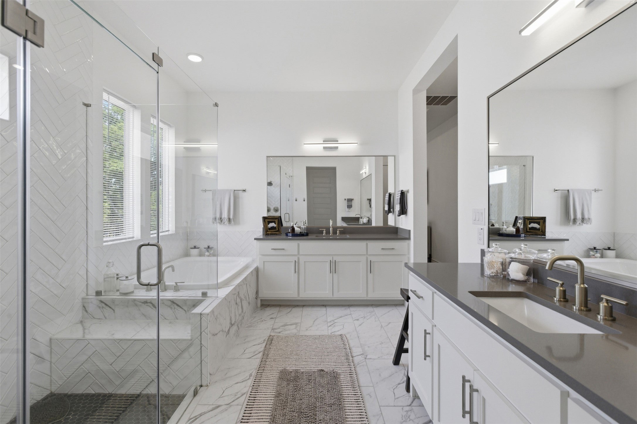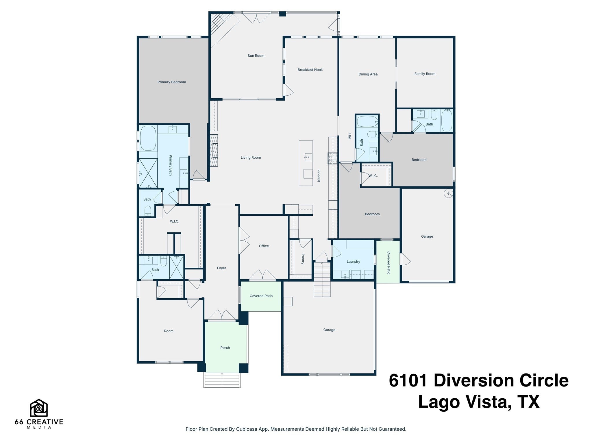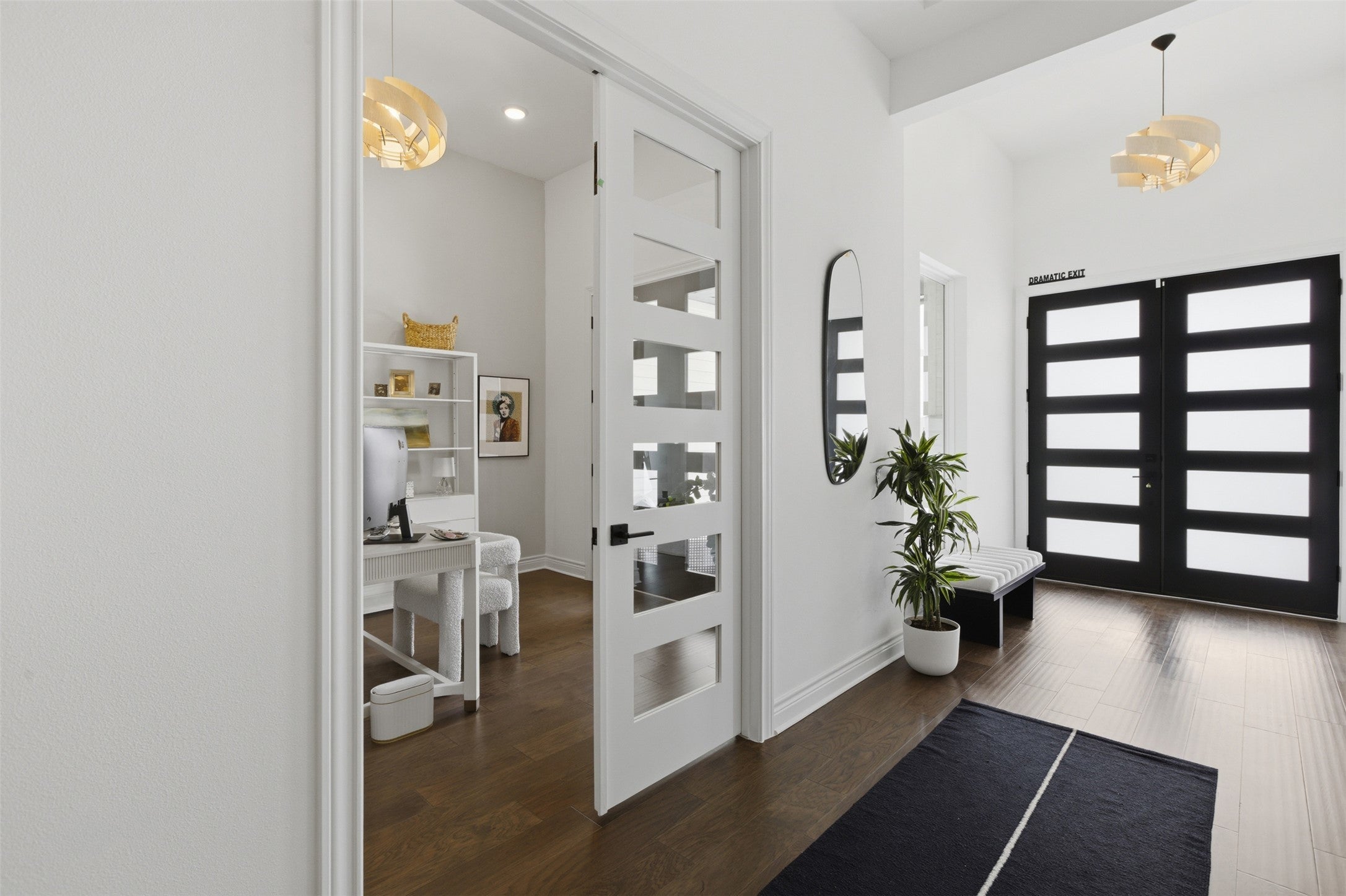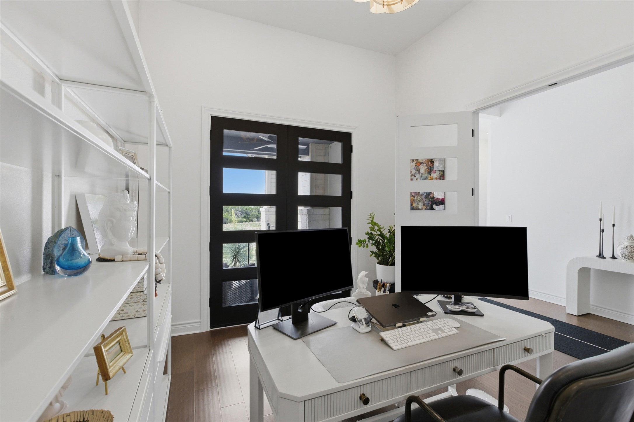 Also known as 6101 DESTINATION WAY... Single-story living meets thoughtful design in this 3,558 sq ft home in The Hollows on Lake Travis. Four bedrooms, four bathrooms, and a dedicated home office are spread across a floor plan that balances open, connected living with genuine privacy where it counts. The heart of the home is a wide-open kitchen, dining, and living area anchored by a brick fireplace and built-in shelving. White cabinetry to the ceiling, quartz countertops, a large center island, gas cooktop, double wall ovens, butler's pantry, and walk-in pantry complete a kitchen built for real use. The screened sunroom extends the living space year-round with its own outdoor fireplace and direct access to the backyard. The primary suite occupies its own wing with a spa-style bath featuring dual vanities, a soaking tub with marble surround, herringbone tile walk-in shower, and a large walk-in closet. A fourth bedroom sits in a separate wing off the foyer, ideal as a guest suite, in-law space, or private office. A dedicated media room and secondary flex dining space round out the interior. Outside, a concrete paver fire pit patio sits beneath a mature oak and cedar canopy with additional seating areas throughout the yard. Life at The Hollows extends well beyond the property line. The Beach Club delivers an infinity-edge pool, fitness center, and the Wild Hare Bar & Grill. Pickleball courts, miles of trails, private kayak storage, and the deep-water NorthShore Marina round out a resort-style lifestyle that manages to feel genuinely unhurried. The community's social calendar, from the Wine Club and Whiskey Society to Book Club, Yoga, and Travelers, reflects neighbors who take real pride in where they live. Peaceful and private. Wonderfully close to Austin.