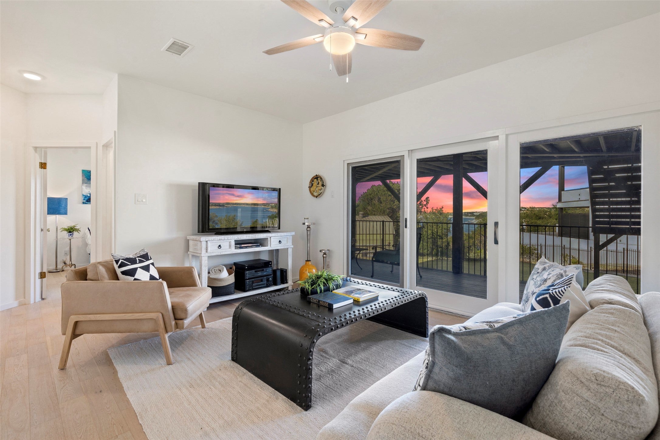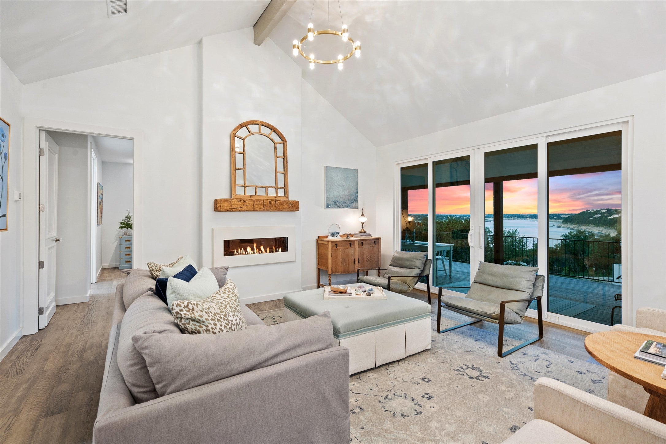 Stunning Lake Travis Waterfront Views with a Private Dock ~ A Peaceful Retreat to Create & Be Inspired... Ideally located just around the corner from Rough Hollow Elementary and one cove over from the Rough Hollow Grille and marina, this beautifully restored boutique-style waterfront home offers a rare opportunity to enjoy serene Lake Travis living while being moments from one of the areas fastest-growing communities. As development continues to expand throughout the Lake Travis corridor, this peaceful retreat will remain tucked away with breathtaking views, yet positioned in the heart of it all. Completely restored and thoughtfully designed, the home captures stunning panoramic views of Lake Travis. Enjoy breathtaking vistas from your private balcony, the perfect place to paint, write your next novel, or simply relax while overlooking the water. This incredible 4-bedroom, 3-bathroom home with a 2-car garage features a private pathway leading down to your own dock, inviting you to start your mornings paddle boarding or enjoying the tranquility of the lake. In the evening, the sparkling views across the water resemble a charming Italian village, creating a magical atmosphere youll never want to leave. The chefs kitchen features commercial-grade appliances and an impressive 10-foot island, making it ideal for entertaining family and guests. Additional highlights include low taxes, low maintenance living, and low utility costs, all located within the highly acclaimed Lake Travis School District. If you love STUNNING VIEWS, PEACEFUL WATERFRONT LIVING, and a home designed for CREATIVITY AND ENTERTAINING, this is the home for you! Please note: The additional office space located off the garage (approximately 250 square feet) is included in the total square footage. This property is zoned to the new Rough Hollow Elementary.