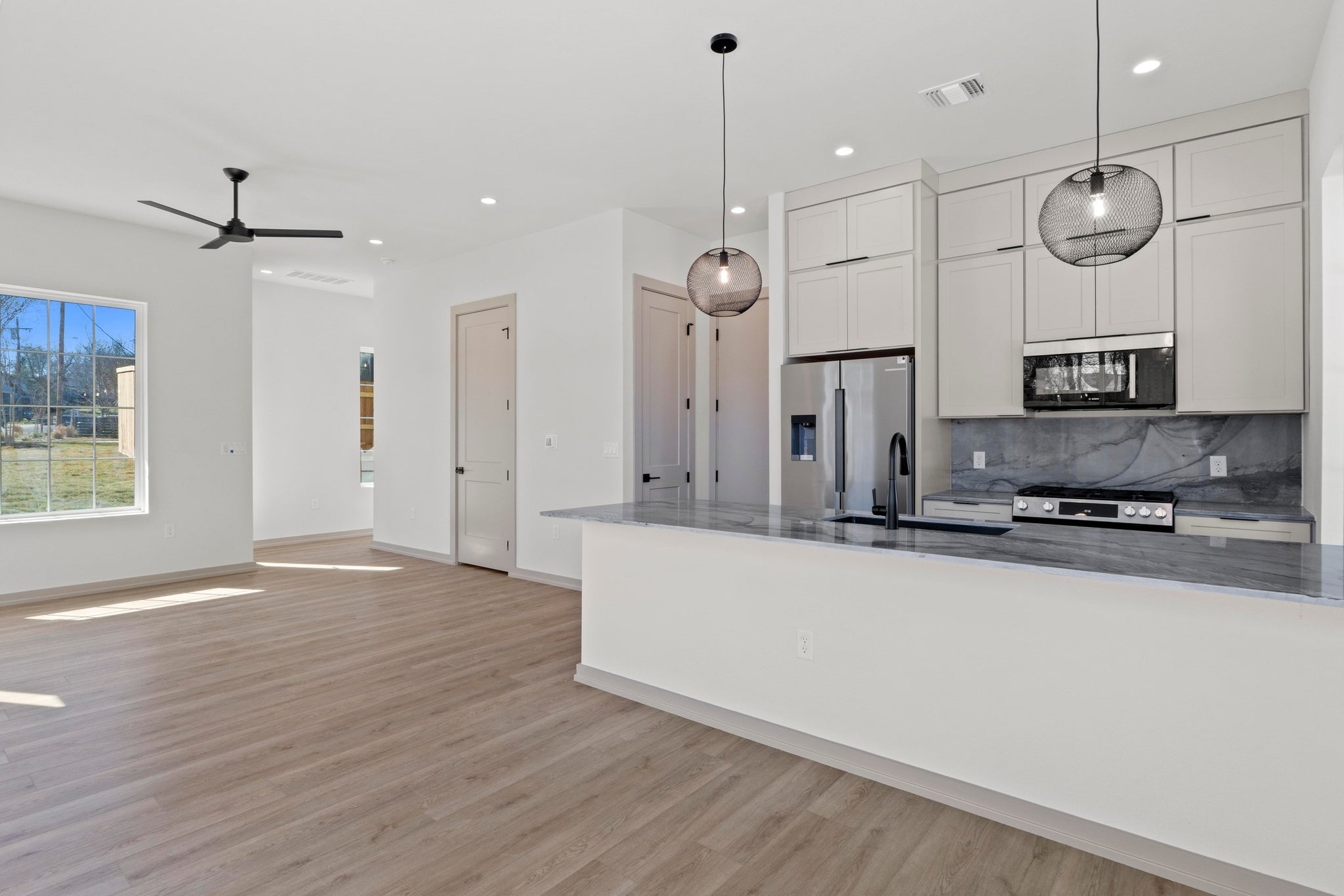 If you’re looking for a home that feels intentional, calming, & genuinely well-designed, this one hits. Built by Sett Studio, an award-winning, health & wellness–focused builder, this residence is part of The Bunche Project—an intimate, design-forward micro-community of 12 homes in East Austin. This 4-bedroom, 3.5-bath home spans 1,924 sqft balancing timeless architecture with modern comfort. The main level is open, airy & made for living—natural light pours through oversized windows, grounding the space & creating an effortless flow between the kitchen, dining & living areas. The kitchen feels elevated yet approachable with custom cabinetry to the ceiling, quartz countertops that continue seamlessly into the backsplash, pendant lighting, stainless steel appliances & a generous breakfast bar. A walk-in pantry with built-in shelving makes life feel just a bit more organized. One of the most compelling features? 2 primary suites. The second-level primary suite feels like a true retreat with vaulted ceilings, beautiful natural light, walk-in closet, & spa-inspired bath featuring dual vanities & a massive walk-in shower wrapped in floor-to-ceiling tile. 2 additional guest rooms complete the level. Upstairs, the third-floor primary suite offers a private sanctuary—perfect for guests, work-from-home life or your wellness studio—with an ensuite bath. Throughout the home you’ll find light engineered wood flooring, designer-selected neutral finishes, custom cabinetry, & quartz countertops—creating a calm, cohesive aesthetic. Nearing Q1 completion, this home works beautifully as a primary residence, lock-and-leave lifestyle or smart STR opportunity. *Buyer to independently verify all info including but not limited to taxes, schools, square footage, city of Austin STR restrictions, etc. Tax assessment not available. tax estimate using 2025 tax rate x asking price.