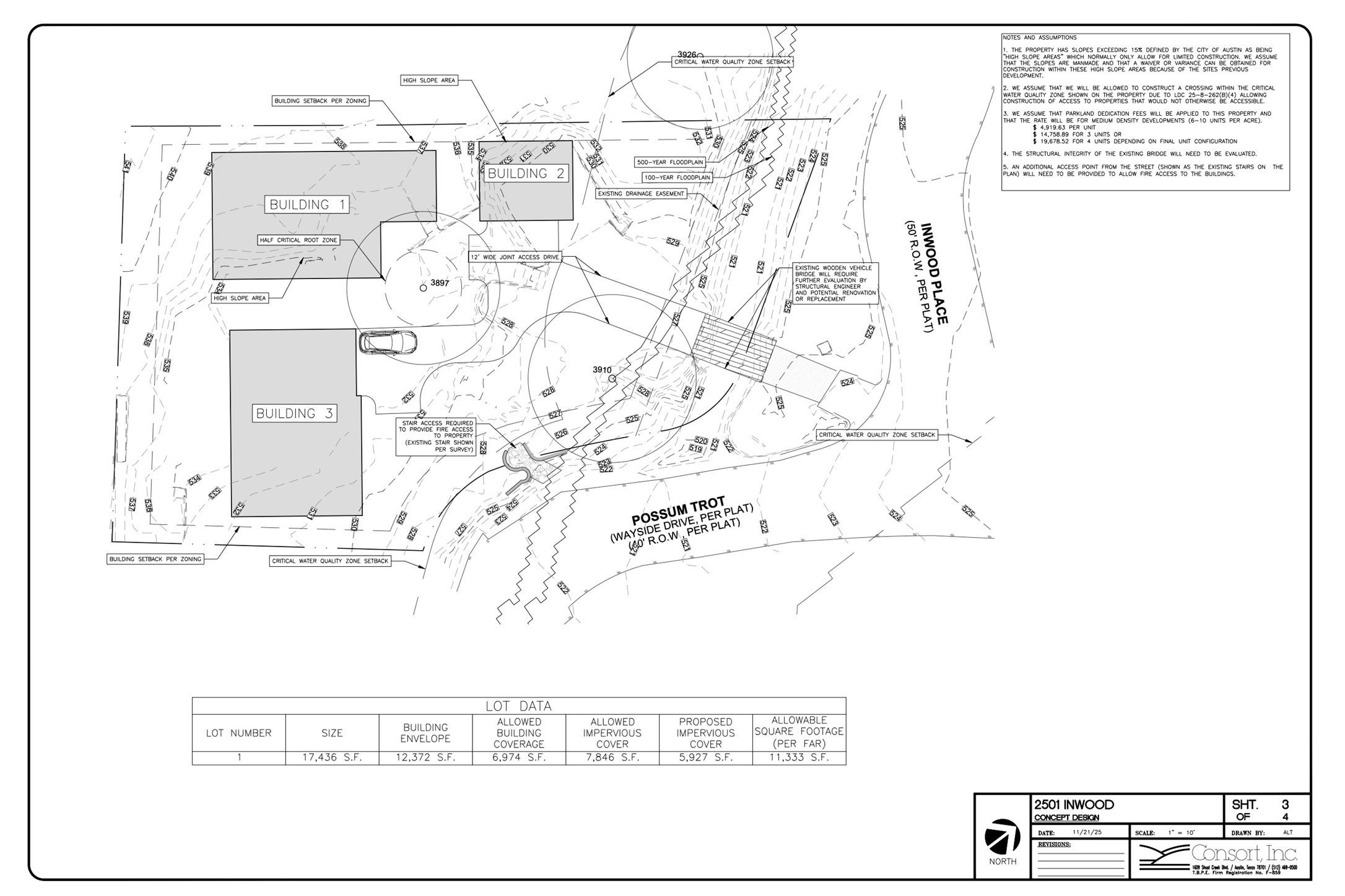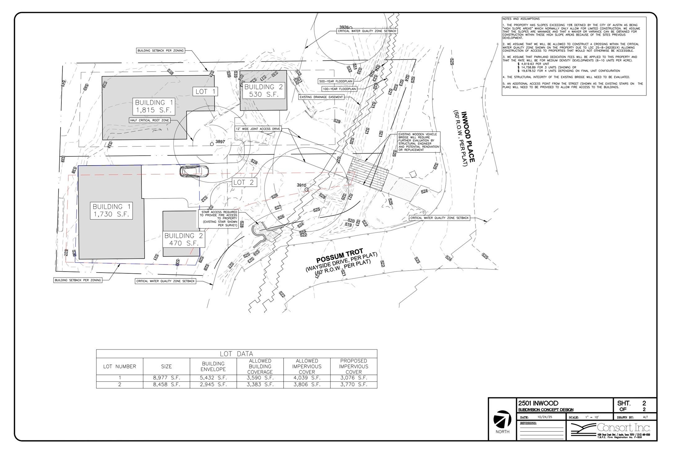 Embrace the opportunity of an expansive .40-acre corner lot located just minutes from downtown. Recently demolished and cleared, the property is ready for immediate action, offering a clean slate for your next vision. Now enhanced with professional development concepts, this unique site includes SFR private compound schematics, two-structure design options, and subdivision concepts, giving buyers multiple pathways to bring their vision to life. With captivating topography, a distinctive bridge feature, and a stellar location just 1.5 miles from downtown, this highly buildable lot offers an exceptional opportunity to collaborate with your architect, reimagine what’s possible, or break ground on a truly extraordinary Central Austin retreat.