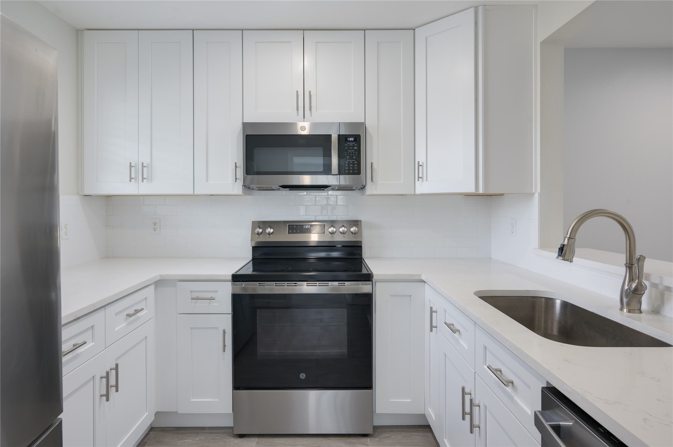 Fully remodeled 2-bedroom, 2-bath duplex in the established Lake Oak Estates community of Lakeway. This 888 sq ft single-level home features an open floorplan with tile floors throughout and no carpeting. The updated kitchen includes soft-close drawers and stainless steel appliances, all approximately one year old, including the refrigerator, offering modern style and functionality. The spacious lot with mature trees and a front-facing garage provides functional outdoor space. The property backs to a nearby elementary school, offering added privacy with no rear neighbors and an enhanced sense of security. Central air conditioning ensures year-round comfort, and the home is well-maintained and move-in ready. Located in highly regarded Lake Travis ISD, this property offers easy access to shopping, dining, and Lake Travis, combining comfort, convenience, and a peaceful neighborhood setting.