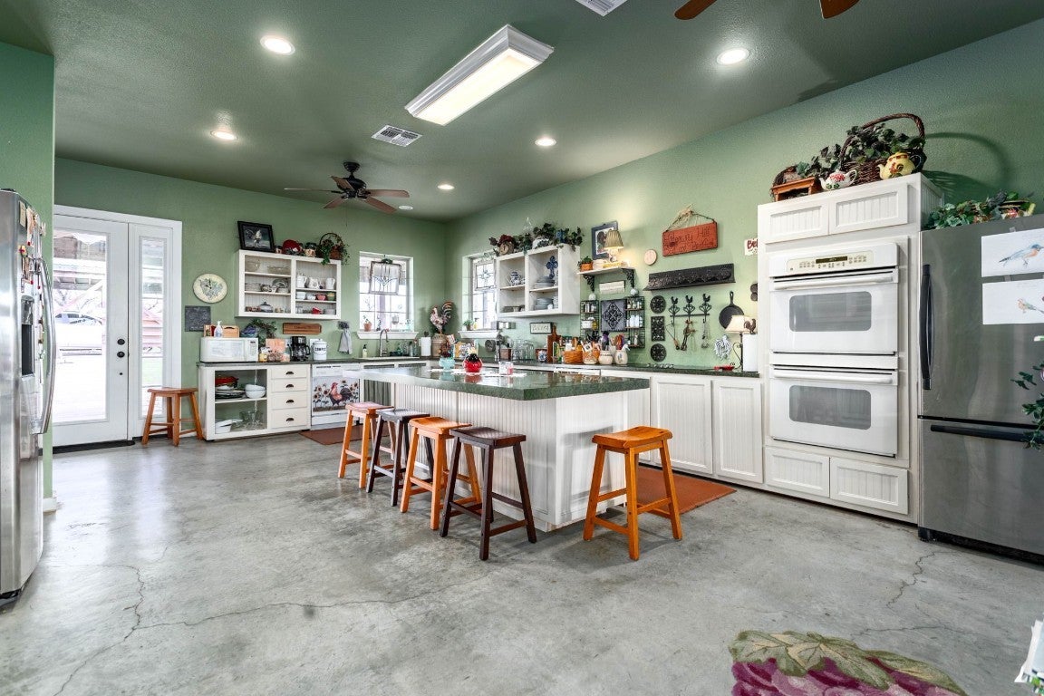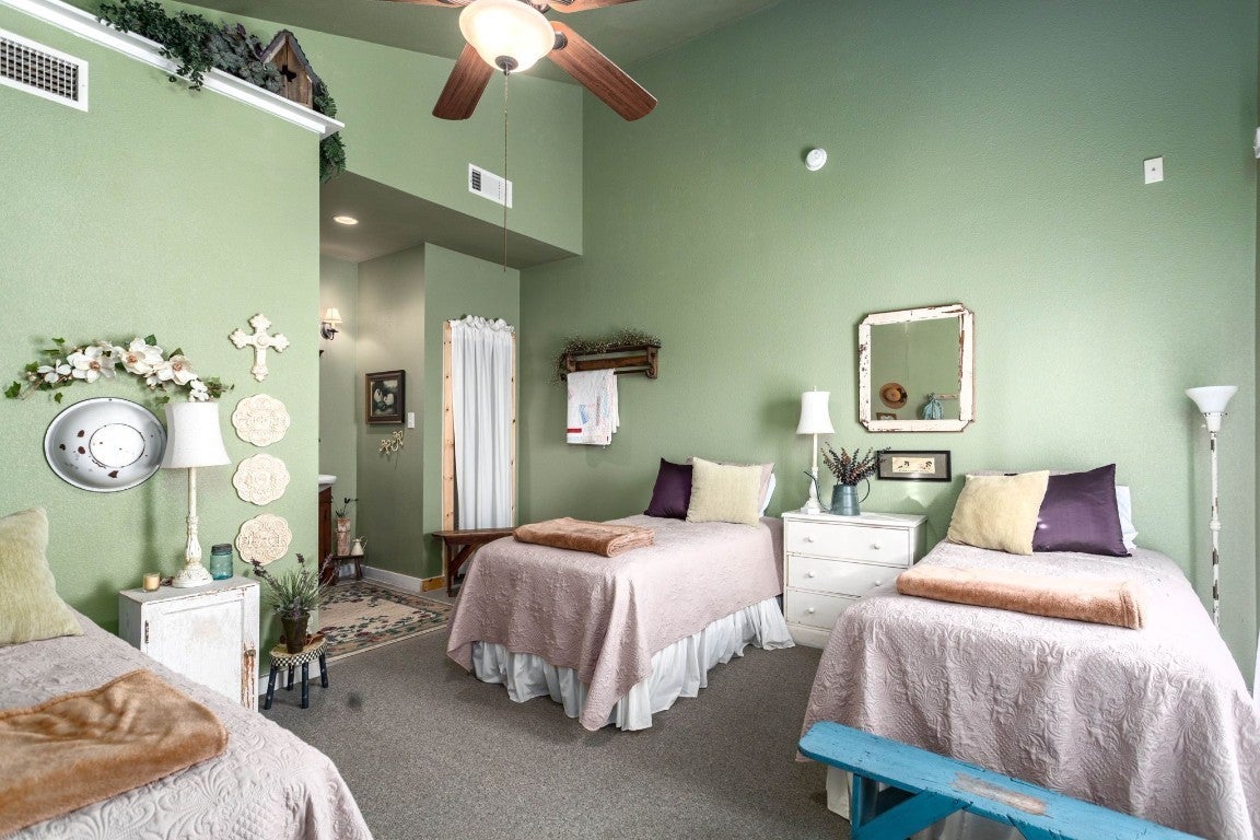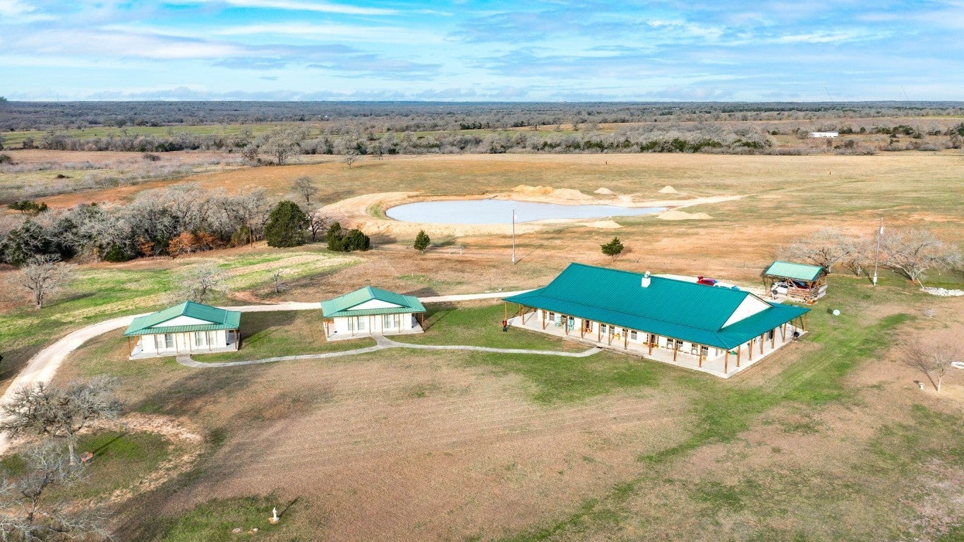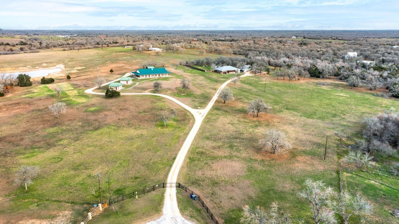 NO RESTRICTIONS!!! Discover the perfect blend of luxury and versatility with lots of room, 8 acres, featuring a spacious 4000 sqft main home alongside two charming 600 sqft guesthouses. Ideal for multi-generational living, rental opportunities, or a cozy retreat, this estate offers three bedrooms and four bathrooms in the main house, with high cathedral ceilings, a wood-burning fireplace, and breathtaking views. The chef's kitchen is a culinary dream, boasting a walk-in pantry, an island, and ample space for entertaining. With two sets of washers and dryers and three refrigerators included, convenience is at your fingertips. Each bedroom is equipped with its own thermostat, ensuring personalized comfort. Located just 18 minutes from the Circuit of Americas and close to Austin Airport, this property is a tranquil haven with adventure just around the corner. All furniture in guest homes covey with sale!