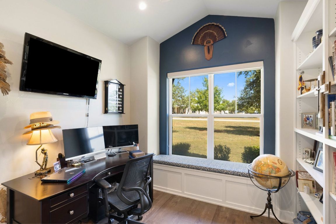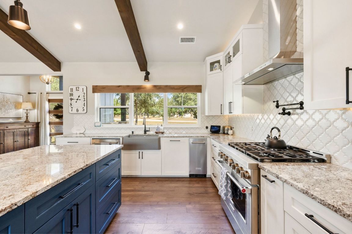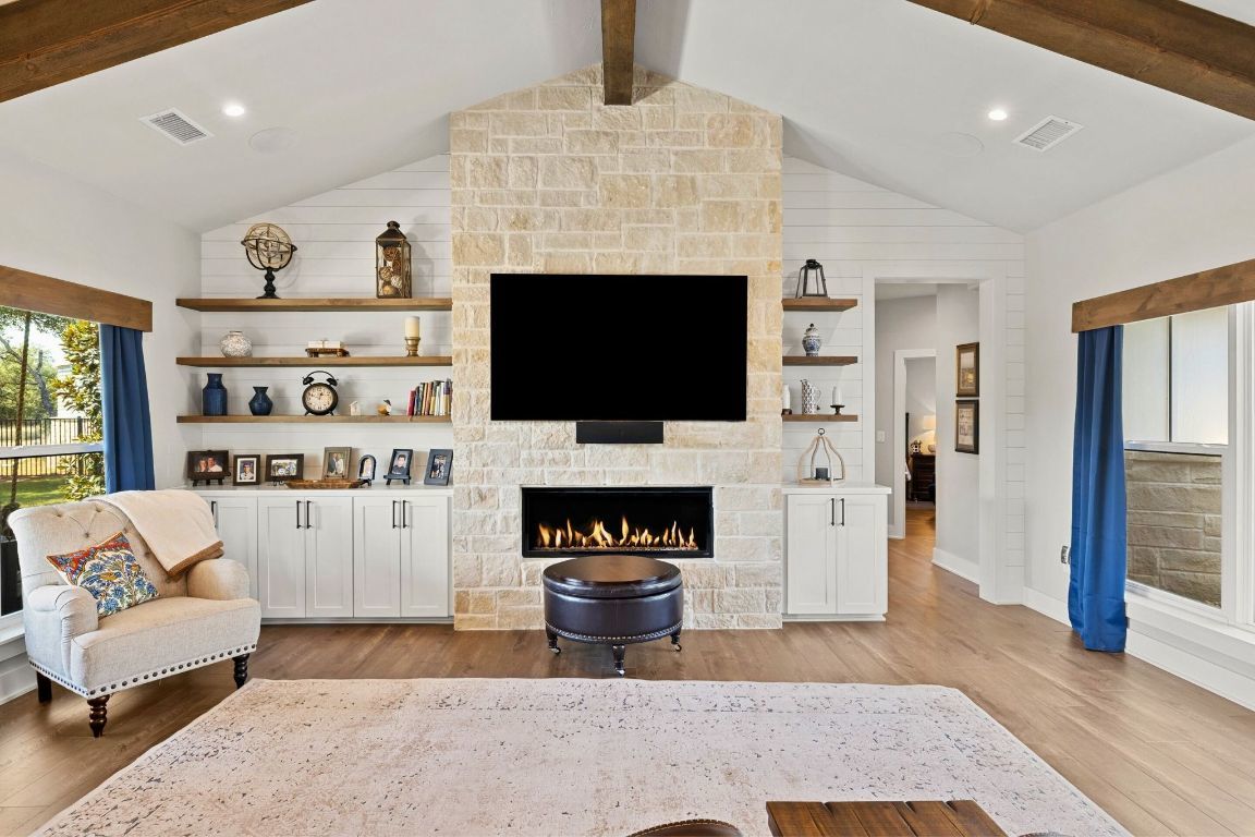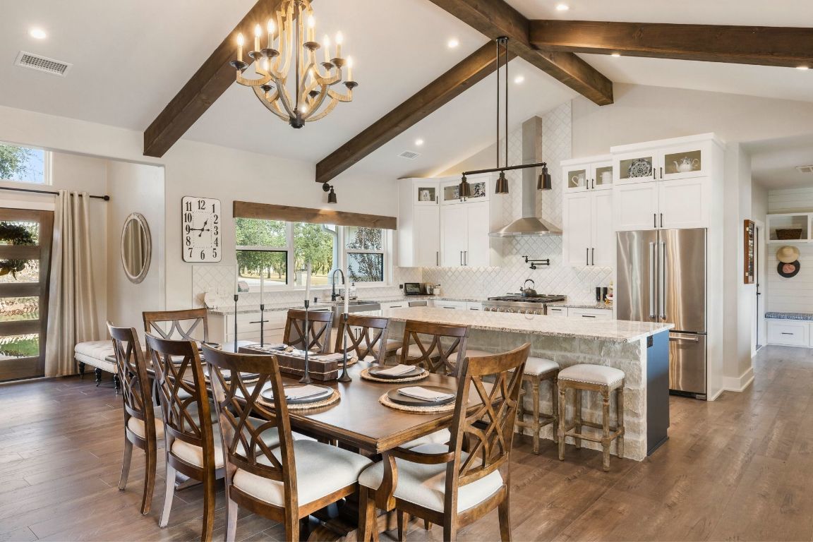 This custom-built 4-bedroom, 3.5-bath modern farmhouse pairs timeless design with thoughtful upgrades, creating a warm yet sophisticated Hill Country retreat. Set on 3 acres, the home offers both privacy and convenience, with expansive outdoor living and an open-concept layout designed for today’s lifestyle. Inside, beamed ceilings, wide-plank hardwood floors, and walls of windows set the tone for refined country living. The chef’s kitchen features abundant custom cabinetry, pantry cabinetry with pull-out shelving, a coffee station, and an oversized island that flows seamlessly into the dining and living areas. Anchored by a stone fireplace and custom built-ins, the living room is equally suited for cozy evenings or lively entertaining. The primary suite is a true sanctuary with a stained wood tongue-and-groove ceiling, a spa-inspired bath with an oversized soaking tub, a towel warmer, and dual vanities, plus a custom closet with built-ins and automated clothing lifts. Additional bedrooms include a private en-suite guest room and a charming bunk room with built-in bunk beds, perfect for multiple kids, family, or visitors. A dedicated study with custom cabinetry and a versatile den with barn-door storage provide flexible spaces for work and leisure. Outdoor living is at the heart of this property. A resort-style pool and spa with glass tile detailing invite relaxation, while a covered pergola, spacious porches with tongue-and-groove wood ceilings, and wide open views create the perfect setting for gatherings. A stone-clad 20x20 storage building with dual garage doors offers practical function, complemented by a 25,000-gallon rainwater harvesting system. Blending modern luxury with timeless farmhouse character, this property delivers a rare opportunity to embrace Hill Country living at its finest. *Owner occupied - please allow 24 hour notice for showings*