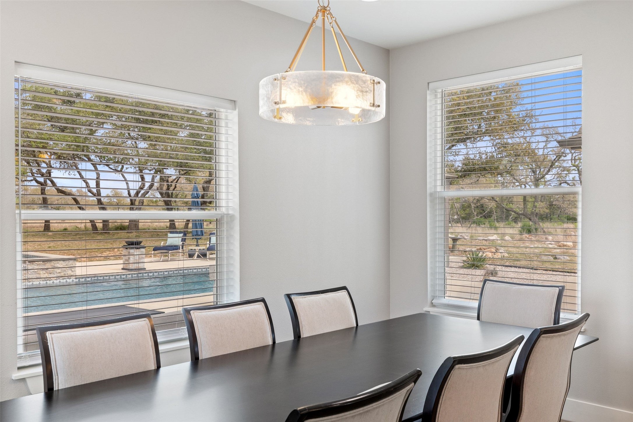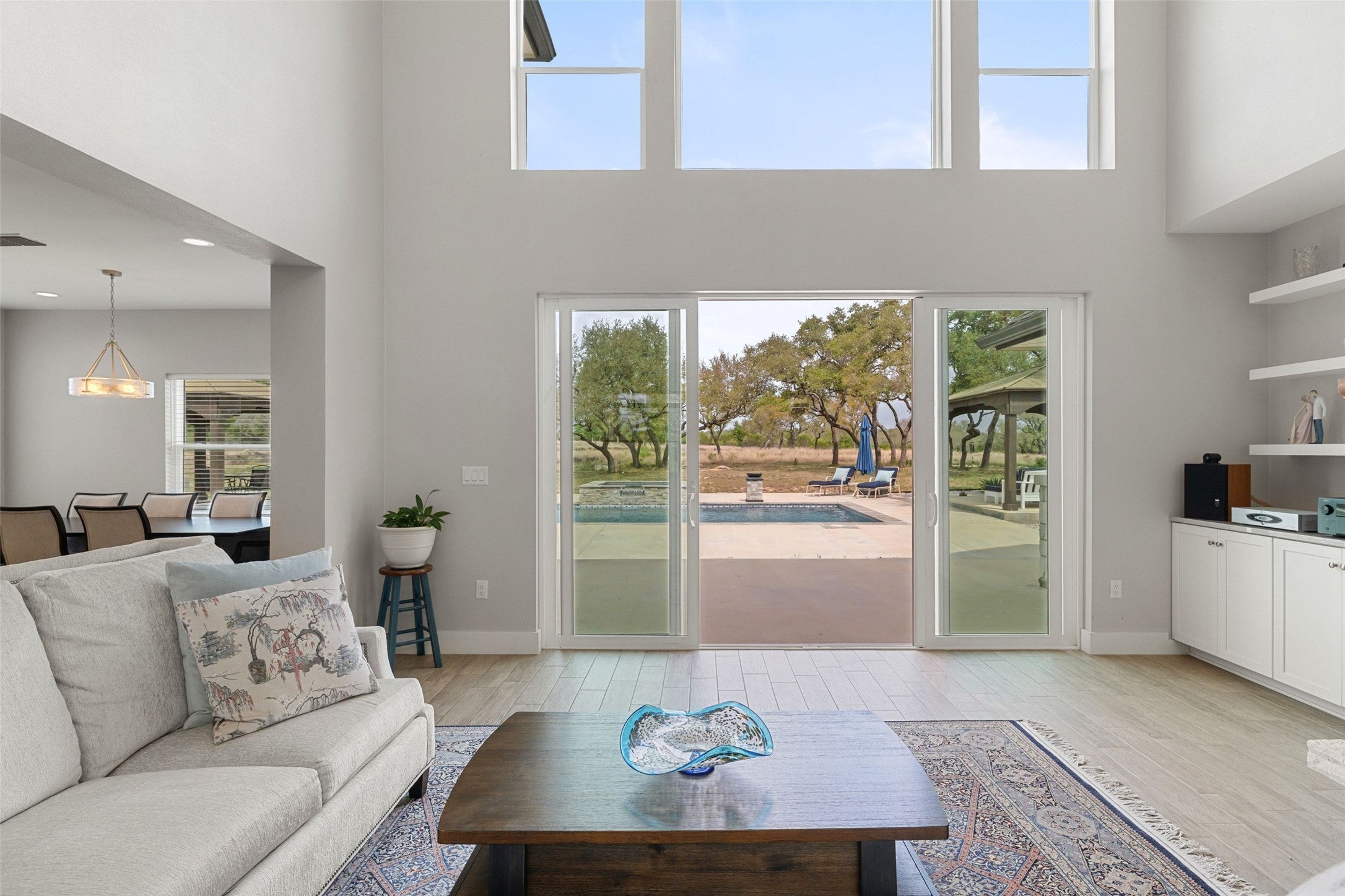 Welcome to Texas Hill Country living at it’s best in Johnson City! This exquisite 4376 sf home sits nestled on 10 secluded acres just one hour from Austin and San Antonio and only 30 minutes to Fredericksburg and 20 minutes to Dripping Springs! This ranchette is fully fenced and gated, surrounded by beautiful oak trees and abundant wildlife. When entering the home, you are greeted by a 20’ tall foyer and living area with a stone fireplace that can be used with wood or propane. The kitchen has quartzite countertops and marble backsplash, with Thermador appliances. The home features custom cabinetry, tile floors, marble showers, champagne bronze fixtures and Bali wood blinds. All kitchen appliances convey as well as an additional refrigerator in the butler’s pantry. There are 4 bedrooms and 3.5 bathrooms with a separate office and an enormous upstairs entertainment/media room with a wet bar and additional storage. When you step outside to the patio area, you are greeted by a 15’x35’ pool with sundeck and a hot tub spa, two relaxing cabana areas to enjoy quietly or with family and guests! The home has a backup generator with auto start and wi-fi capabilities, a maintenance contract is included. There is a 1,000-gallon propane tank that holds enough fuel to run the generator for a month and a 2,500-gallon water holding tank. The shed and greenhouse are both insulated and wired for electricity. This luxury property offers tranquility as well as ample space and accommodations for the ultimate in entertaining. The sellers are in the process of establishing honey bees on the property, and after one more year will offer an Ag exemption for lower taxes! Redundant internet service is available. There is a $30 per year mandatory POA fee, and a $170 per lot voluntary fee for road maintenance. Do not miss this one!