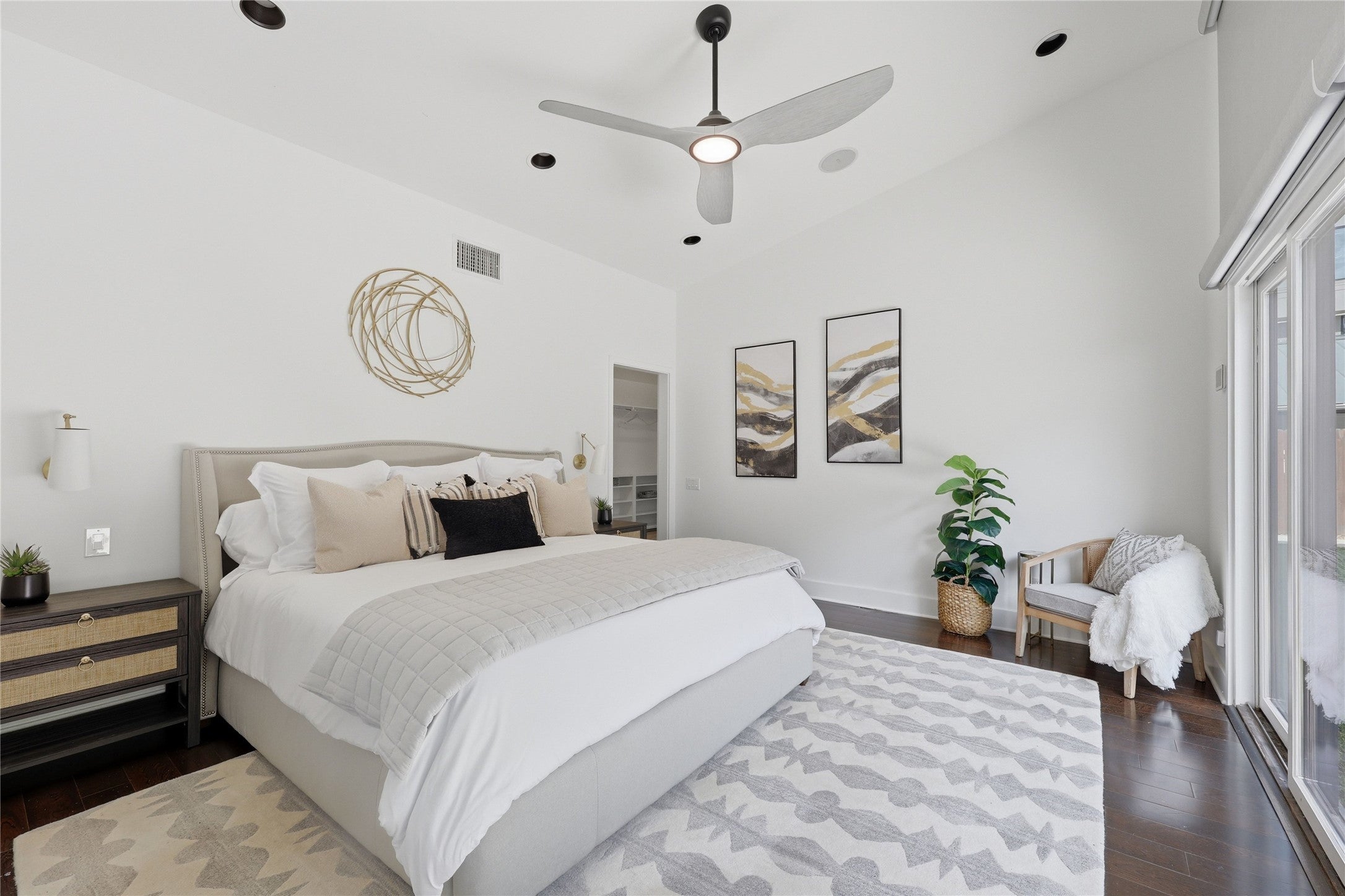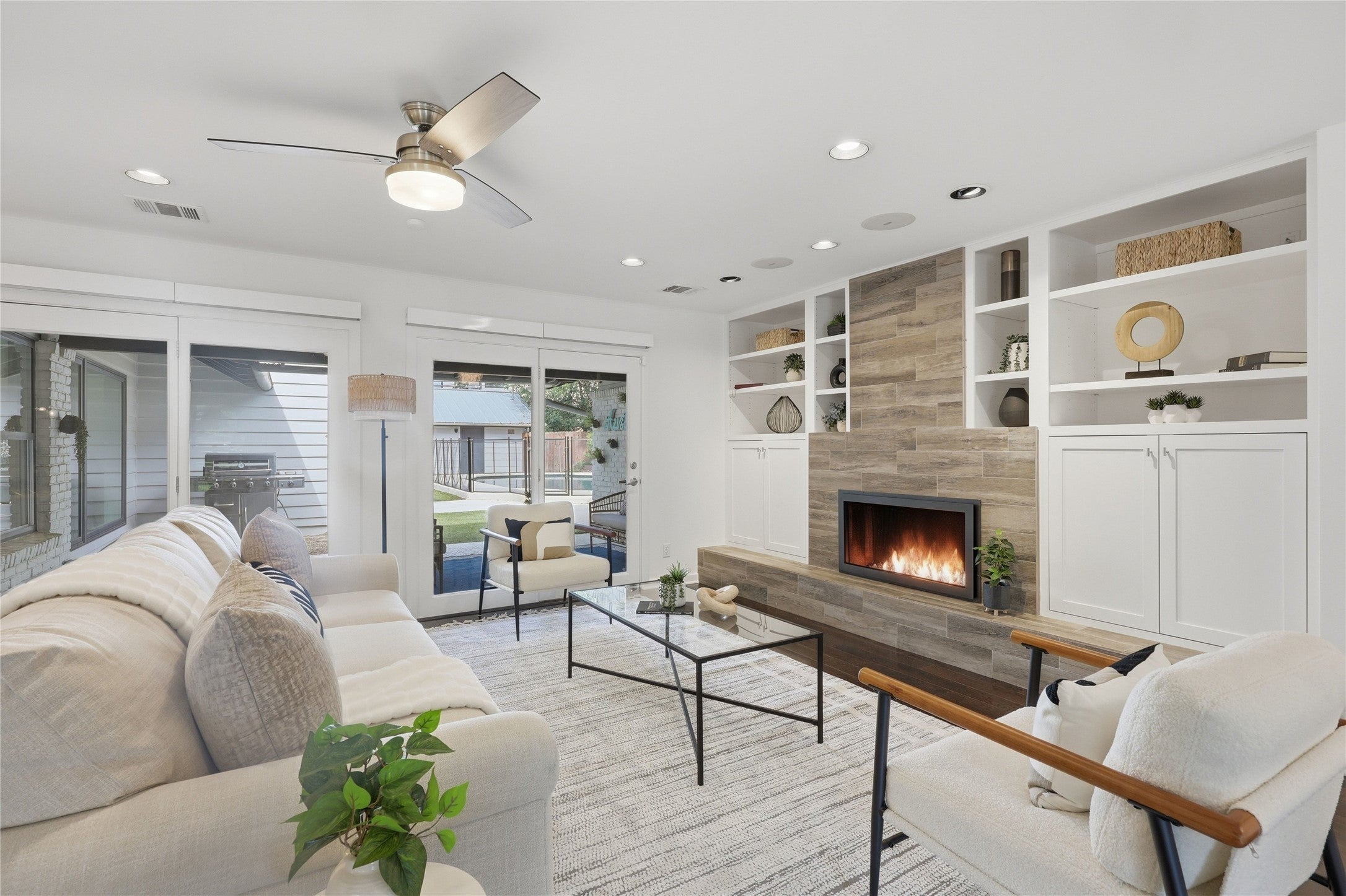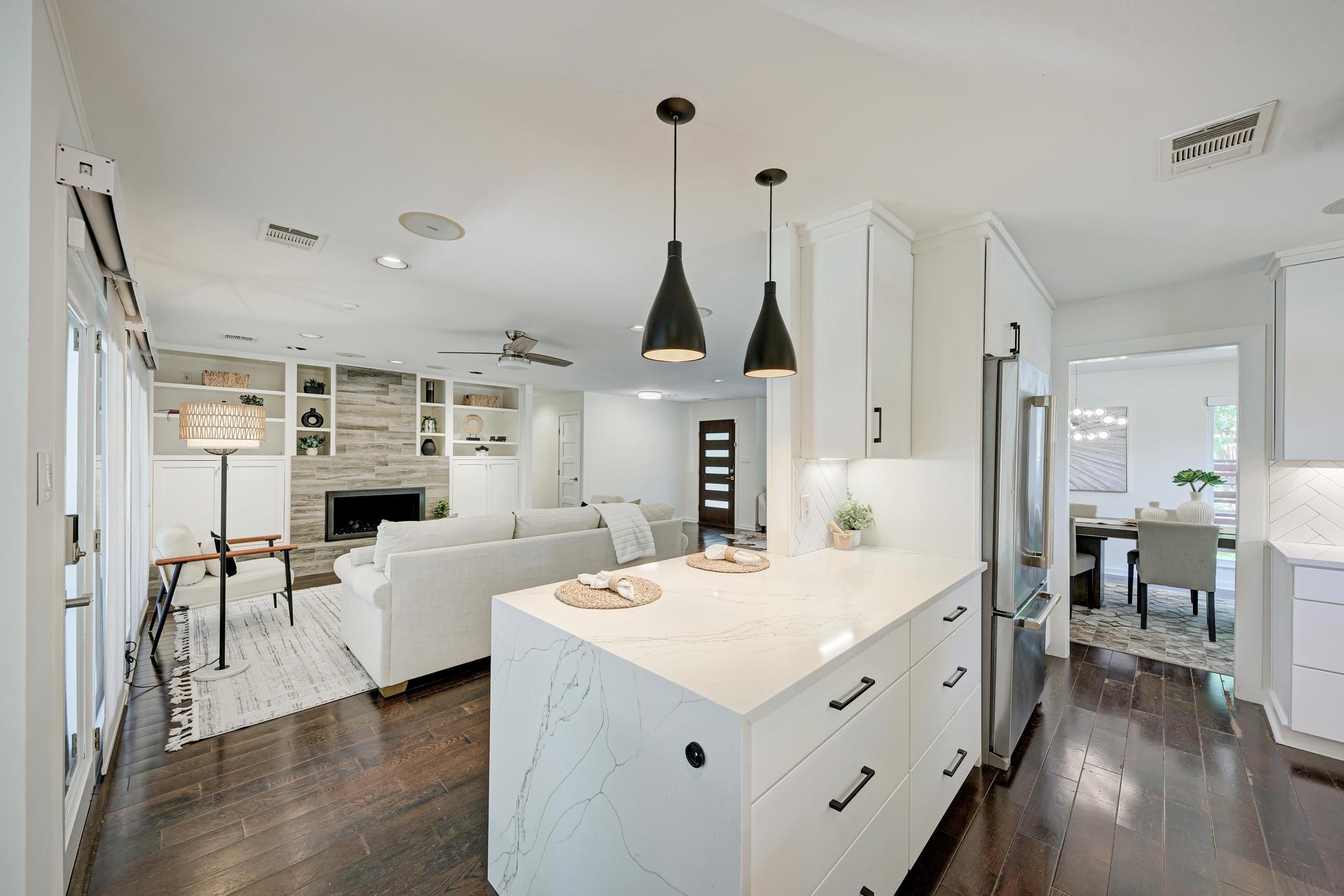 Experience the pinnacle of South Austin living in this stunning, updated single-story retreat in the heart of Barton Hills. Perfectly positioned for both relaxation and entertaining, the home welcomes you with a gated front courtyard and a bright, open interior that has been revitalized with fresh paint throughout. The seamless layout boasts hardwood floors, LED recessed lighting, a designer fireplace, and a remodeled chef’s kitchen featuring sleek countertops and premium stainless JennAir appliances. With four spacious bedrooms plus a dedicated home office, the floor plan is thoughtfully designed to include two primary suites. The main primary retreat is a true sanctuary, offering vaulted ceilings, custom walk-in closets, and a spa-style bath, all framed by a wall of sliding glass doors that overlook your private backyard oasis. The outdoor living space is a showstopper, centered around a sparkling pool with a child safety net and a generous deck for lounging under the shade of mature trees. Recent updates include professional landscaping and a low-maintenance turf lawn, ensuring a lush, green aesthetic year-round with minimal effort. Practicality meets peace of mind with a detached two-car garage, a natural gas backup generator, and smart home features including a Nest thermostat and exterior Wi-Fi security cameras. Located just steps from the Barton Creek Greenbelt and minutes from Downtown, this home combines modern convenience with the timeless charm of Austin's most sought-after zip code.