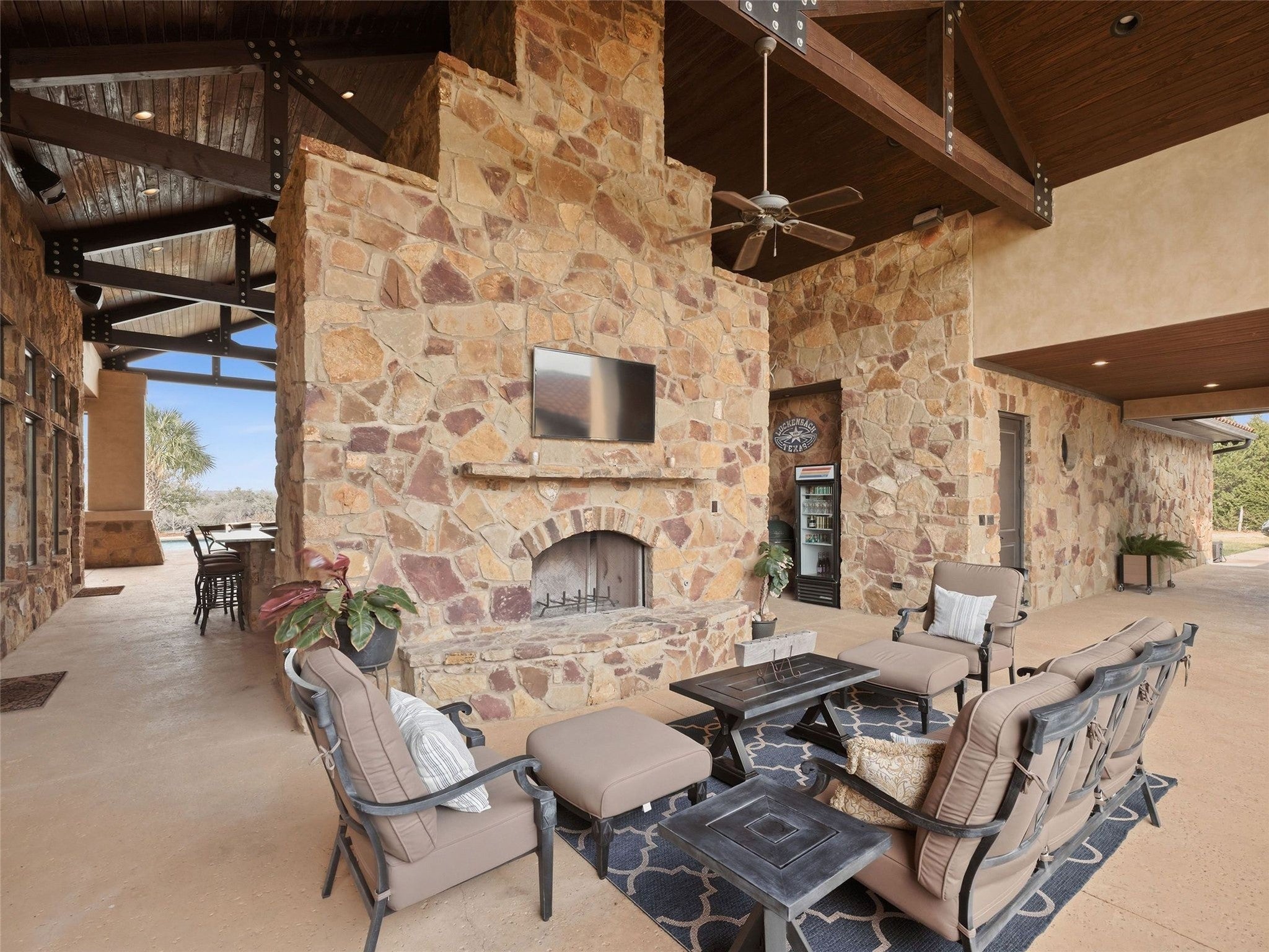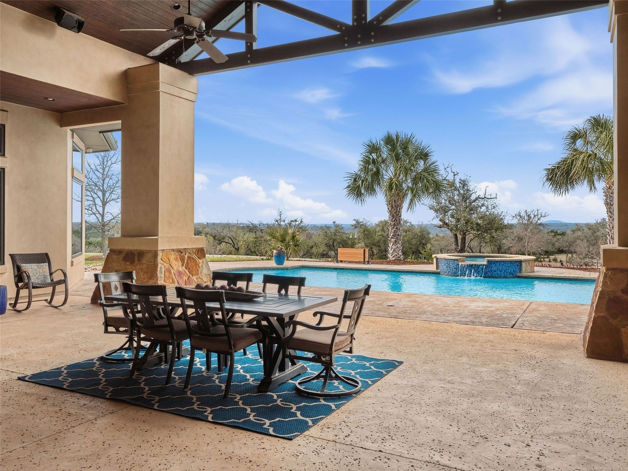 Montage Ranch is set across 15 private acres just outside Georgetown, offering a rare combination of land, privacy, and a residence designed to engage with its surroundings while remaining within reach of Austin. Built by Sendero Homes and designed by architect Rob Sander, the home spans over 7,500 square feet, balancing scale with a layout suited for both everyday living and entertaining. A long drive and circular entry create a strong sense of arrival, opening to views across rolling pastureland. With agricultural exemption in place and open land surrounding the home, the setting delivers space and quiet that is increasingly difficult to find at this scale near Austin. Native wildlife moves freely throughout, reinforcing the connection to the Hill Country landscape. Inside, natural materials and craftsmanship define the home. Acacia hardwood floors, travertine, plaster walls, and custom alder cabinetry create a warm interior, while 10 to 12 foot ceilings, beams, and groin vault details add depth. The kitchen anchors the home with double islands, Wolf and Sub Zero appliances, a farmhouse sink, and generous prep space. The primary suite offers privacy and scale with dual closets, separate water closets, a walk through shower, and soaking tub. Secondary bedrooms are oversized, with a dedicated office or optional bedroom, utility room, and mudroom. Outdoor living is a defining feature. A covered structure with exposed trusses extends the home with a wraparound bar, outdoor kitchen, dining area, and wood burning fireplace. The pool and spa sit just beyond. A detached structure serves as a media room or guest retreat with living area, kitchenette, bedroom, and bath. Garage and storage support a land driven lifestyle. Montage Ranch offers private acreage just outside Georgetown, with additional acreage available for future expansion or long term land holding.