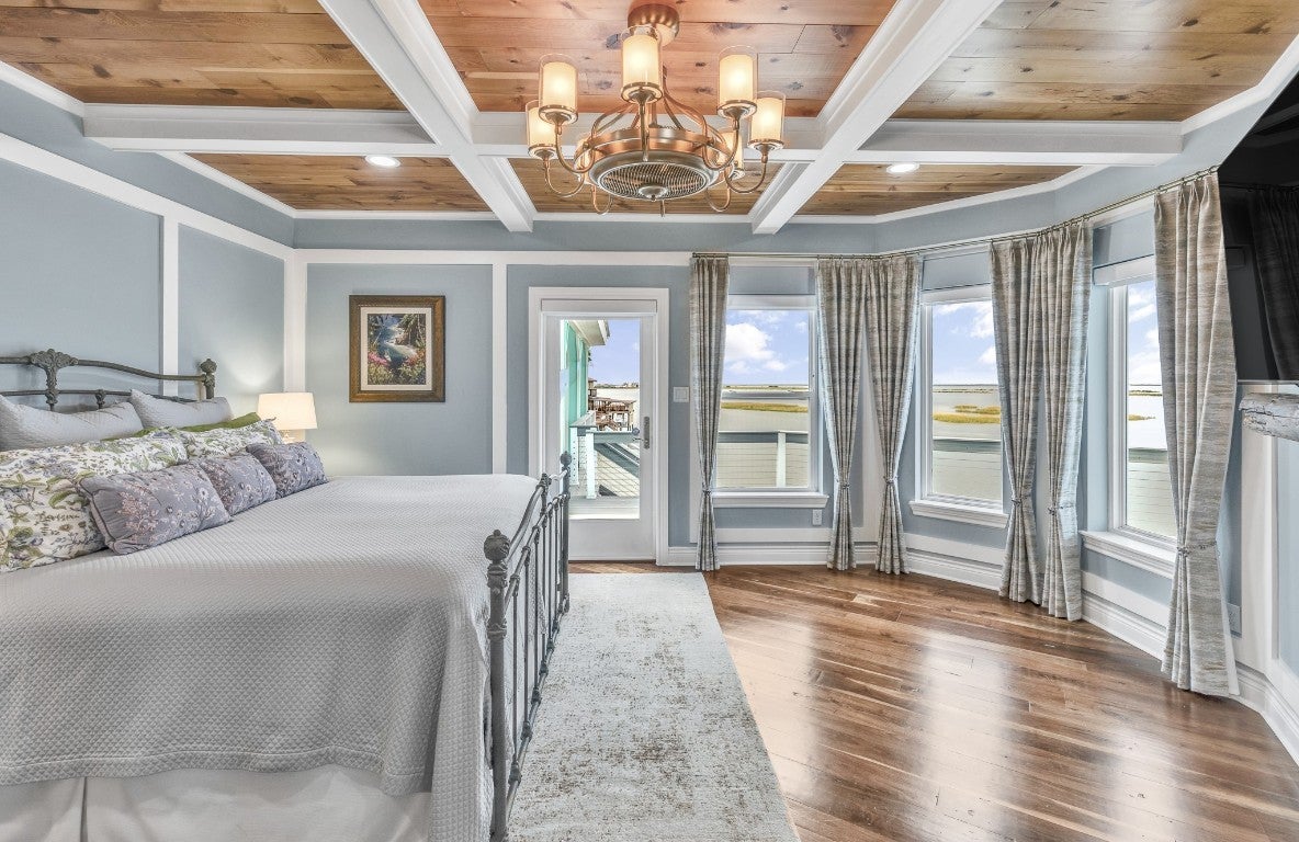 JUST REDUCED $140,000!!! This exceptional waterfront retreat is supported by a current appraisal, creating a rare opportunity to purchase with instant equity. Sellers are motivated, positioning this home as one of the most compelling luxury waterfront values currently available on NPI. Experience coastal luxury reimagined in this striking custom-built home completed less than 3 years ago, offering over 300° of unobstructed water views. Hurricane-rated impact windows frame nearly every room, flooding the home with natural light and coastal scenery. Inside, refined craftsmanship shines with 7/8-inch Pennsylvania black walnut flooring with turquoise inlays, Arkansas virgin knotty pine ceilings and beams, and Carrera marble accents throughout. The gourmet kitchen features custom cabinetry, a statement copper sink, and professional-grade appliances, opening seamlessly into open-concept living and dining spaces ideal for entertaining or everyday coastal living. The home includes 5 bedrooms plus a private home theater or flexible suite, featuring premium acoustics, Harman Kardon sound, and Dolby Digital surround. Distinctive architectural touches—historic French doors, 18th-century theater doors, and a bespoke pirate-themed bedroom—add character rarely found in modern construction. The primary suite offers sweeping water views, a spa-style bath, clawfoot soaking tub, oversized tiled shower, and private laundry. Outdoors, enjoy resort-style living with a heated saltwater pool, composite decking, and a private dock with two boat lifts, providing direct access to the Intracoastal Waterway and the Gulf of Mexico. Modern systems include a whole-house dehumidifier, hardwired sound and security, tankless water heater, trim lighting, electric blinds, and low-maintenance xeriscaping. Located minutes from the beach, Gulf access points, dining, shopping, and Douden Park, this home delivers a rare blend of craftsmanship and lifestyle.