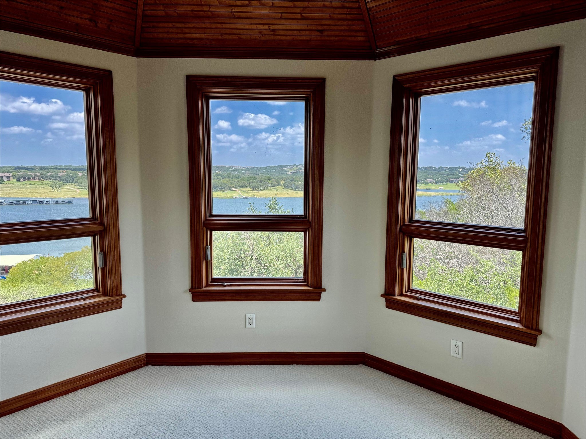 This beautifully designed multi-story home sits perched above Lake Travis, offering breathtaking views of the lake and surrounding natural Hill Country. The spacious, open-concept kitchen features custom wood cabinetry, granite countertops, a striking backsplash, center island, and flows seamlessly into the expansive main living area. Soaring ceilings and a cozy fireplace create an inviting atmosphere, while the large covered patio provides the perfect place to relax and take in the stunning scenery. The primary suite, located on the main floor, opens directly to its own covered patio with lake views and boasts tall ceilings, dual vanities, and oversized his-and-hers walk-in closets. Upstairs, two additional bedrooms share access to a dramatic spiral staircase that leads to a private observatory — the perfect retreat to soak in the panoramic lake views. This one-of-a-kind home captures the essence of Lake Travis living — a perfect blend of luxury, comfort, and natural beauty