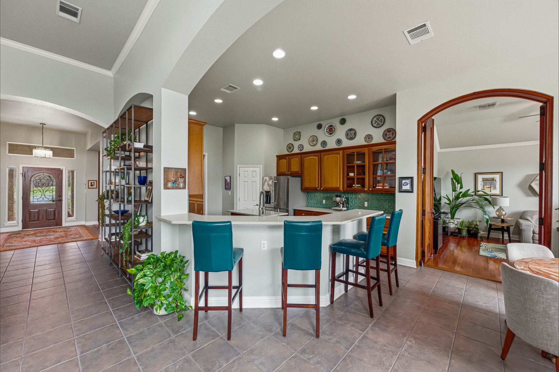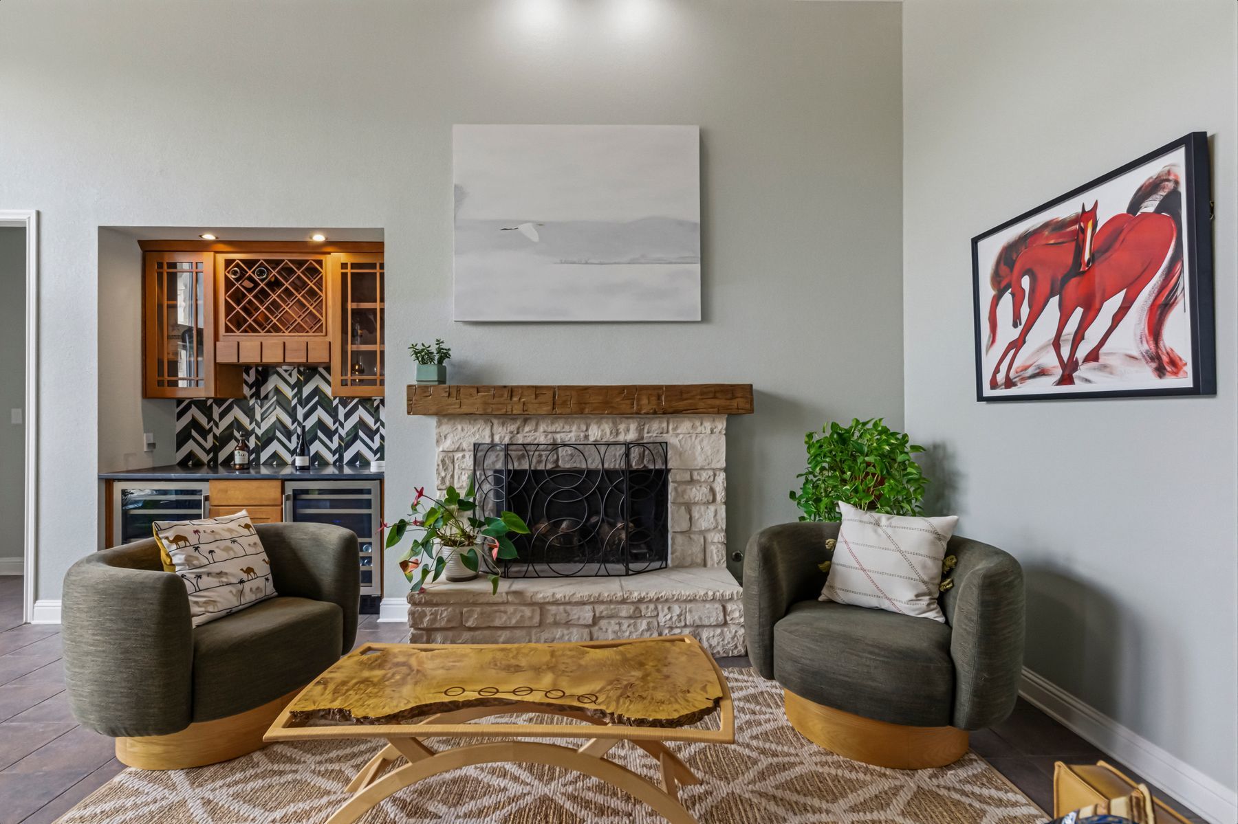 A rare opportunity to enjoy peaceful Hill Country living on a full acre in Southwest Austin while remaining just minutes from the city and a multitude of private schools, including Regents, St. Andrews, and St. Michael's Prep. Situated in the desirable The Oaks at Hill Country Estates community, this beautifully designed single-story residence offers an ideal balance of privacy, natural beauty, and modern comfort. The efficient and thoughtfully designed floor plan features 4 spacious bedrooms, 3.5 bathrooms, a main living area with fireplace and wine bar, a dedicated office, a second living room located conveniently next to the kitchen that can function as a game or media room, and a versatile flex room perfect for an exercise, craft, play or additional work space. The kitchen is complete with quartz countertops, stainless steel appliances, an abundance of cabinet space, and walk-in pantry. The spacious primary suite offers a relaxing space, featuring a beautifully remodeled bathroom and closet with custom shelving and storage. A 3-car side entry garage offers plenty of space for cars, storage, and equipment. Strand Eucalyptus wood flooring and tile flooring flow throughout the home, adding warmth and durability while large windows invite natural light and views of the peaceful setting. The owners have made significant improvements, including the addition of Pella windows, wood flooring, kitchen and bathroom remodels, mechanical and roof replacements, fencing, tree planting, and more. An expansive Trex deck provides the perfect setting for entertaining or relaxing. The backyard features a fire pit gathering area, mature trees, and ample space to enjoy the one-acre property. There is plenty of room to add a pool or additional structure, if desired. Experience this exceptional location with close proximity to shopping and dining, the Hill Country Galleria and Sunset Valley areas, plus easy access to downtown.