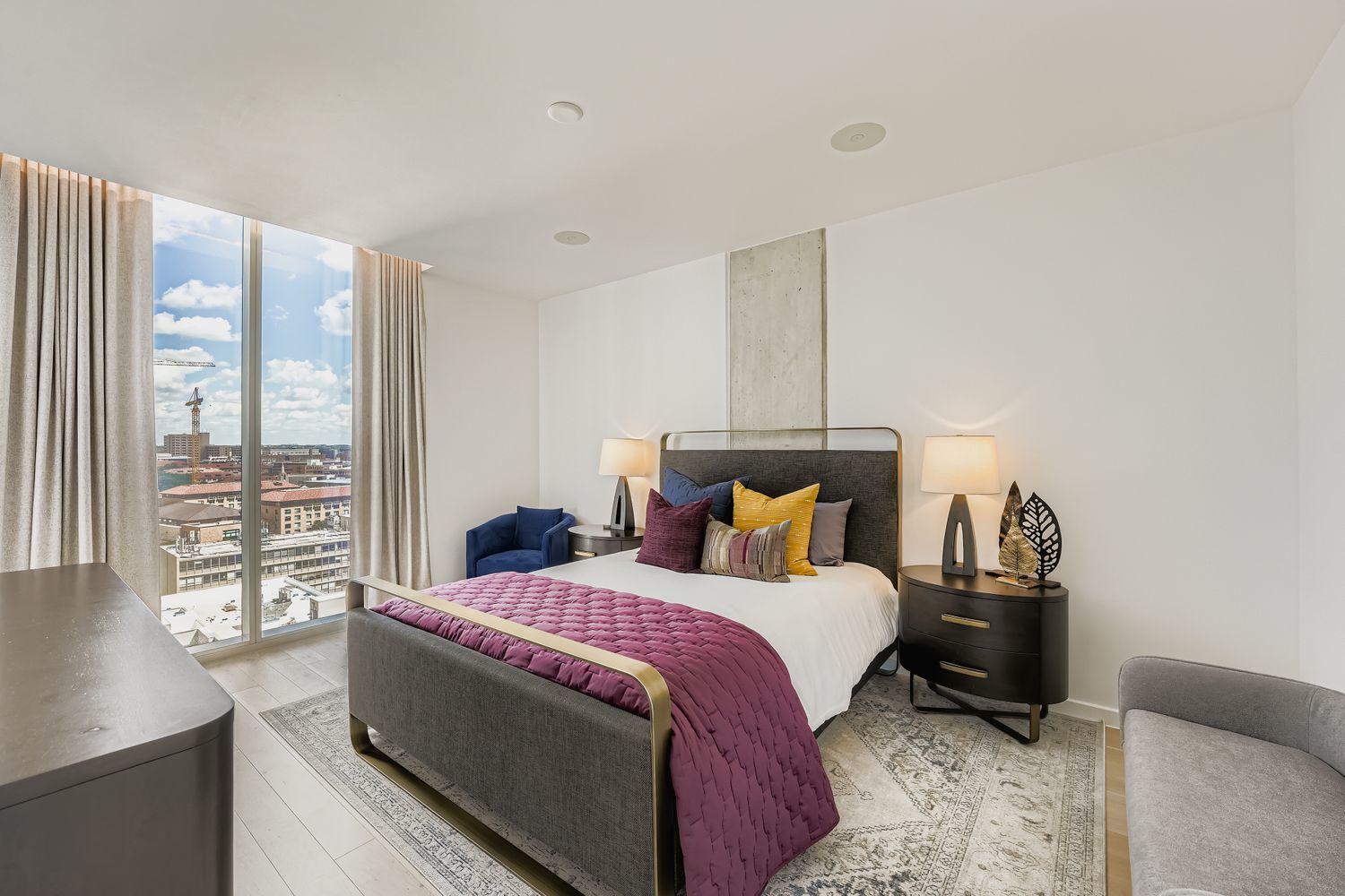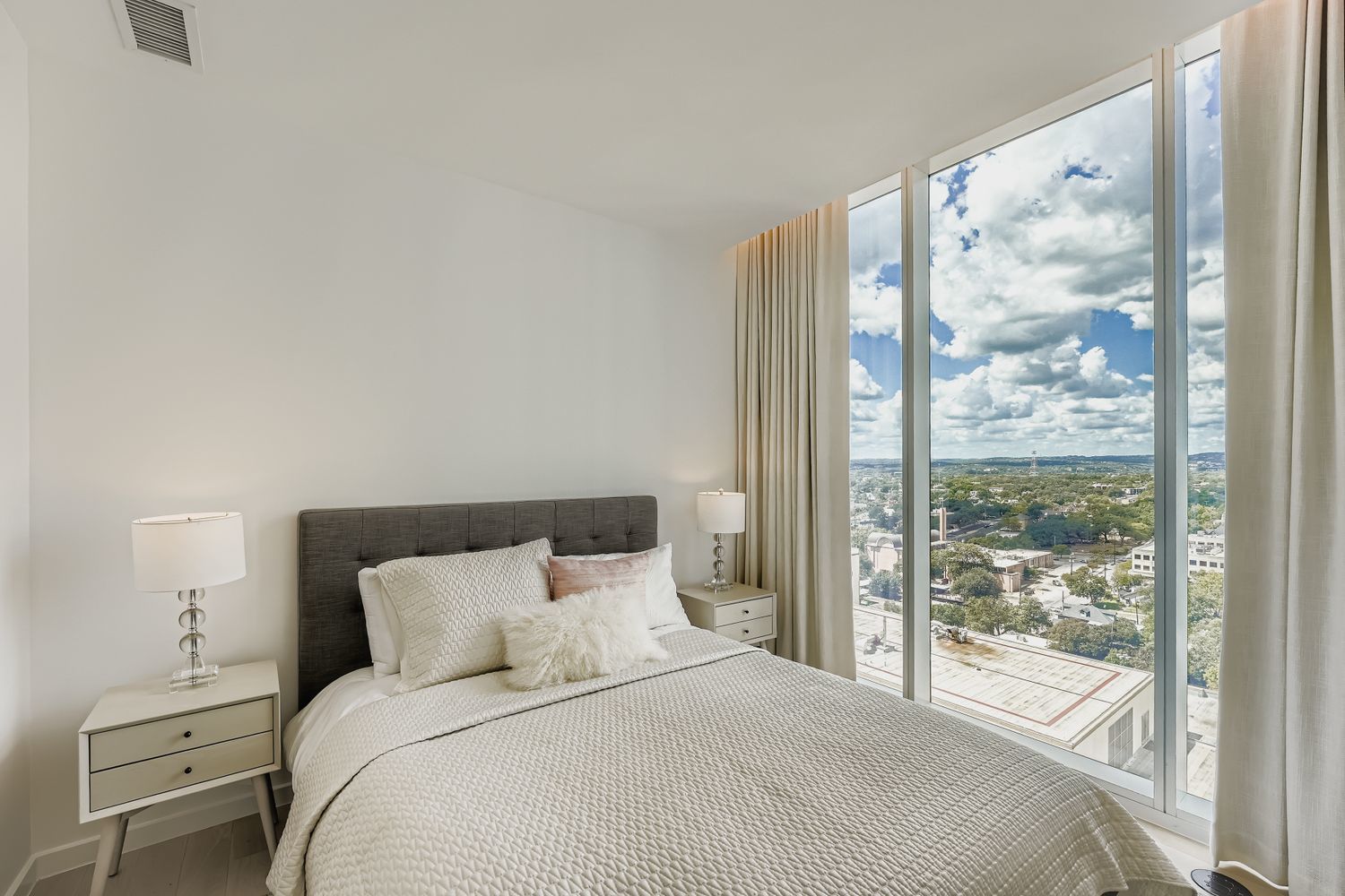 Experience the epitome of urban elegance in this remarkable residence within the new Linden condominiums. This refined 2-bedroom + den home features 1,583 interior square feet (1,648 total), thoughtfully designed for both comfort and sophistication. Step inside to a meticulously crafted interior showcasing light hardwood floors, soaring 9’10” floor-to-ceiling windows, and automated roller shades. Two spacious bedrooms feature walls of glass, ensuite baths, and generous walk-in closets, creating serene private retreats. The kitchen is among the largest in the building, outfitted with a full suite of German-made Bosch appliances, abundant custom cabinetry, and clean modern lines—ideal for both daily living and entertaining. Two reserved parking spaces and a private 72 sqft air-conditioned storage unit further enhance convenience and value. Situated on the northwest corner, the residence captures iconic views of the UT Tower to the north and the lush Texas Hill Country to the west, with sweeping outlooks over historic Judge’s Hill. Just two blocks from UT’s campus and the Texas Capitol complex, the building sits amid Austin’s most celebrated green spaces—Waterloo Park, Shoal Creek Trail, and Pease Park. It is also just steps from Michelin Star dining at Olamaie. The Linden offers 24-hour concierge service with controlled building access and is one of downtown Austin’s newest luxury high-rises. Wellness-focused amenities include a 65’ heated lap pool, infinity-edge cold plunge, dry sauna, and fully equipped gym. Ideally located in the northwest quadrant of downtown, Whether as a refined urban retreat or a front-row seat to Austin’s cultural energy, this home delivers exceptional design, prestige, and livability.