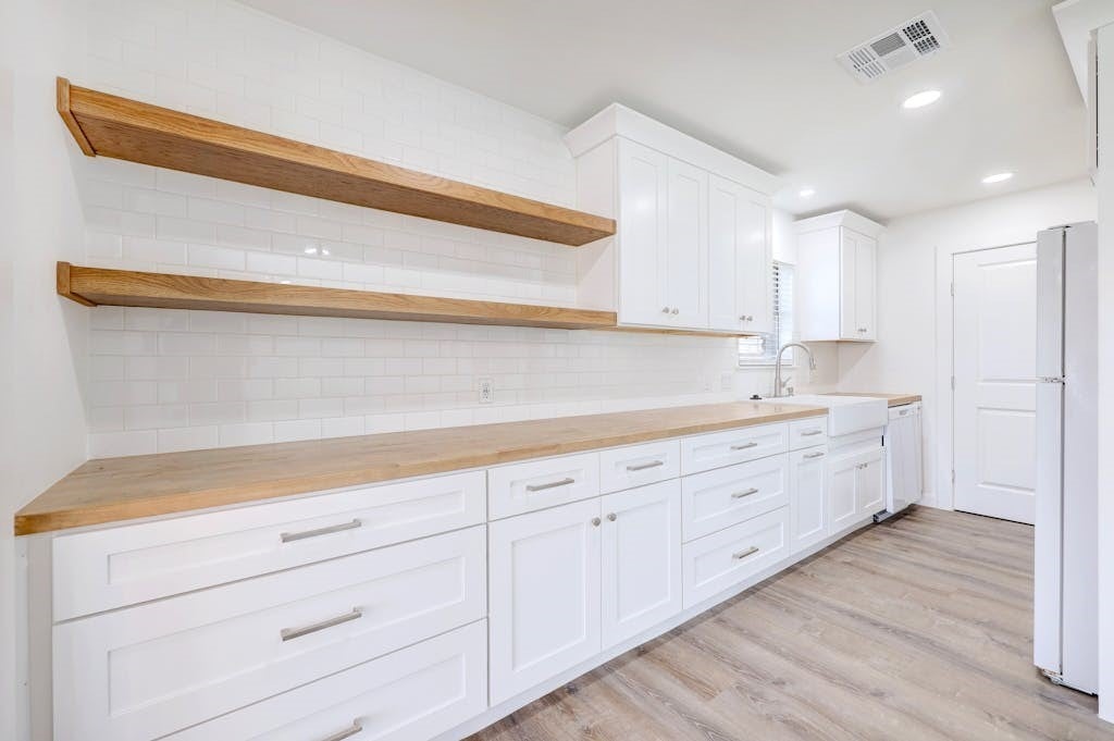 3-bedroom, 1-bath home with 1,581 sq ft featuring beautiful cabinetry, sleek countertops, and vinyl flooring throughout. The kitchen offers a bright, modern feel with open wood shelving, white shaker-style cabinets, and updated fixtures. Includes ceiling fans, spacious living areas, and a functional single-level layout. Situated on a large corner lot with a huge fenced backyard—perfect for outdoor living. There is a $85.00 Yard Care Contribution Monthly APPLY ONLINE! Pet Application required w/3rd Party vendor (size/breed restrictions apply). Pet Deposit Starts at $400 for the first pet; and $400/each for any additional pets. Security Deposit due w/in 24 hours of Approval, Lease to be signed 48 hours after the deposit is paid.