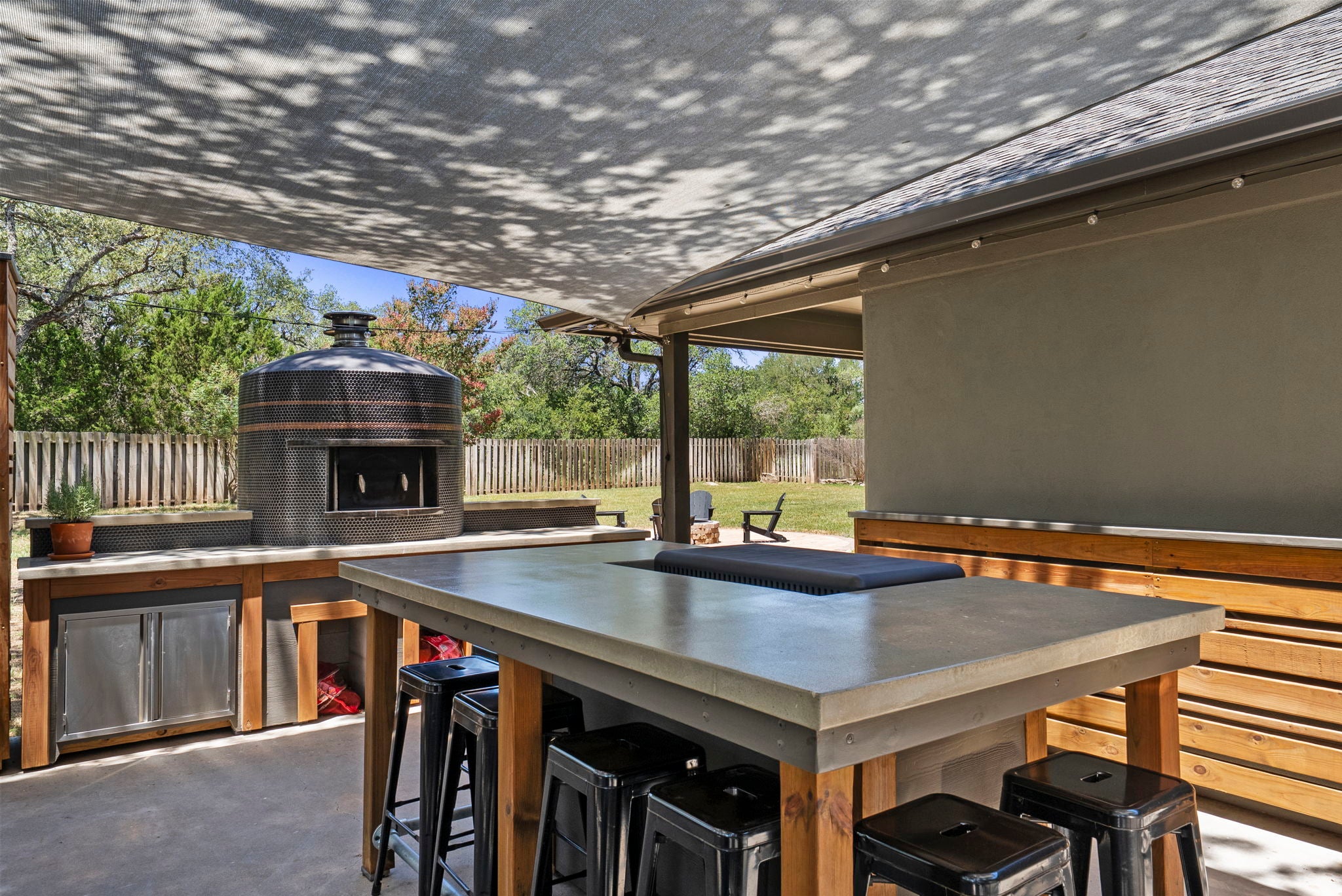 Single Level home with 3 acres located in the highly desirable gated community of Foxwood. Location, Location, Location! This home is located on the corner of Hwy 281 and Hwy 71 offering close proximity to Marble Falls, Horseshoe Bay and Baylor Scott and White Hospital while giving plenty of space and privacy to enjoy your Hill Country setting! The owner has done a ton of updates and upgrades to the home and offers an open floor plan with plantation shutters, stone fireplace, split floor plan with dual vanities and large primary suite! The exterior is a must see- Custom outdoor kitchen with stainless steel appliance which include sink, grill, beverage cooler, Pit Boss griddle, and a custom wood fired pizza oven. The large backyard has ample room for gardens or anything else you can image while being fenced for privacy!