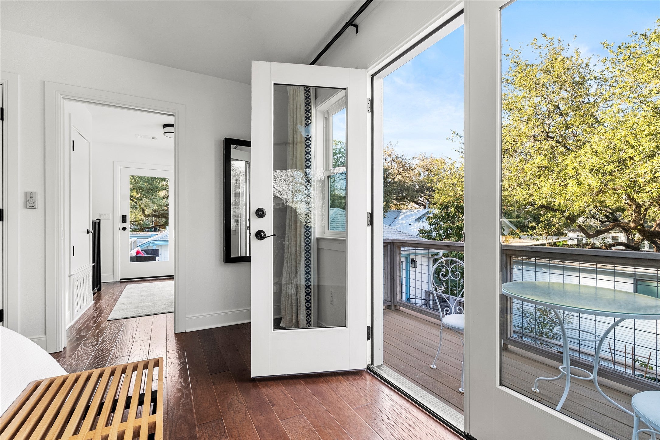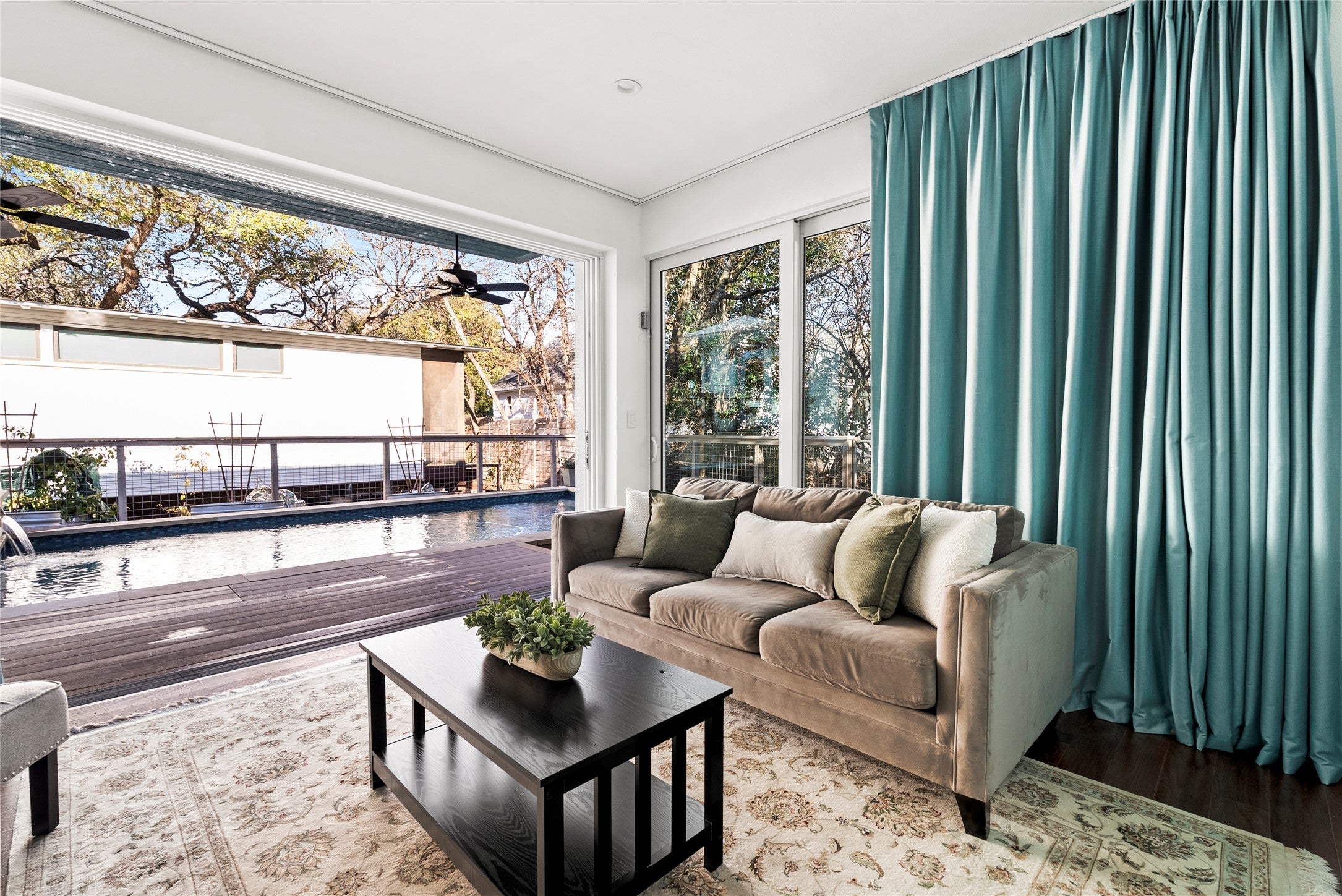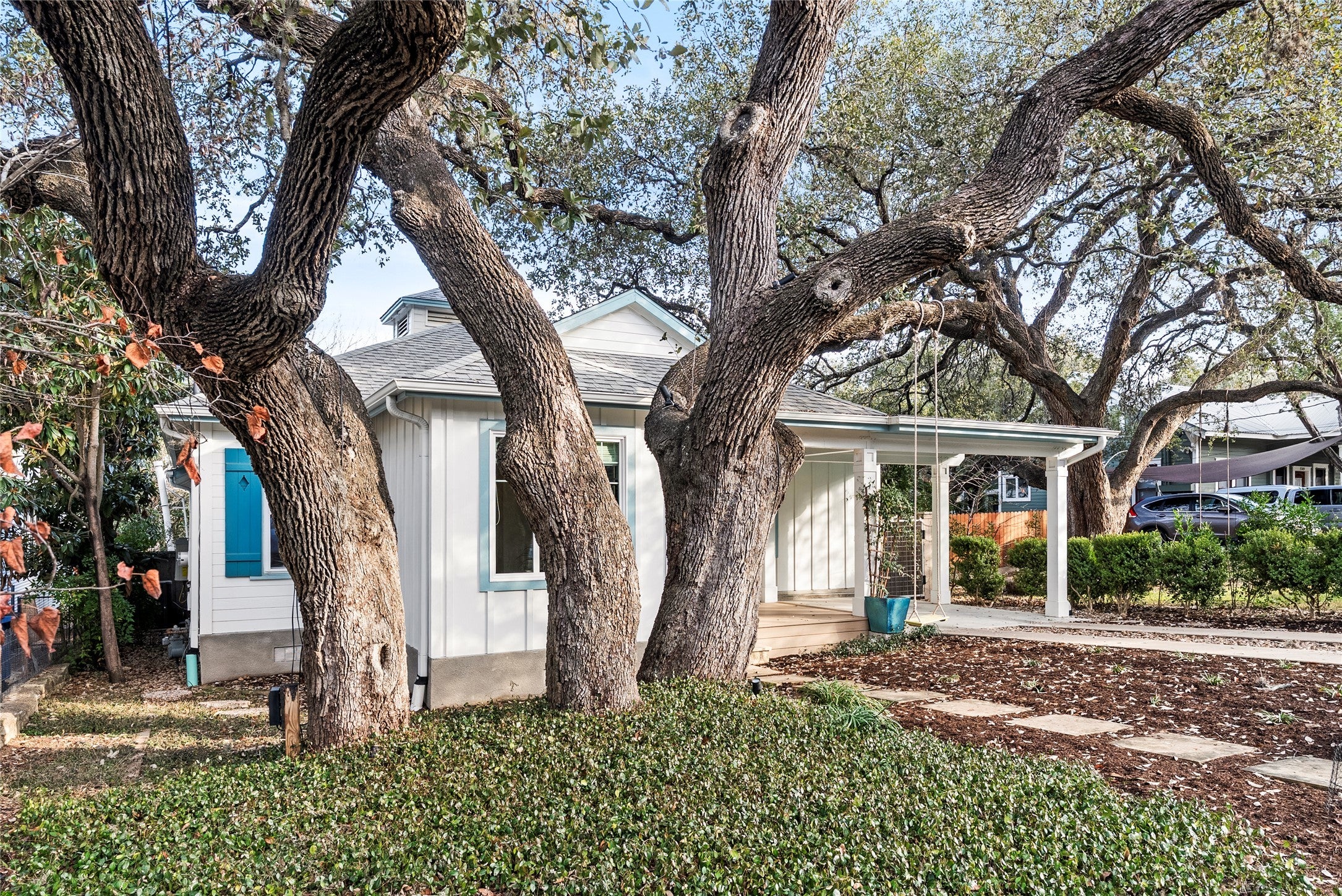 Architecturally inspired and full of soul, this exceptional home is tucked into the heart of Travis Heights, where vintage character meets thoughtful modern design. Offering 3 bedrooms and 3.5 bathrooms, the home features wood flooring throughout and a seamless blend of warmth, texture, and contemporary comfort. The main living spaces feel both inviting and intentional, with exposed wood-beam ceilings, abundant natural light, and a beautifully connected living and dining area. A striking family room anchors the home, featuring pocket glass sliding doors that fully open to create a true indoor-outdoor living experience. The centrally located kitchen is both functional and stylish, complete with stainless steel appliances, generous cabinetry, and natural light that flows effortlessly through the space—ideal for entertaining or everyday living. The primary suite offers a serene retreat with a private deck, ample closet space, and a beautifully designed bathroom. Secondary bedrooms are spacious and well-appointed, including an ensuite that adds flexibility for guests or work-from-home living. Out back, the property transforms into a private oasis with a pool, spa, and tranquil tree-lined views—perfect for entertaining or unwinding in total privacy. Located just blocks from South Congress, with its iconic restaurants, cafés, and boutiques, and minutes from Big Stacy Park and nearby trails. A rare opportunity to own a design-driven home in one of Austin’s most coveted neighborhoods.