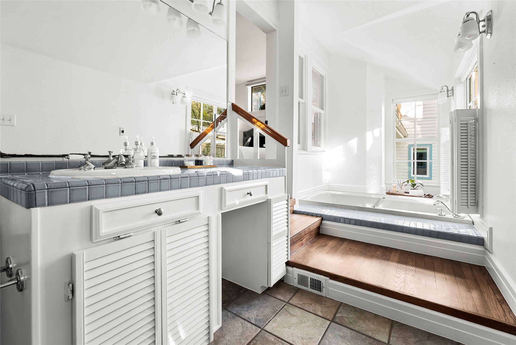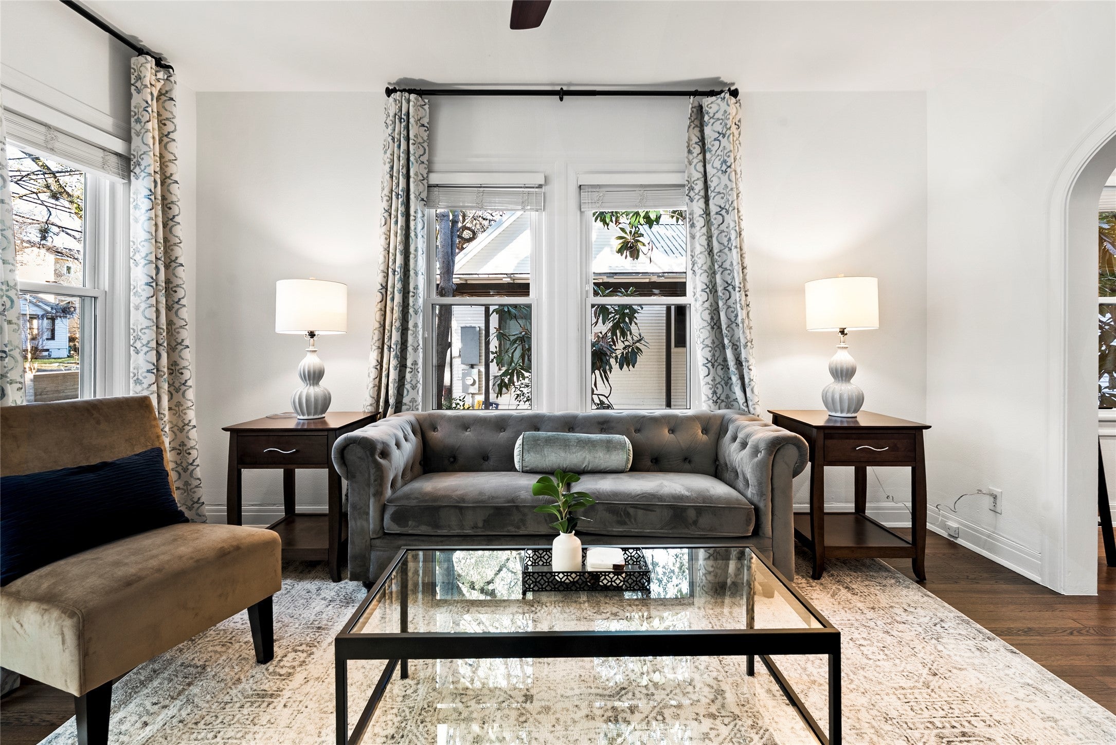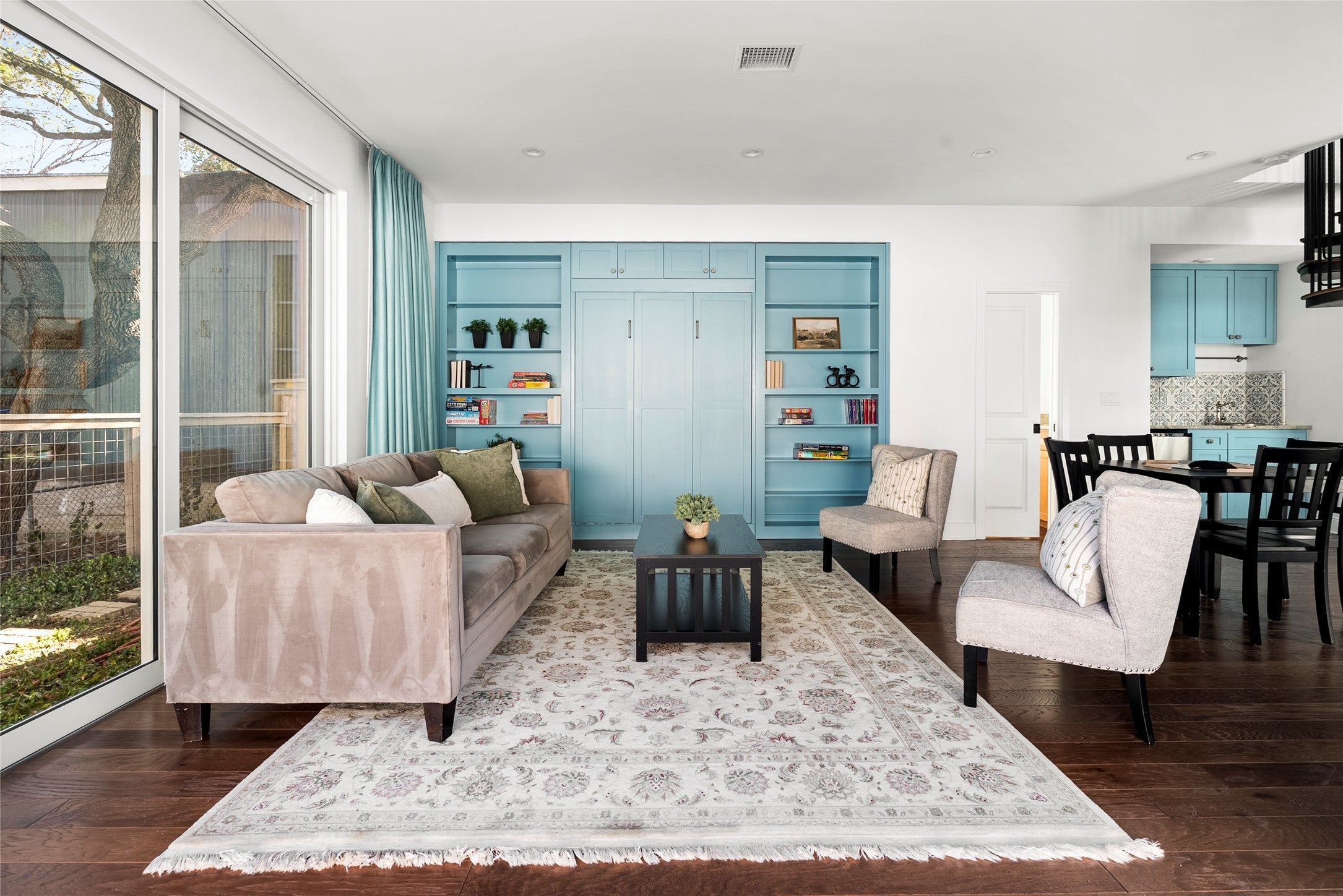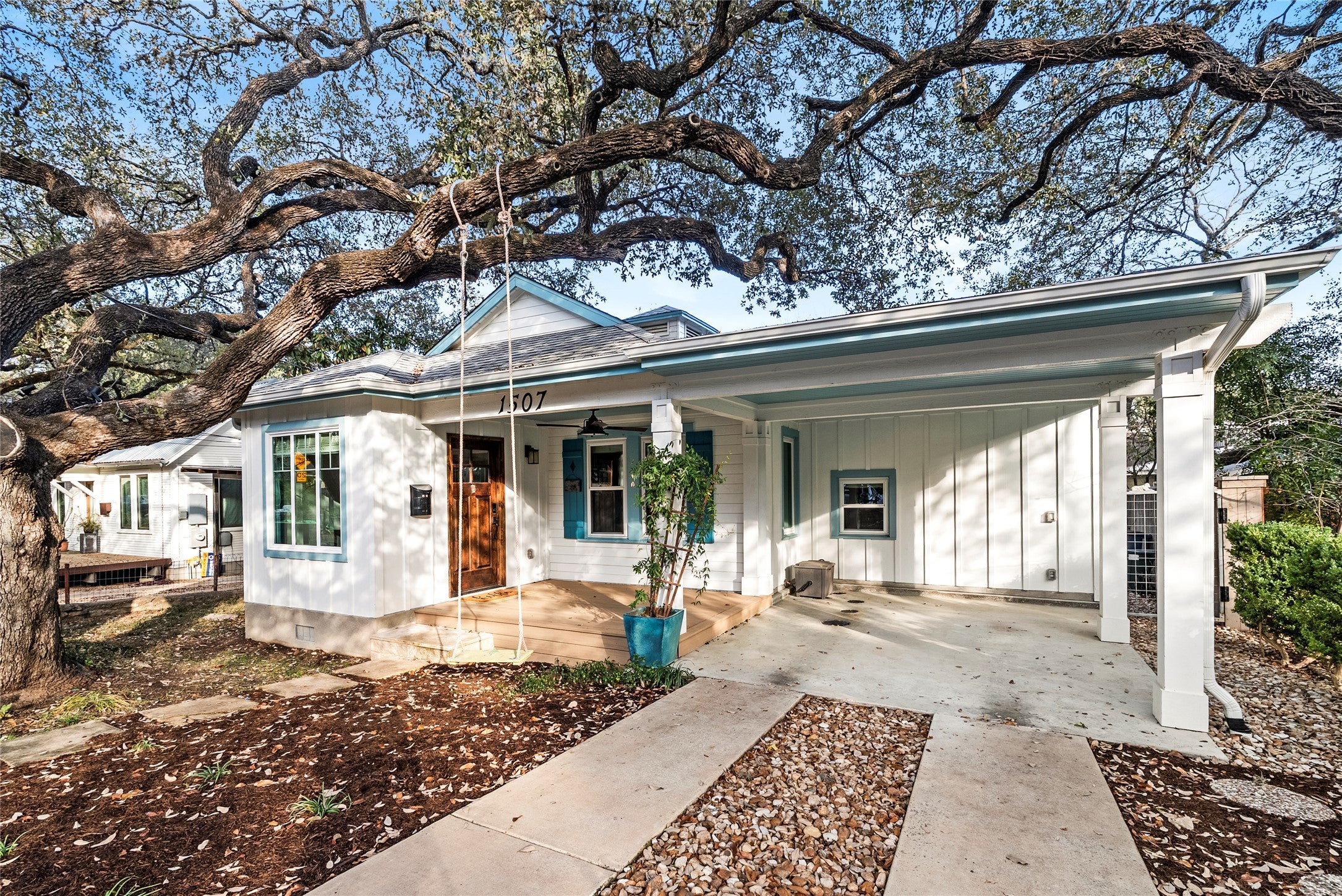 Architecturally inspired and full of soul, this exceptional home is tucked into the heart of Travis Heights, where vintage character meets thoughtful modern design. Offering 3 bedrooms and 3.5 bathrooms, the home features wood flooring throughout and a seamless blend of warmth, texture, and contemporary comfort. The main living spaces feel both inviting and intentional, with exposed wood-beam ceilings, abundant natural light, and a beautifully connected living and dining area. A striking family room anchors the home, featuring pocket glass sliding doors that fully open to create a true indoor-outdoor living experience. The centrally located kitchen is both functional and stylish, complete with stainless steel appliances, generous cabinetry, and natural light that flows effortlessly through the space—ideal for entertaining or everyday living. The primary suite offers a serene retreat with a private deck, ample closet space, and a beautifully designed bathroom. Secondary bedrooms are spacious and well-appointed, including an ensuite that adds flexibility for guests or work-from-home living. Out back, the property transforms into a private oasis with a pool, spa, and tranquil tree-lined views—perfect for entertaining or unwinding in total privacy. Located just blocks from South Congress, with its iconic restaurants, cafés, and boutiques, and minutes from Big Stacy Park and nearby trails. A rare opportunity to own a design-driven home in one of Austin’s most coveted neighborhoods.