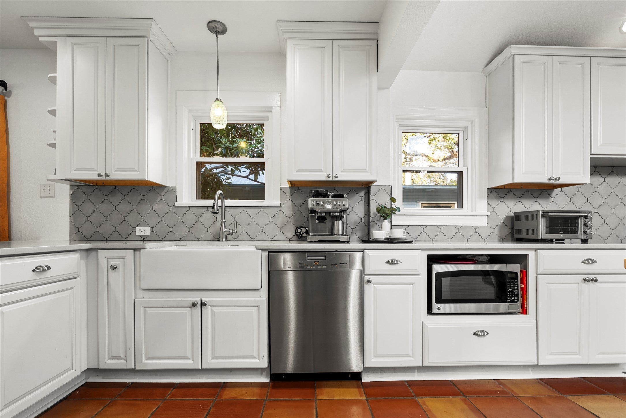 - Built-In Gas Oven, Built-In Gas Range, Dishwasher, Disposal, Microwave, Refrigerator