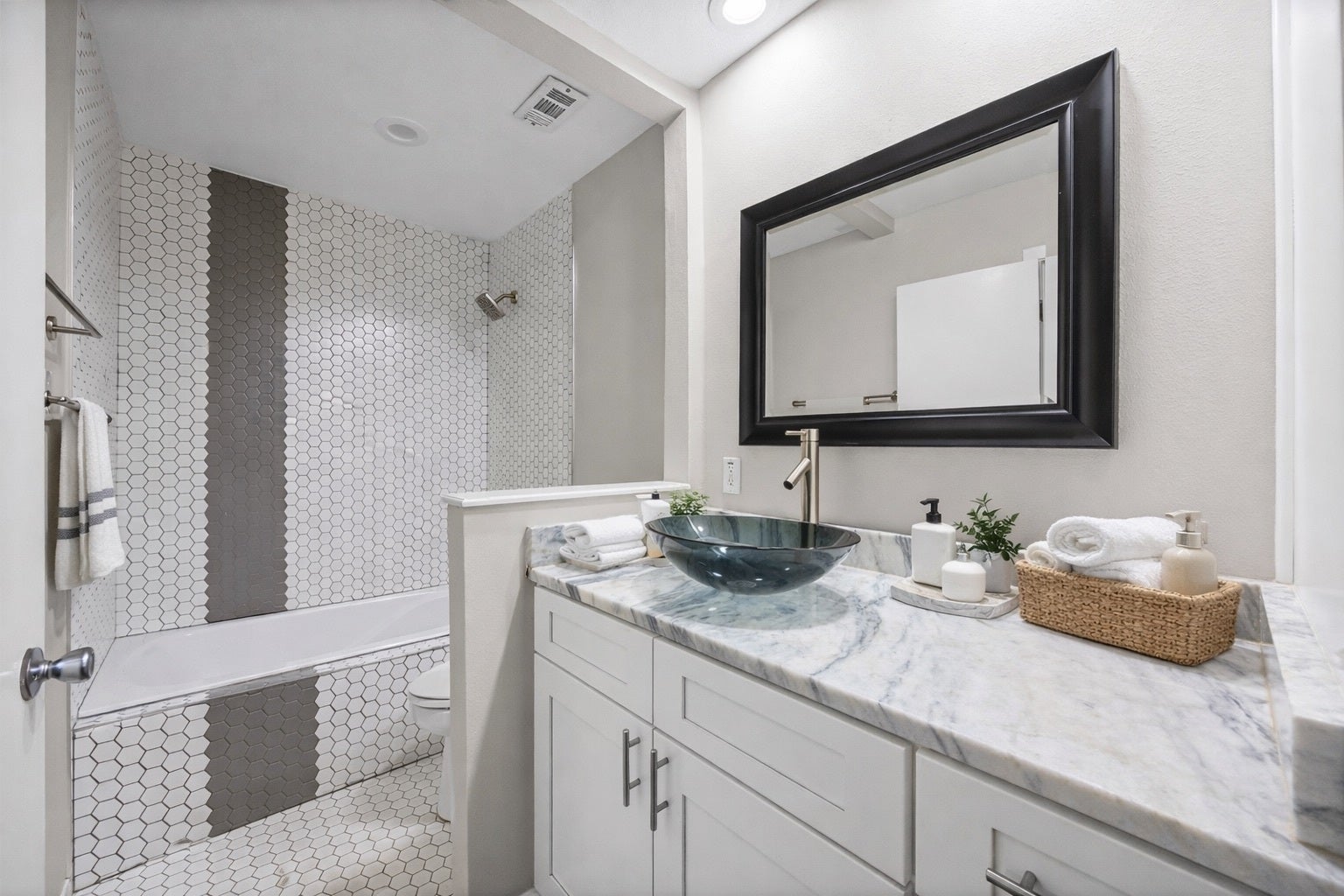 Welcome to this beautifully updated condo in the heart of South Austin, just minutes from Zilker Park and Barton Springs Pool. Owned and lovingly maintained for the past 17 years, this home blends timeless character with thoughtful modern upgrades. Remodeled in 2017, the kitchen features stone countertops, stainless appliances, and an open breakfast bar that flows seamlessly into the spacious living and dining areas—perfect for entertaining. The living space also includes a Nest thermostat and access to Google Fiber for fast connectivity. The primary bedroom features a charming bay window and a large cedar-plank walk-in closet, adding warmth and generous storage. All of the home’s windows include lifetime warranties, and the refrigerator will convey with the property. This condo is located in a beautiful brick building within a well-maintained community offering great amenities, including a pool, BBQ area, and cabana space. Community landscaping was upgraded in 2023, and the building showcases classic character with distinctive 1970s-style built-ins that add charm and personality. With its unbeatable South Austin location near Zilker Park and Barton Springs Pool, unique architectural details, and thoughtful updates throughout, this home offers a wonderful opportunity to enjoy one of Austin’s most beloved neighborhoods.