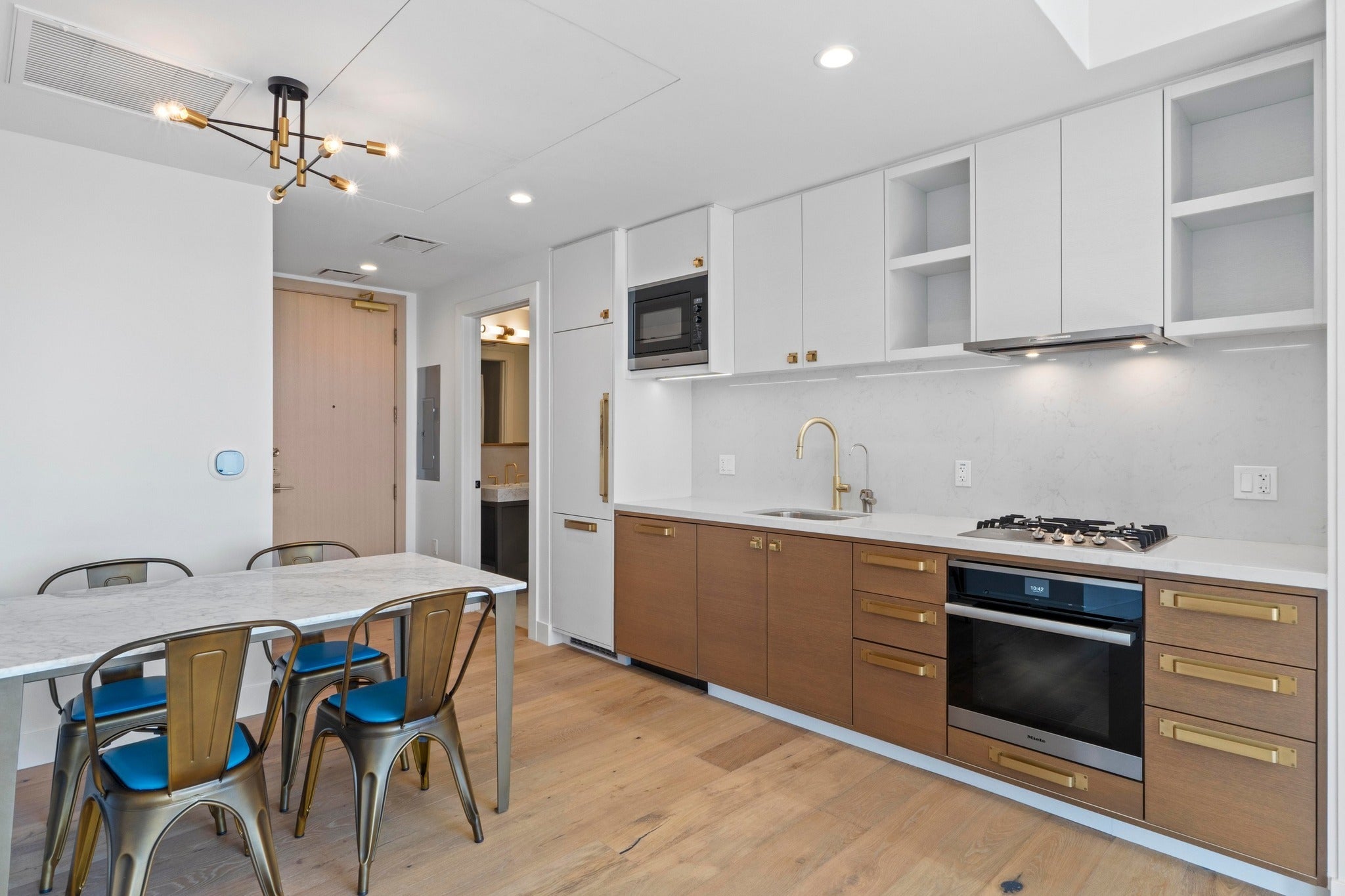 - Built-In Electric Oven, Dishwasher, Exhaust Fan, Gas Cooktop, Disposal, Microwave, Stainless Steel Appliance(s), Built-In Refrigerator