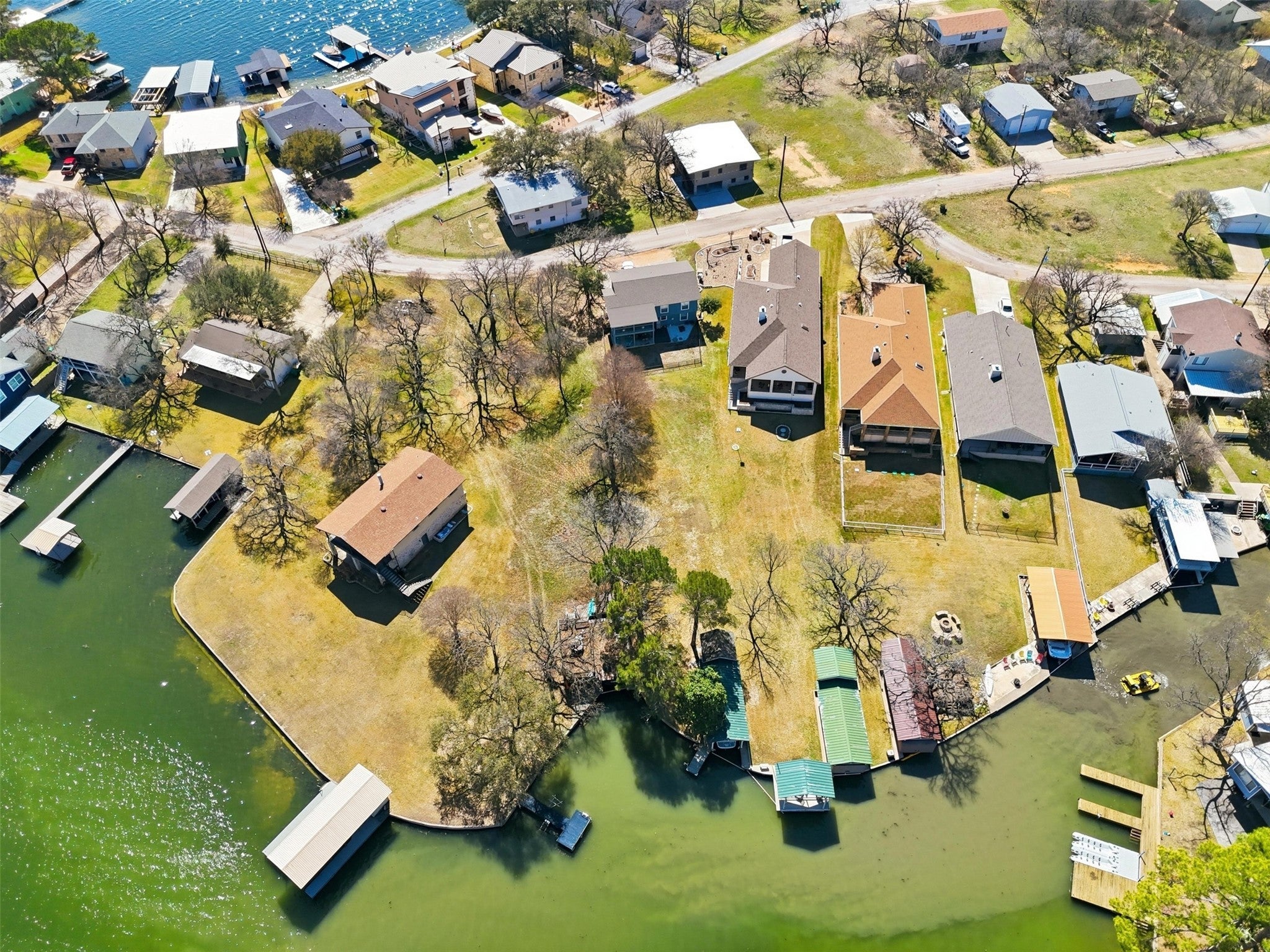 Waterfront living in a cost-efficient arrangement on beautiful Lake LBJ! This wonderful family lake home has been lovingly enjoyed fornearly 30 years, and it’s now ready for the next owners to create their own Hill Country memories. Located in a peaceful lakesideneighborhood, this spacious two-story home offers over 2,200 square feet of living space, providing plenty of room for family and guests.Featuring 3 bedrooms and 2 bathrooms, the home was originally built in 1968 and has stood the test of time as a comfortable lakeretreat. The downstairs level includes the living area, dining space, and open kitchen filled with natural light, along with one bedroom, afull bathroom, and a convenient stackable washer/dryer. Upstairs features a large living or game room area with flexible space forentertaining, additional dining, or relaxing after a day on the lake. Two additional bedrooms and a second bathroom complete the upperlevel. Step outside to enjoy the welcoming front and side porches and the relaxed atmosphere of this established neighborhood knownfor quiet streets and long-time residents. Just across quiet Clear Cove, you’ll find your private Lake LBJ waterfront lot complete with aboat slip, upper lounging deck, storage, and swim platform with ladder. Located on the cove side, the dock offers easy access to openwater with reduced wave action—perfect for swimming, boating, and lake fun. If you’re searching for an affordable Lake LBJ getaway orfamily retreat, 625 Deep Cove is ready for you!