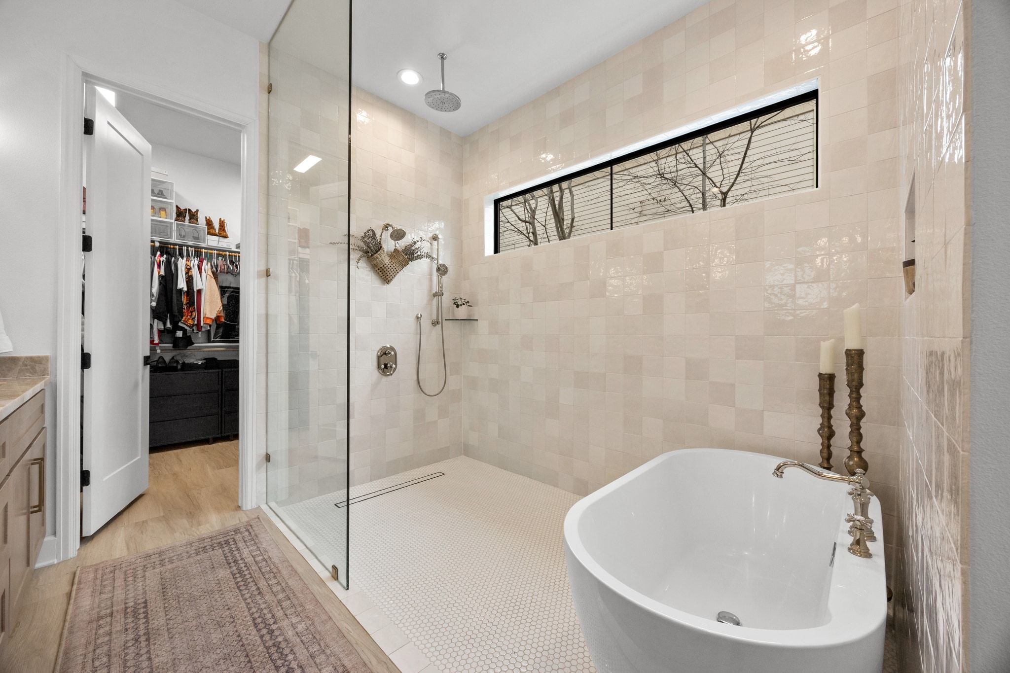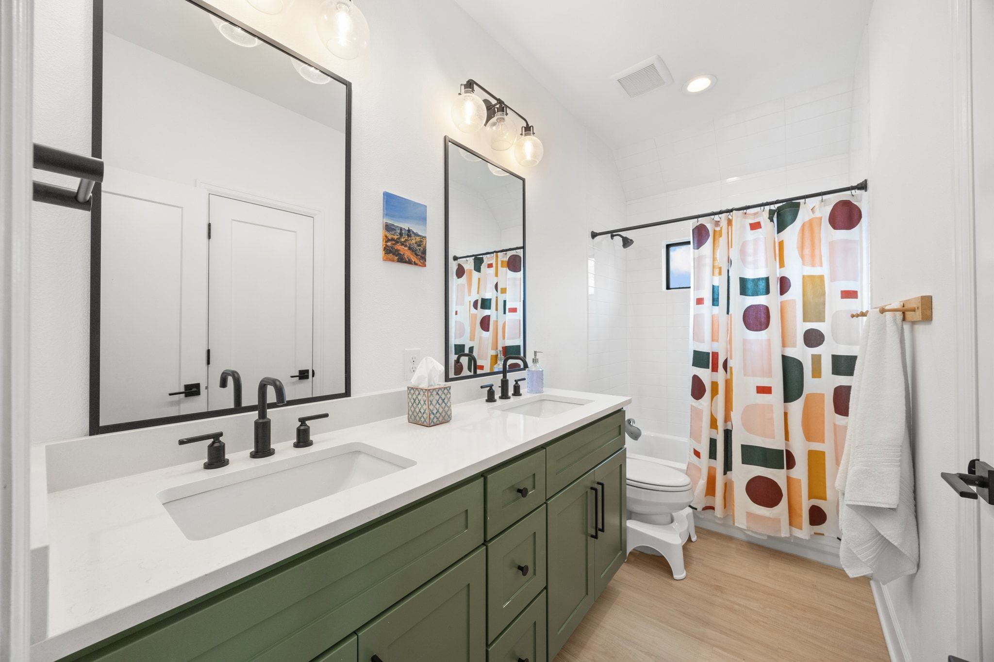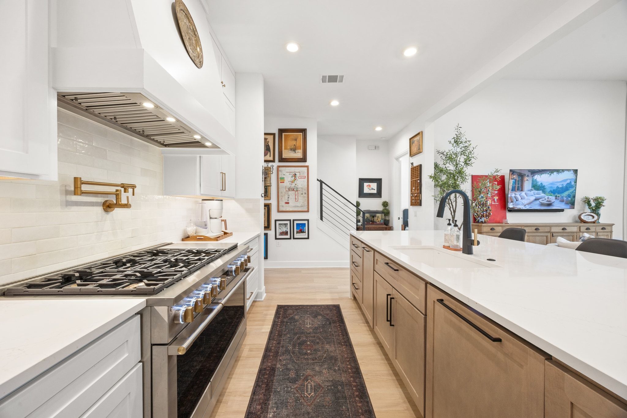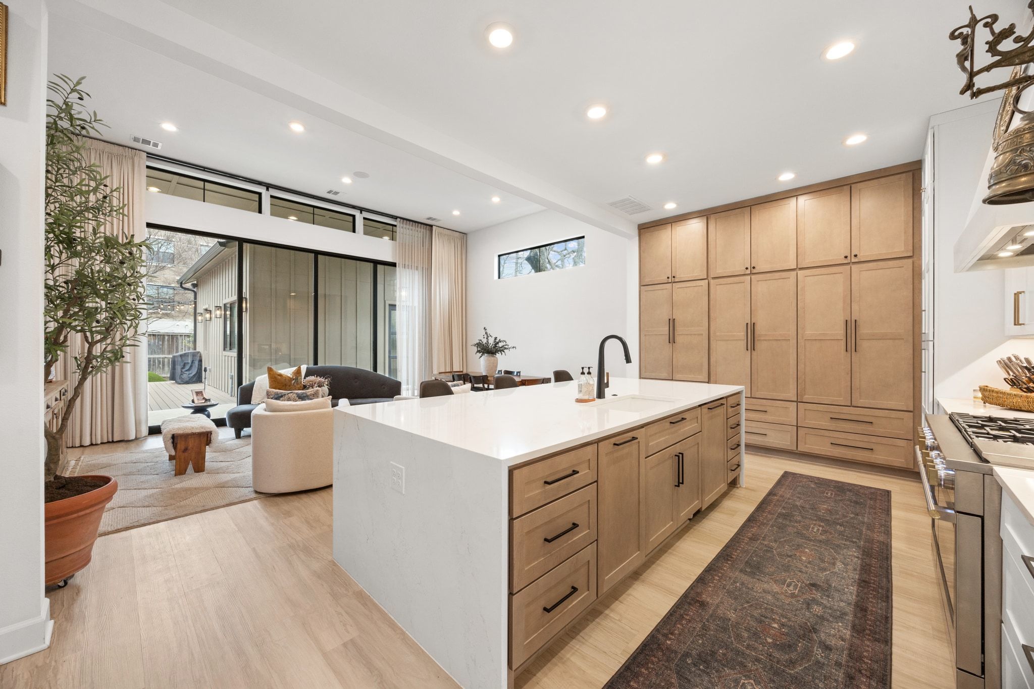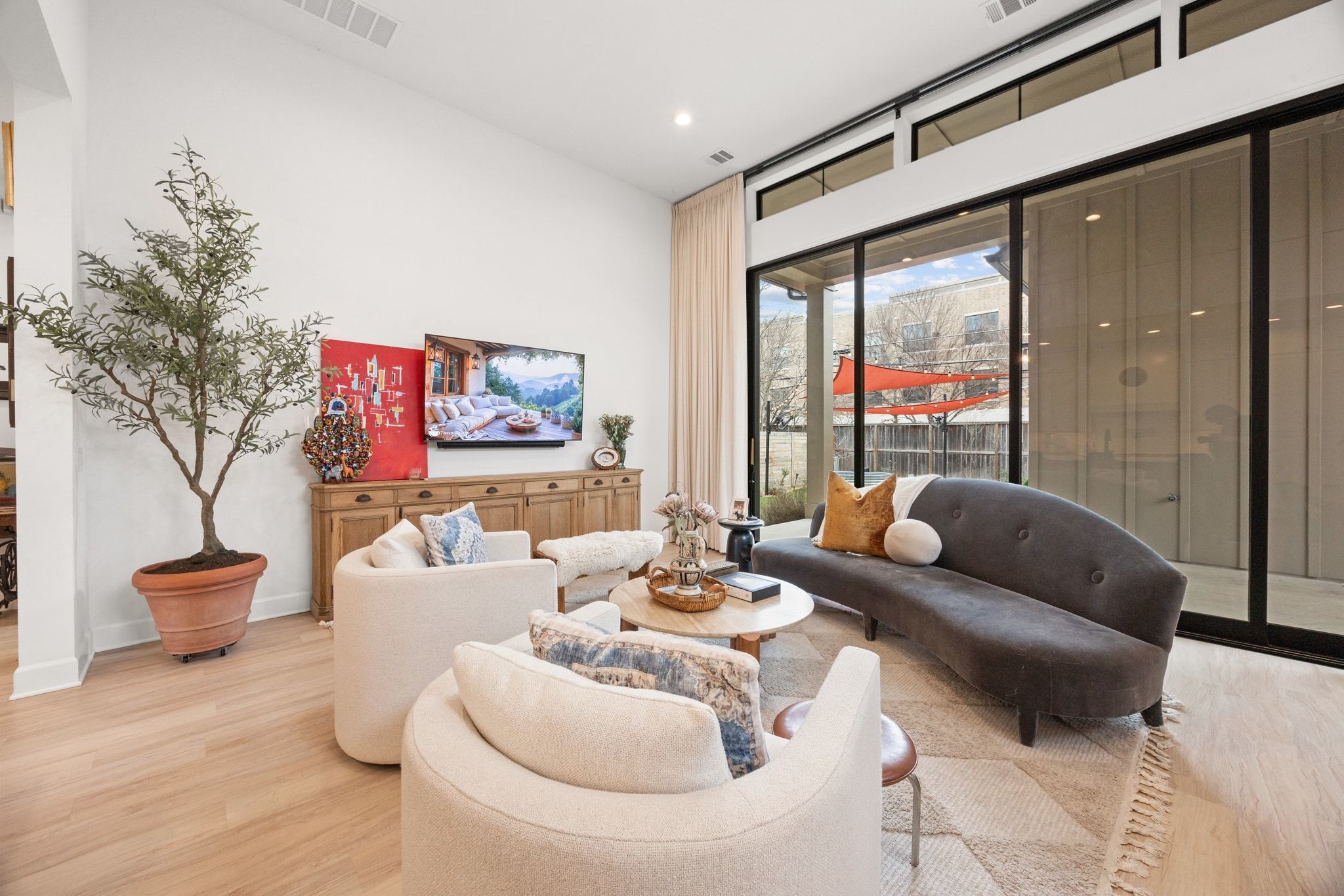 Timeless design with a guest quarters in the heart of North Loop! From the foyer to the guest house you'll find a very practical floorplan with luxury finishes throughout. The main level includes an open kitchen, living and dining with 12' ceilings, the primary wing, a private office, powder room and guest house! No expense spared in the kitchen including a 48" commercial grade range with dual oven, a cabinet paneled refrigerator and dishwater and large island. The living flows to the backyard with a wall of glass four panel Western sliding door opening up 16'x10’. The primary also overlooks the backyard with a wall of glass. Relaxing oversized primary bathroom with freestanding tub and oversized shower. Also on the main floor is the guest house, great for a multigenerational family for easy access. The guest quarters include a living space, kitchenette (with margarita window!), bedroom and full bathroom. What a fun backyard! Fully turfed with low maintenance, a temperature controlled cowboy pool (hot and cold), shade sails, commercial misting fans, and a large storage shed. Upstairs you'll find three additional spacious bedrooms, full bathroom with dual vanity and playspace/living room. What a location! Countless restaurants and coffee shops within 5-10 min, easy commutes to DT, The University, The Domain and Arboretum. Zoned for highly rated Brentwood Elementary!