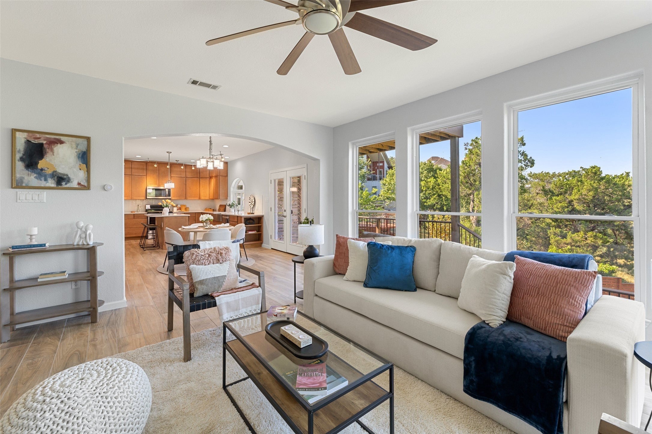 Lake Travis Waterfront Home with Hill Country Views! Nestled on a spacious lot beneath mature trees, this inviting property blends lakeside living with everyday convenience. Designed for flexibility, it’s ideal as a full-time residence, weekend retreat, or income-producing vacation rental. Inside, natural light pours through walls of windows, framing sweeping views of Lake Travis and the surrounding Hill Country. Open living and dining areas create space for entertaining, while the functional kitchen anchors the home. Generously sized bedrooms and flexible spaces provide room for family, guests, or a home office. Outdoor living is the highlight here—expansive multi-level decks offer endless opportunities to enjoy lake views, sunsets, and gatherings under the Texas sky. A private path leads to the water’s edge, where you can kayak, fish, or simply relax by the shore. The oversized lot also offers ample parking and storage for boats, jet skis, or lake toys. Located minutes from Volente Beach, marinas, parks, dining, and shopping—with quick access to FM 620 and Hwy 183—this home combines the tranquility of Lake Travis waterfront living with the convenience of Austin’s amenities. Whether you’re searching for a family lake house, a serene retirement retreat, or a short-term rental investment, this property delivers the Lake Travis lifestyle you’ve been dreaming of.