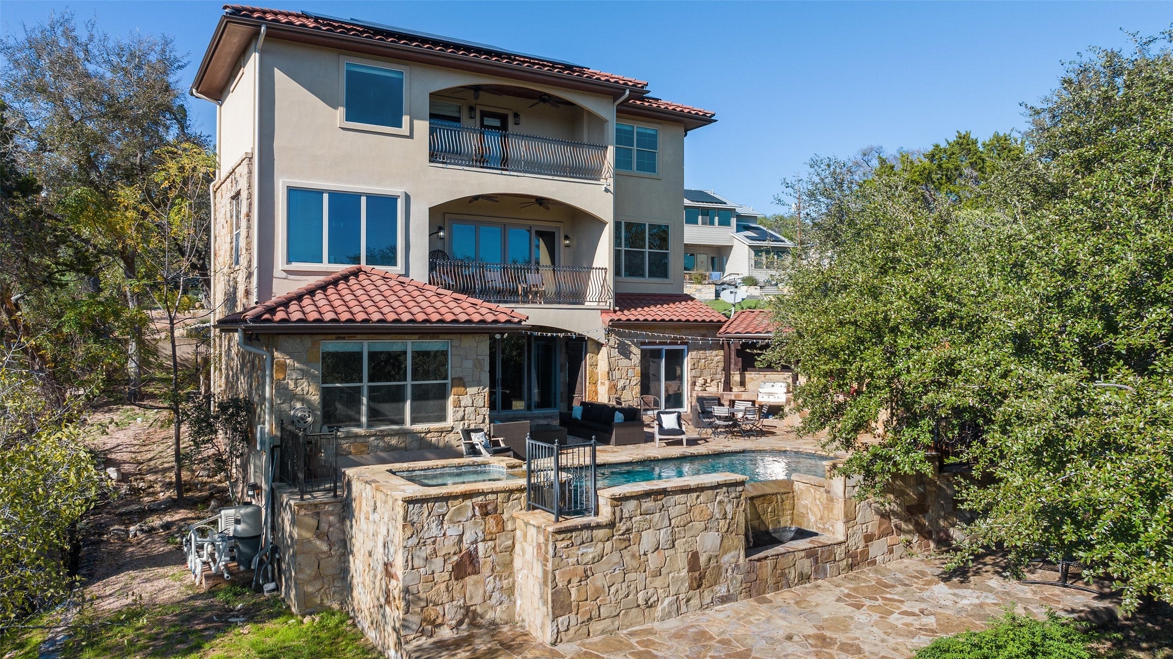 Experience luxury Hill Country living at an exceptional value in this private 2.5-acre waterfront estate. Exceptional waterfront opportunity on the Pedernales River! This stunning Mediterranean estate offers luxury, privacy, and incredible value in one of the area’s most sought-after communities. Featuring 5 bedrooms, a wine cellar, resort-style pool, and two primary suites, the home is designed for both everyday comfort and elevated entertaining. A newly constructed private boat dock provides direct river access, perfect for relaxing, kayaking, or enjoying the natural beauty of the Hill Country. Situated at the end of a quiet cul-de-sac, a private drive leads to this secluded retreat set on 2.5 acres of beautifully landscaped grounds. Enjoy poolside gatherings, then take a short walk down to the water for peaceful sunset views. The expansive acreage offers a rare sense of space and exclusivity while still being conveniently located near Lake Travis amenities. Located minutes from the future Highland Lakes High School, this property blends a serene, ranch-style setting with access to top-tier schools. Priced to reflect an outstanding opportunity, this home delivers exceptional value for waterfront living with acreage, privacy, and premium features—making it as smart an investment as it is a beautiful place to call home.