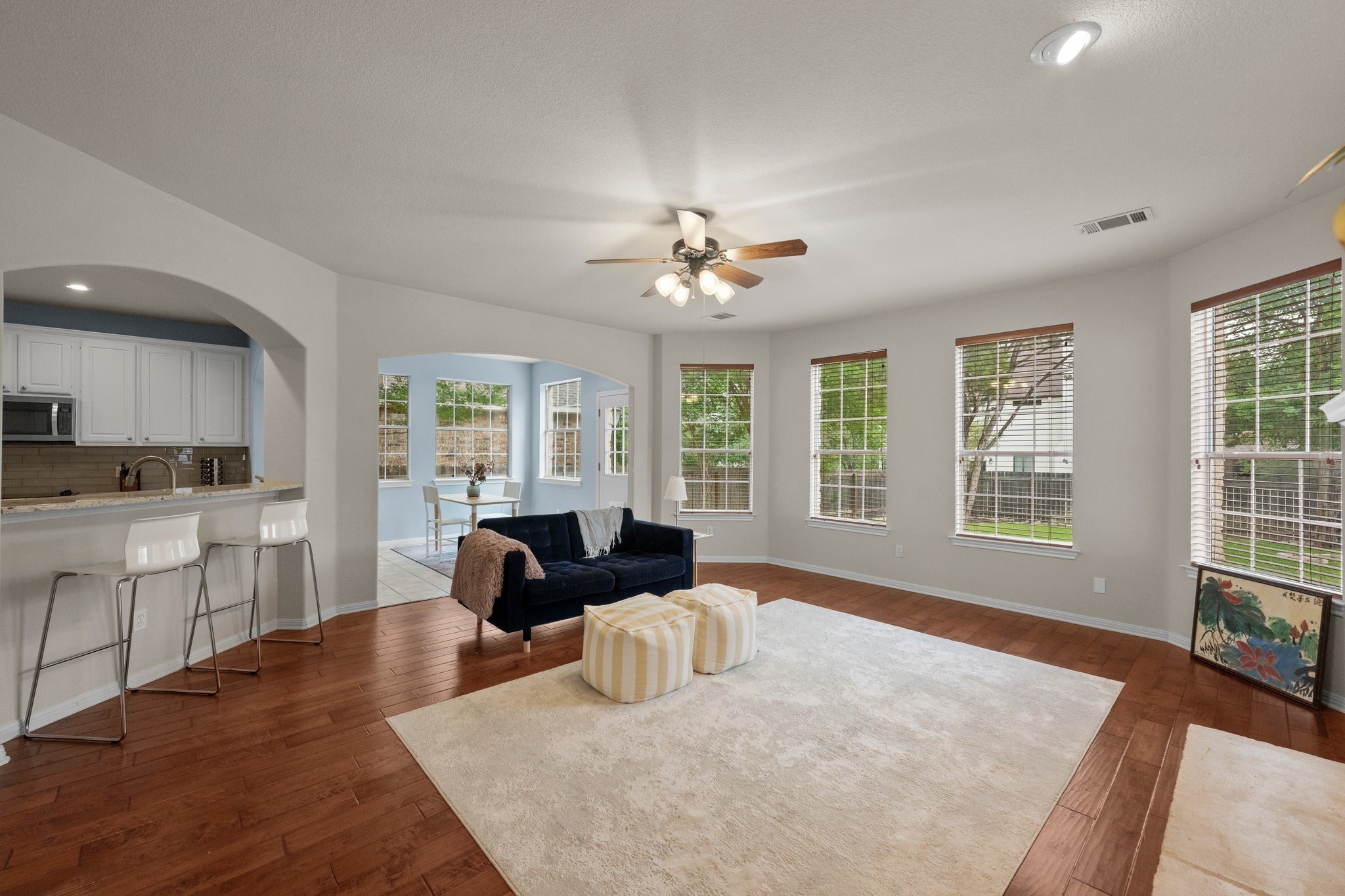 If you lived here...you could start your morning walking to the nearby Lake Pointe Elementary - one of Austin's top-rated schools and the kind of neighborhood anchor that shapes the whole community around it - while sipping coffee with neighbors doing the same. Weekends mean bicycles, fishing at Carlsbad Pond or a quick run to Whole Foods or Trader Joe's for whatever the backyard BBQ still needs. That's Lake Pointe. The Hill Country is out one door, the city is out another and the lake is at the end of your trail. At 3,353 square feet across four bedrooms and three baths, the home gives that life plenty of room. The main level keeps the primary suite tucked away from the action while the updated kitchen anchors it all. Upstairs, a game room connects three bedrooms and two full baths - a floor that works as hard or as quietly as the moment calls for. Out back, the east-facing patio earns its keep year-round: sunny in the morning, shaded by afternoon, with a flat low-maintenance backyard already laid out for a pool. Miles of walking paths wind past the Hill Country Galleria and down to the private Lake Pointe dock on Lake Austin. Three routes to downtown mean you're never stuck. 12316 Carlsbad is where the life you want and the neighborhood you need finally show up at the same address.