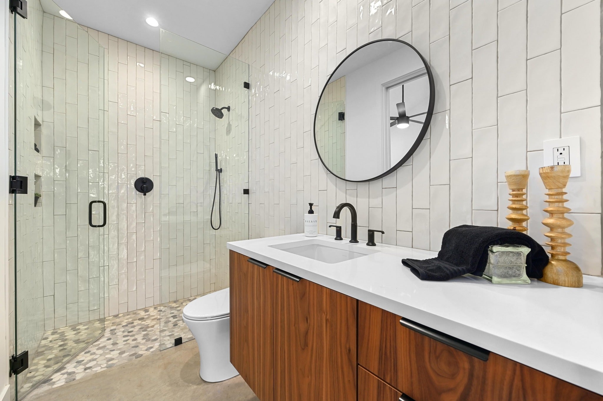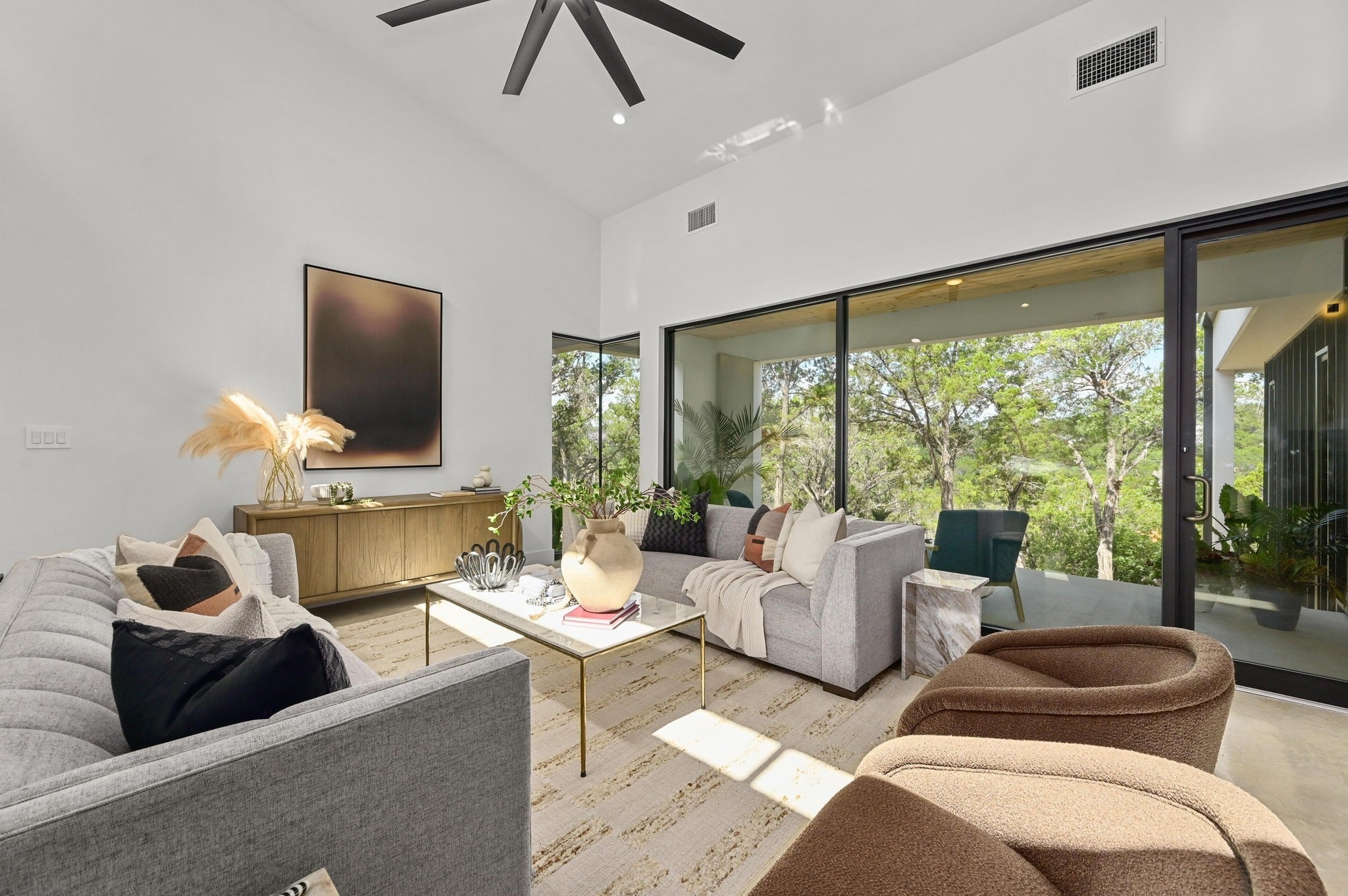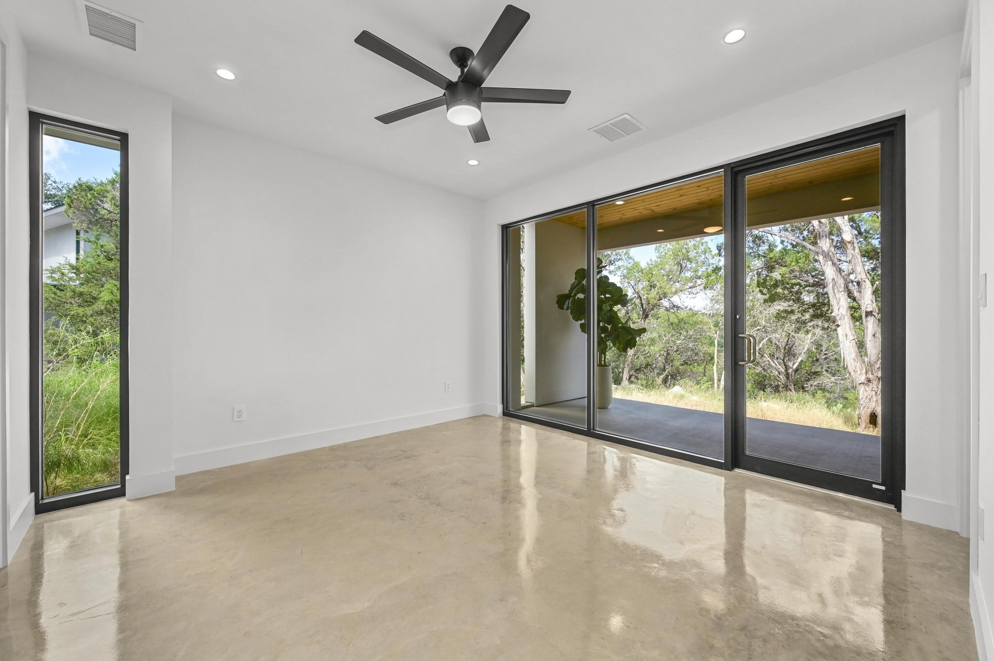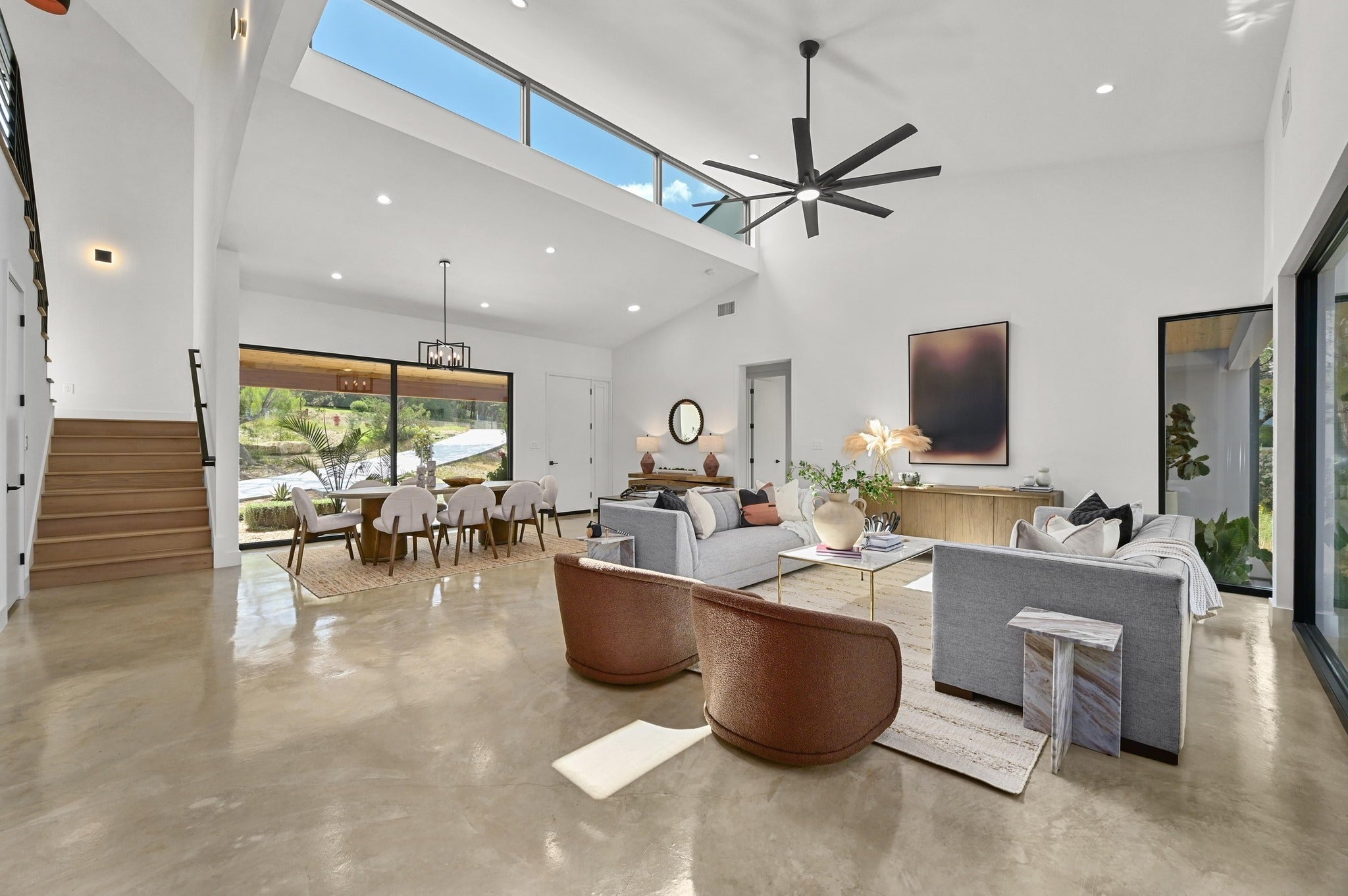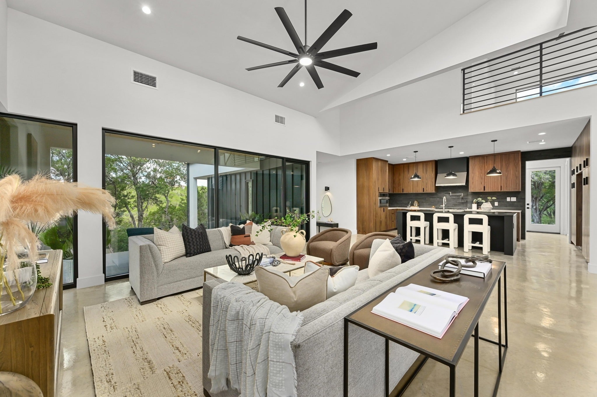 Experience the ultimate Jonestown, Texas lifestyle in this masterfully built retreat, positioned on a secluded Lake Travis cove. Located in The Hollows of Jonestown near Lago Vista, this property offers a rare off-grid vibe and privacy at the end of a quiet cul-de-sac. Whether you are seeking a luxury primary residence, a serene second home, or a high-end Airbnb/VRBO investment, this home delivers the pinnacle of lake living. Nestled into a bluff on 1.7 wooded acres, this Scandinavian-inspired 5BR, 4.5BA home was architecturally driven to integrate into its natural environment, capturing panoramic views and beautiful Texas Hill Country sunsets. The interior showcases clerestory windows, natural finished concrete, white oak flooring, and a chef’s kitchen with full-height walnut cabinetry. The primary suite features large commercial-grade windows, an ensuite with a freestanding soaking tub, luxury shower, floating walnut cabinets, and floor-to-ceiling marble. Built for performance and efficiency, the home includes tankless water heaters, multi-zone HVAC systems, commercial-grade appliances, and a dedicated electric vehicle charger. Outside, enjoy native landscaping, two covered patios, a deck, and a wooded lot extending down to the water. The exterior features durable, high-end finishes including smooth acrylic stucco, tongue-and-groove wooden ceilings, metal roofing/siding, and exposed wooden beams that produce a stunning natural aesthetic. Built by local Austin craftsmen using best practice construction methods and 35 years of building experience, this home is of much higher quality than the industry standard. Come see why this Jonestown gem sets itself apart from all the others.