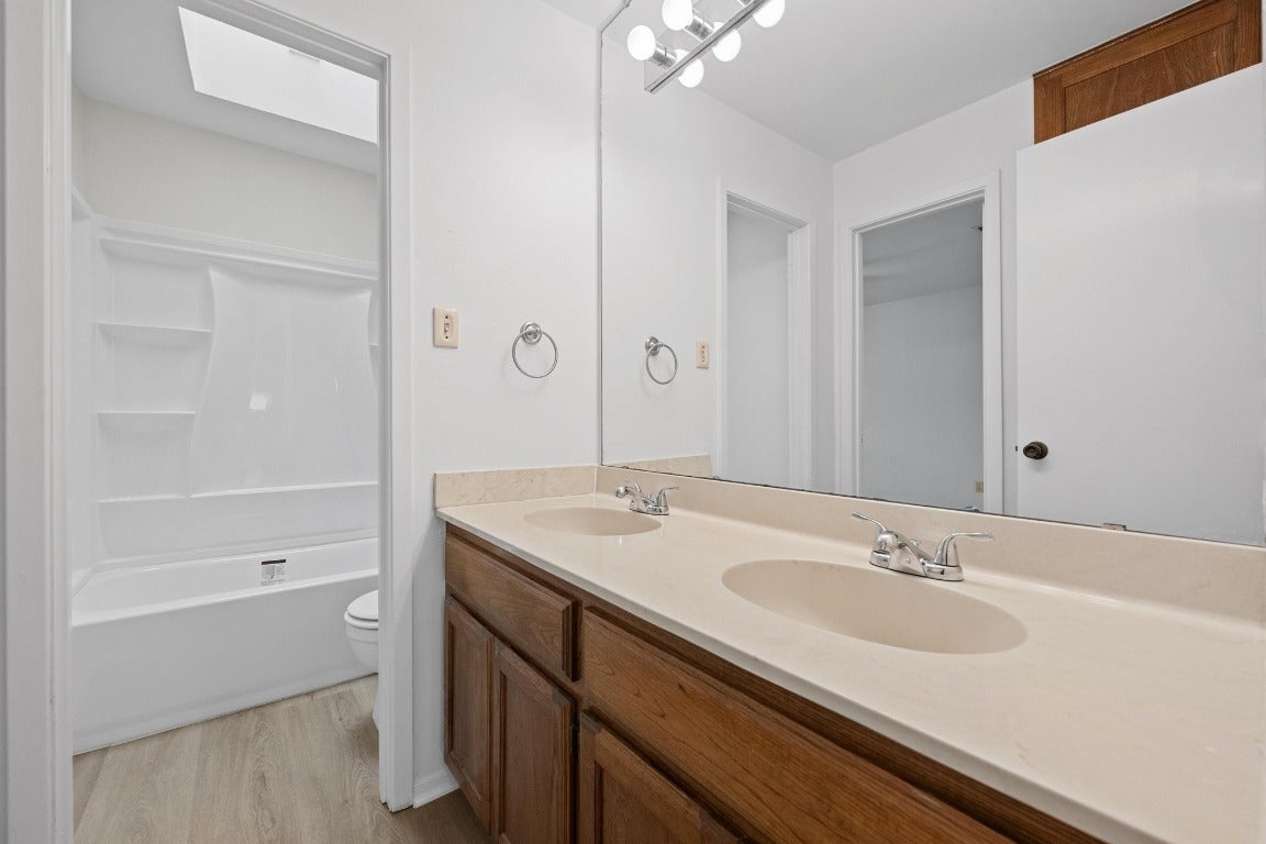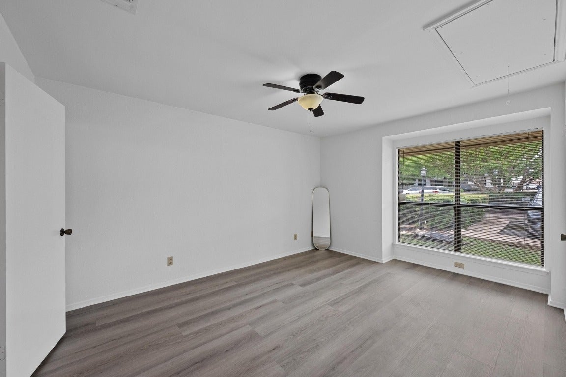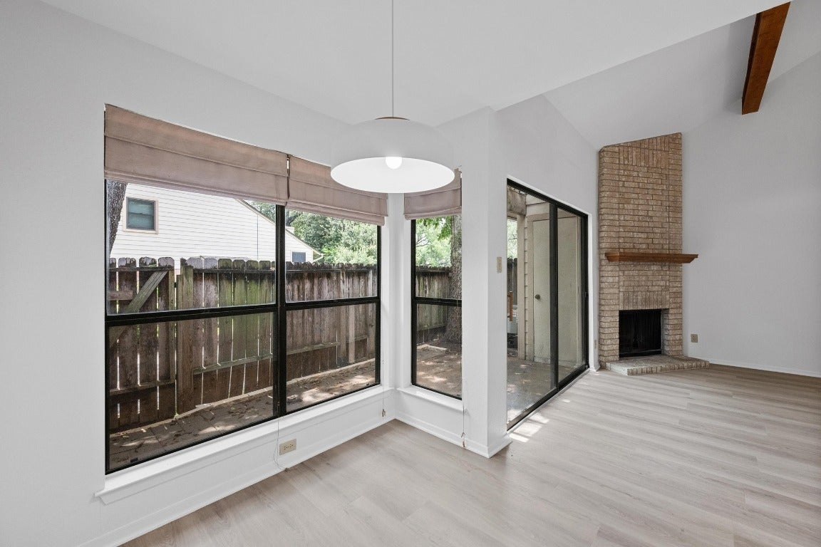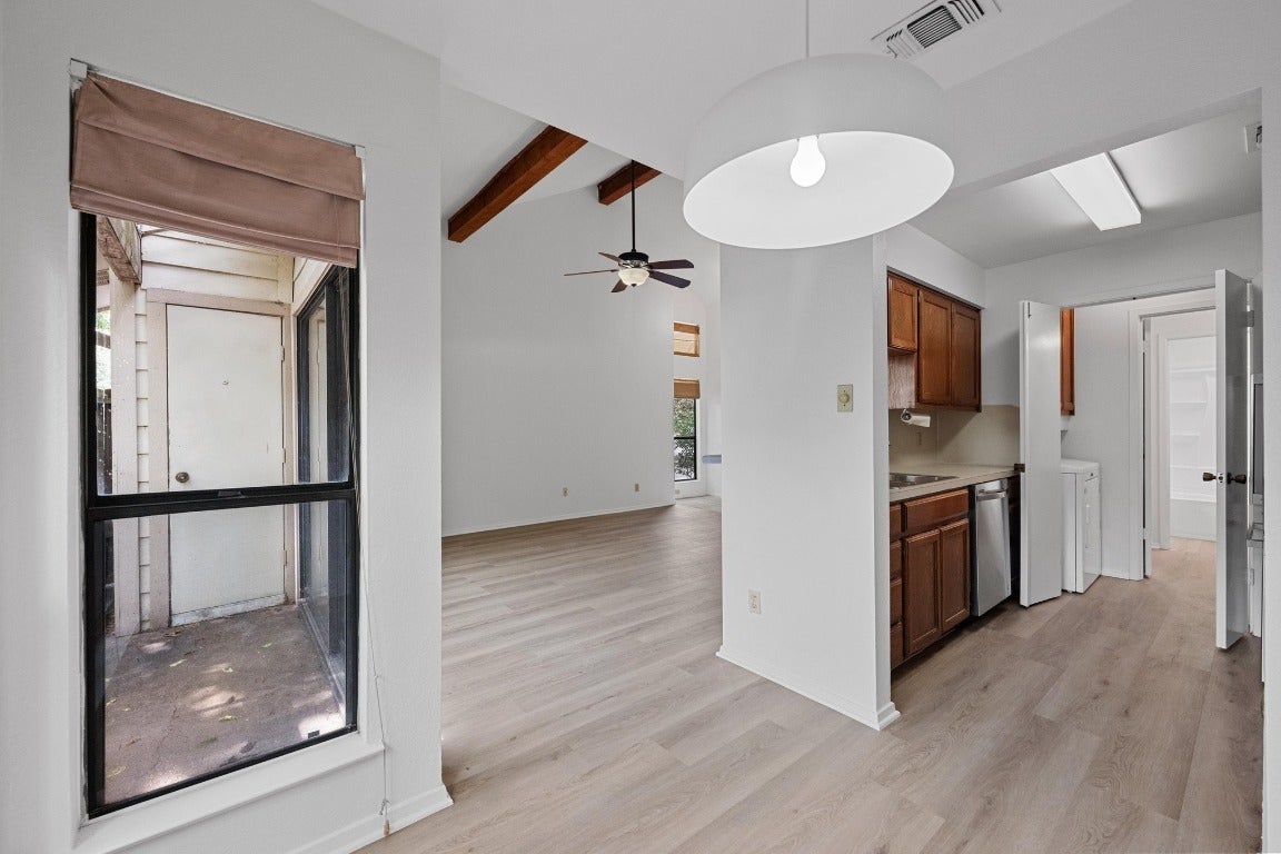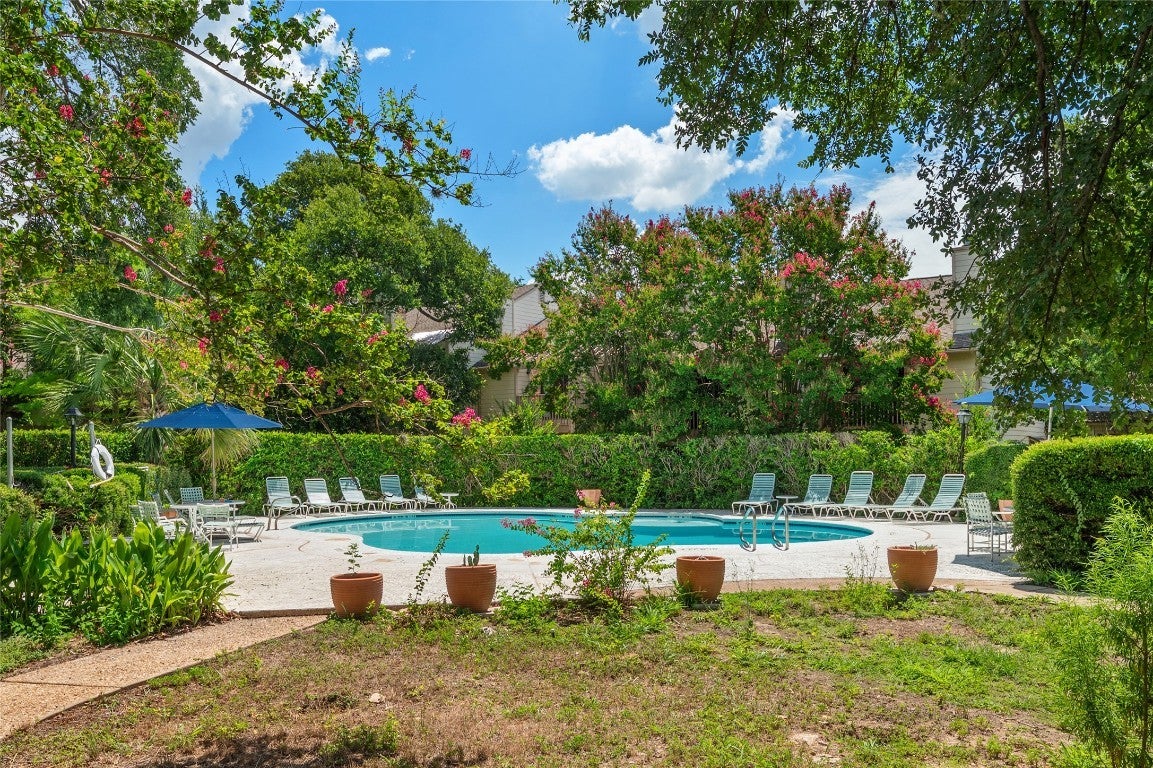This move-in-ready corner unit is tucked away in one of South Austin’s most sought-after communities, complete with a spacious community green space and a fully fenced pool. Unit 6 has been thoughtfully refreshed with new flooring, a brand-new tub and shower, and fresh interior paint. The home also comes equipped with a new energy-efficient refrigerator, stainless steel oven and dishwasher, washer and dryer, custom window treatments, and new lighting — all included in the sale.