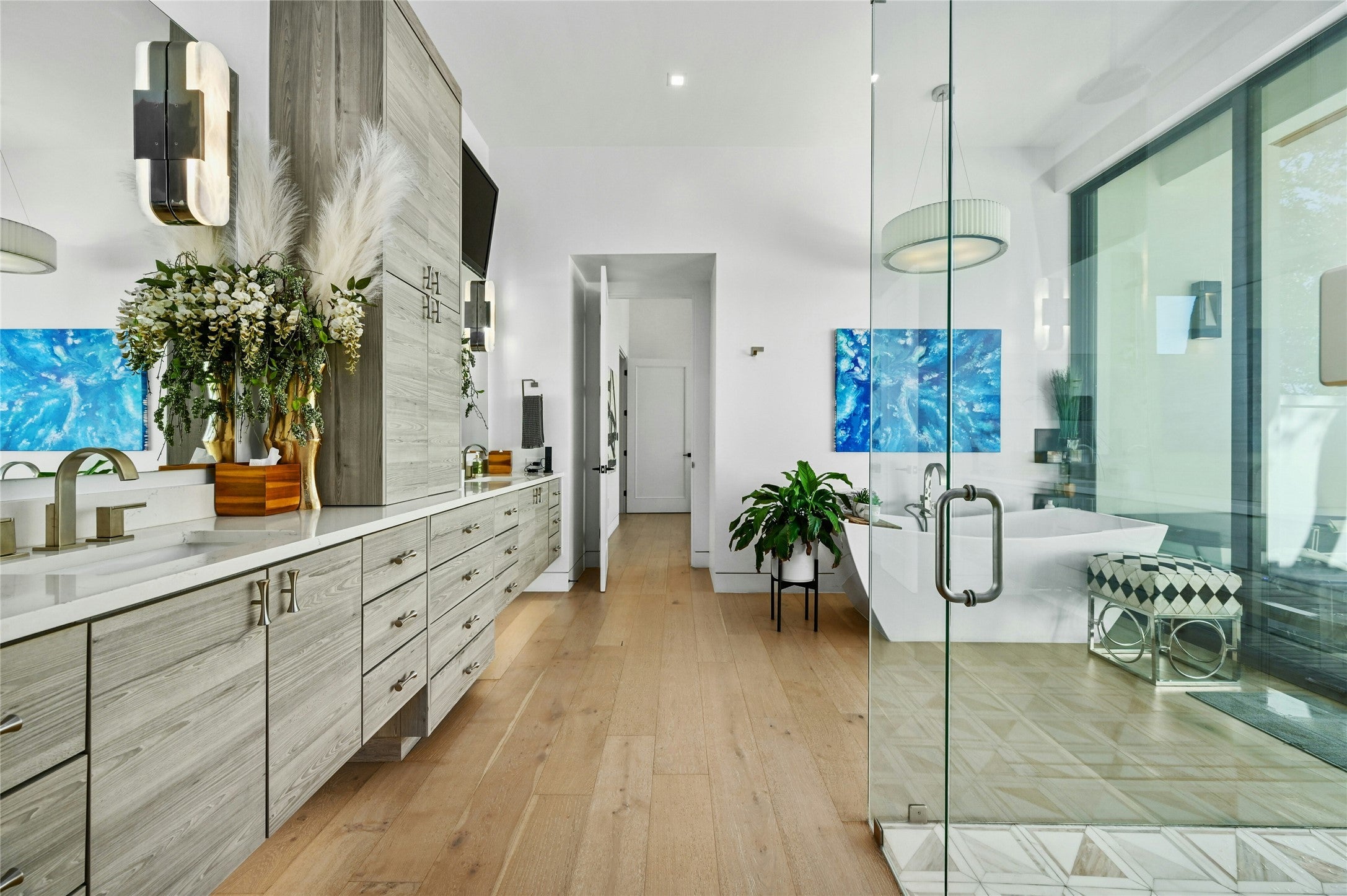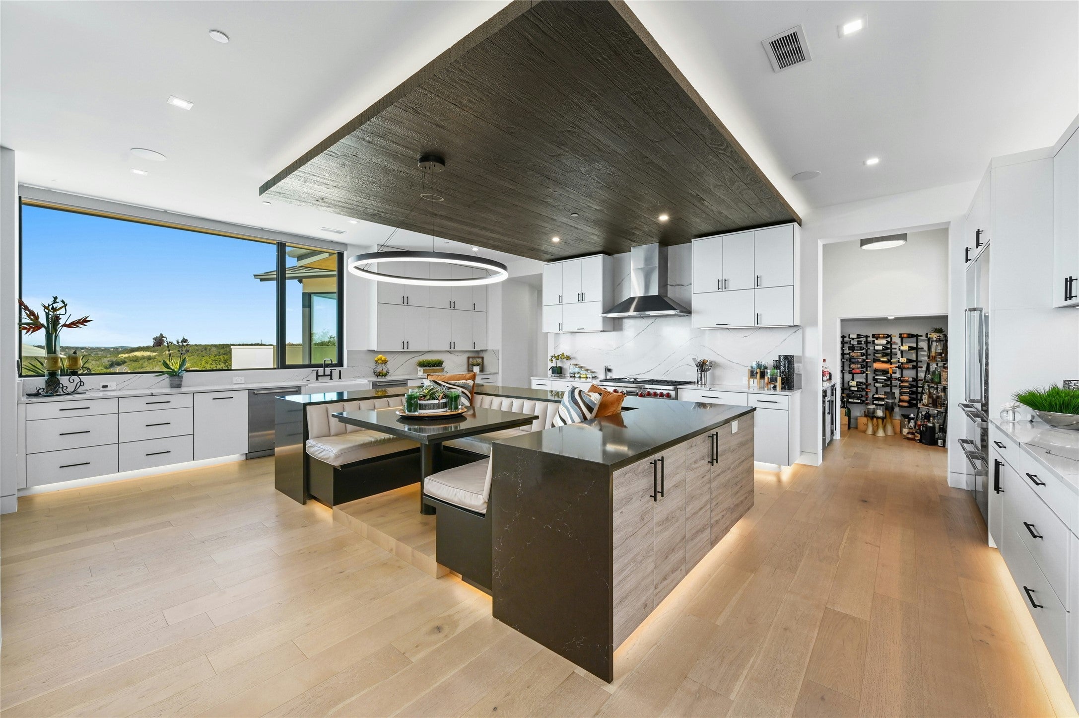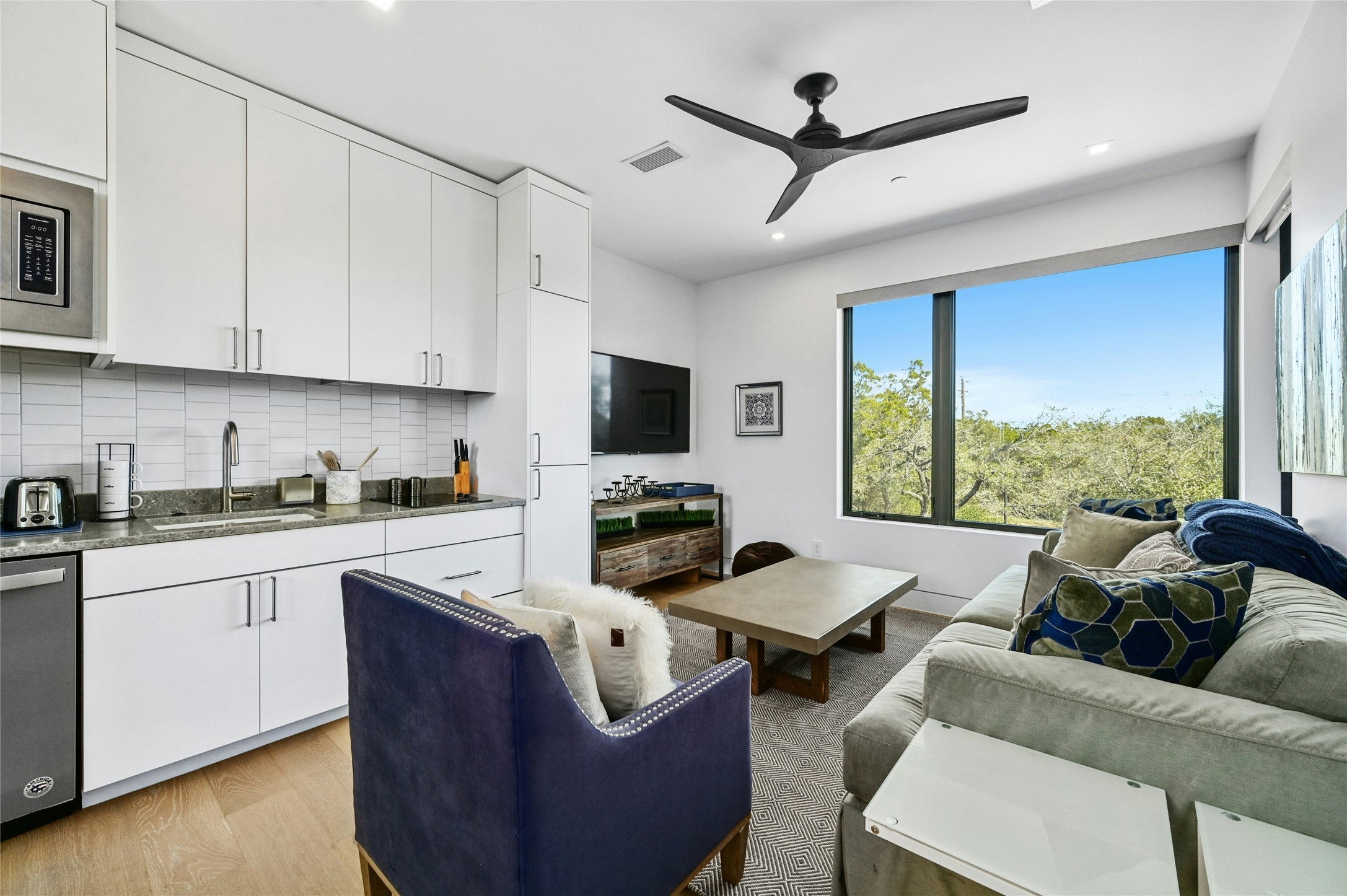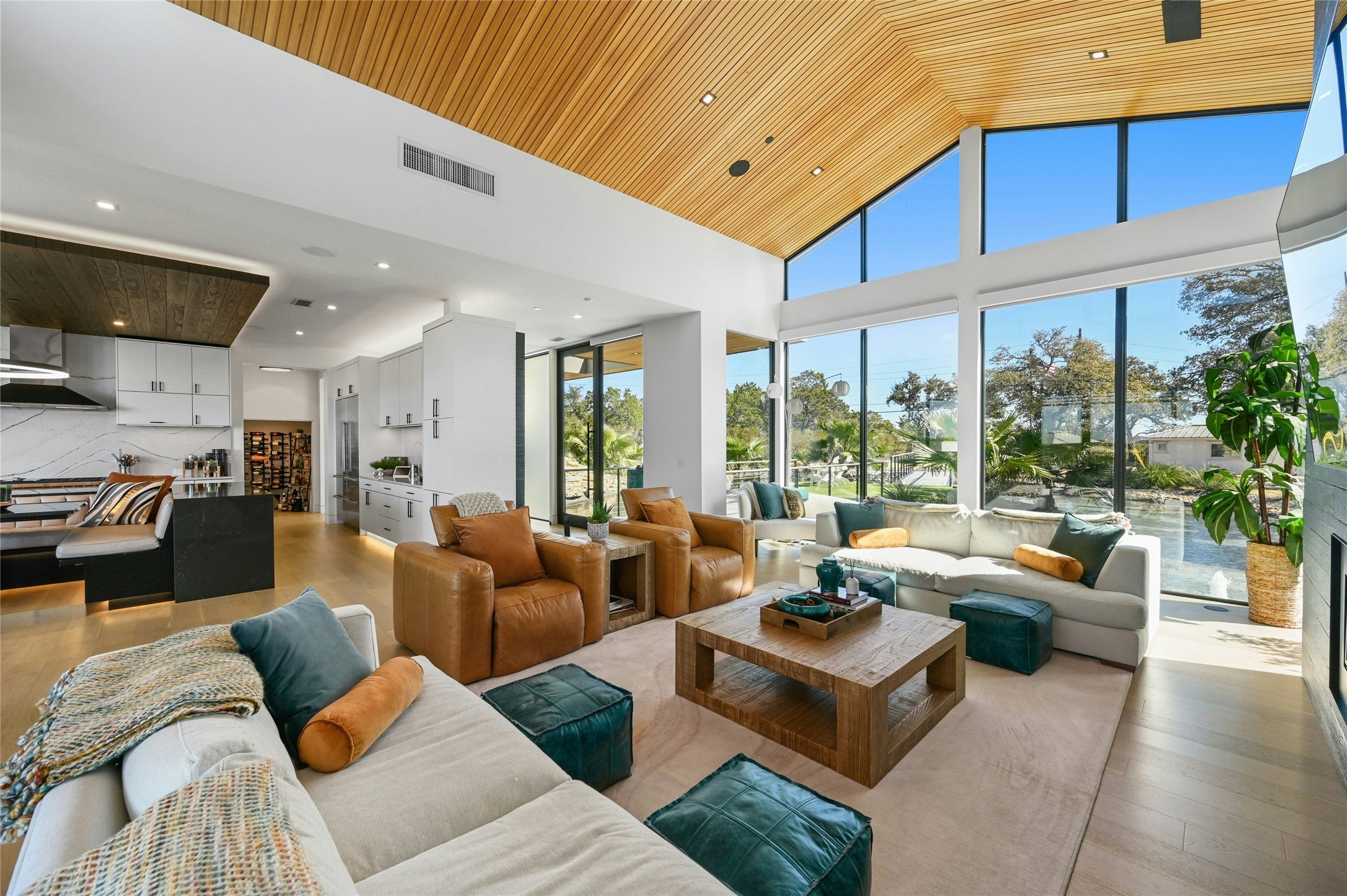 8209 Two Coves Drive is a recently constructed contemporary builder’s personal home with extensive upgrades. Perched atop the rolling hills just off City Park Road, it seamlessly blends striking architectural elements with the natural beauty of the Texas Hill Country. Plus, with a 2025 tax rate of just 1.55% (buyer to verify), this estate represents a rare opportunity to own a state-of-the-art home in a coveted location with some of the lowest property taxes in Austin. A privately gated driveway winds through the lush landscape, leading to a dramatic front entry defined by an expansive mote and waterfall. A modern bridge guides visitors over the tranquil waters toward the residence, setting the stage for the home's contemporary yet serene ambiance. Every detail of the front yard has been meticulously designed with low-maintenance plantings, allowing the home to harmonize effortlessly with its surroundings. This 4-bedroom, 4-bathroom residence, with two additional powder rooms, offers luxurious living spaces, including a dedicated office overlooking the treetop views maximizes natural light and flow. The resort-style amenities continue outside, where ample covered patios, an outdoor kitchen, a waterfall-edge pool, and a hot tub provide the ultimate setting for entertaining against the backdrop of epic Texas sunsets. Beyond the main residence, the property extends its offerings with a casita that currently serves as an office, plus an impressive, detached flex space, complete with a golf simulator and gym, making it an oasis for both relaxation and recreation. Tax and assessed values are estimates for illustration purposes only. All figures should be independently verified.