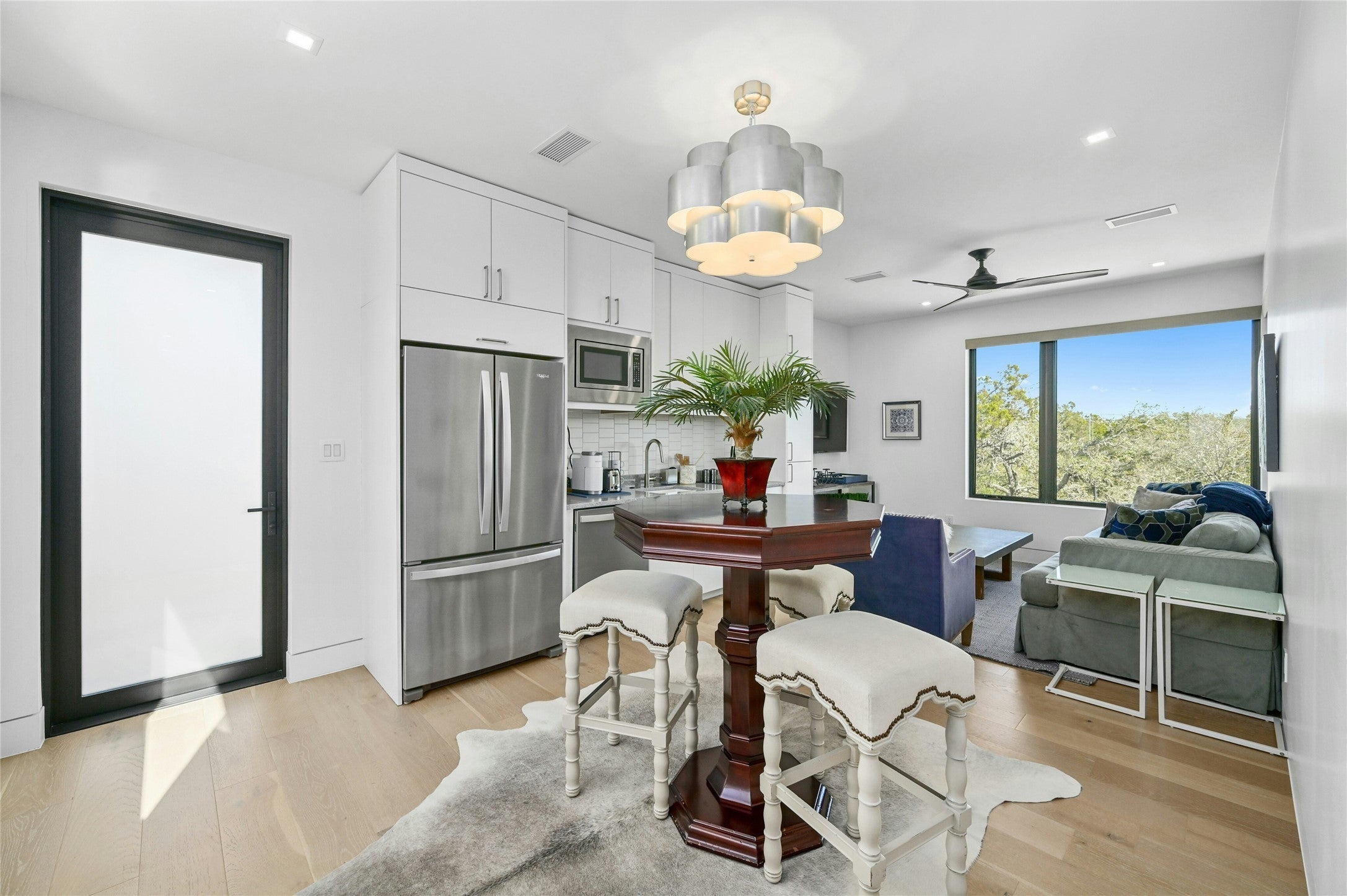 - Built-In Range, Dishwasher, Exhaust Fan, Disposal, Microwave, Oven, Refrigerator, Stainless Steel Appliance(s)