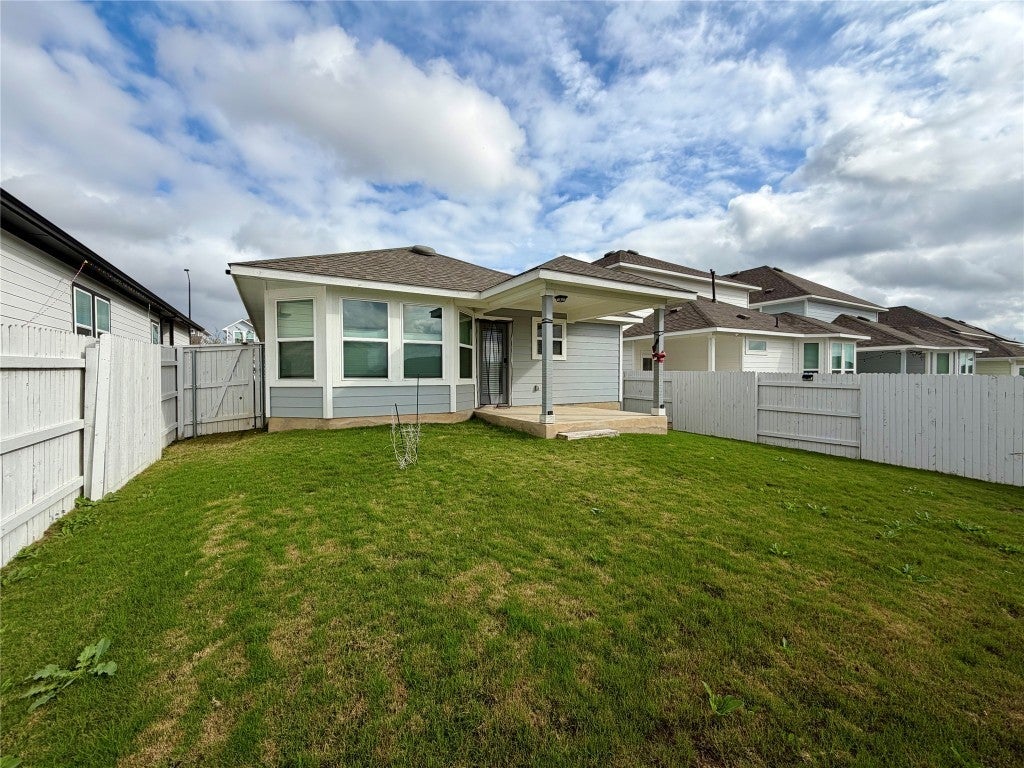 Welcome to 159 Appleberry Lane :: a stylish, move-in ready 2-bedroom, 2-bath home located in the desirable Harvest Ridge community of Elgin. Built in 2022, this modern single-story residence offers 1,360 square feet of thoughtfully designed living space with an open-concept layout that feels both spacious and inviting. Step inside to soaring ceilings, elegant quartz countertops, double vanities, and a bright open floorplan ideal for entertaining or relaxing at home. The kitchen comes fully equipped with stainless appliances, including refrigerator, washer and dryer, making move-in effortless. The private primary suite features a walk-in closet and ensuite bath for added comfort and privacy. Enjoy a landscaped front and backyard, attached two-car garage, and access to community amenities including a pool, playground, and common green spaces — perfect for enjoying the Texas outdoors. Located within Elgin ISD and just minutes to schools, shopping, dining, and major highways, this home offers both comfort and convenience. Pets are negotiable (up to two), and the home is available for 12–24 month lease terms. Tenant pays utilities; owner covers HOA fees. Professionally presented and owner-managed, this is an excellent opportunity to secure a nearly new home in a growing community.