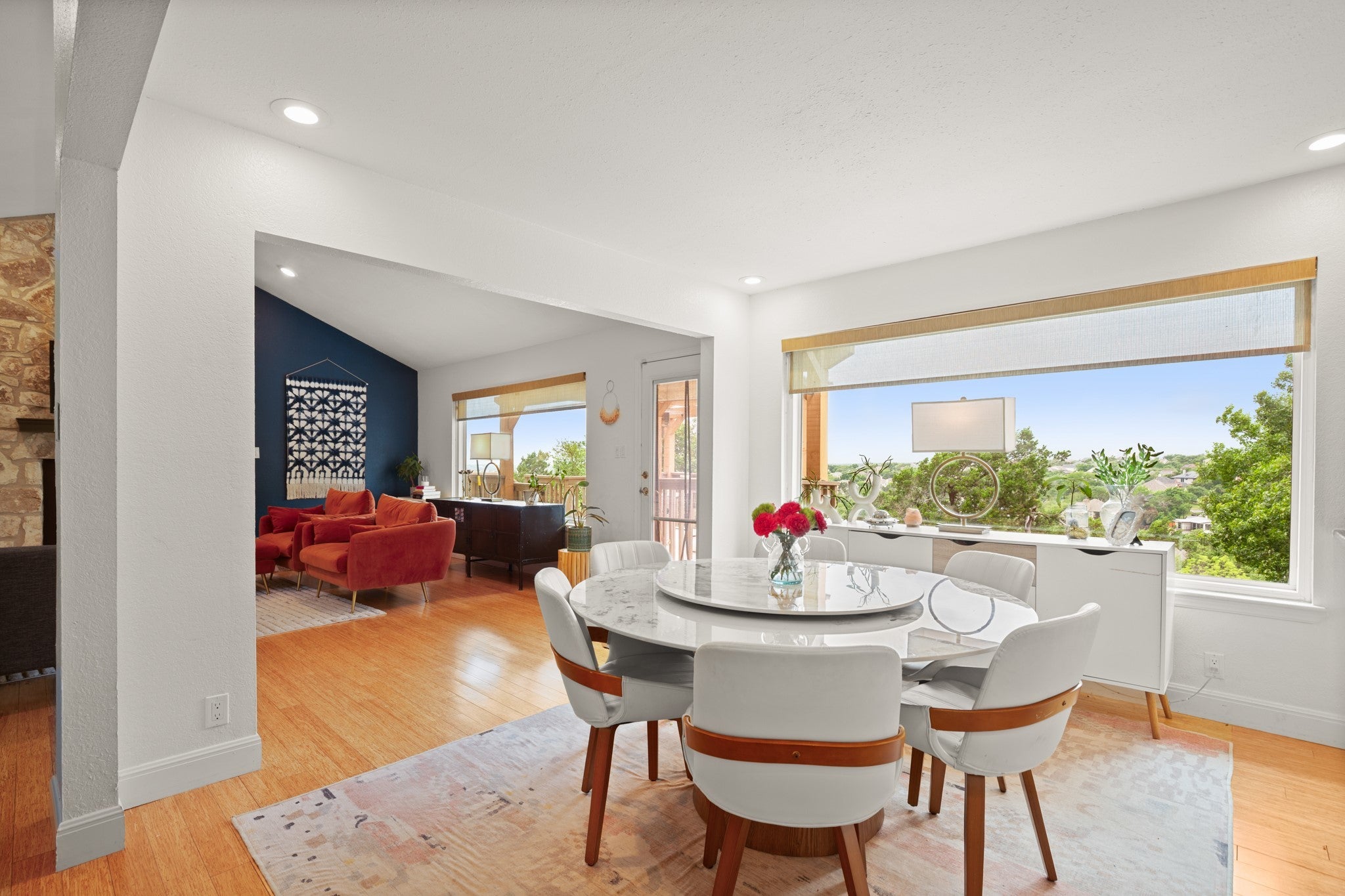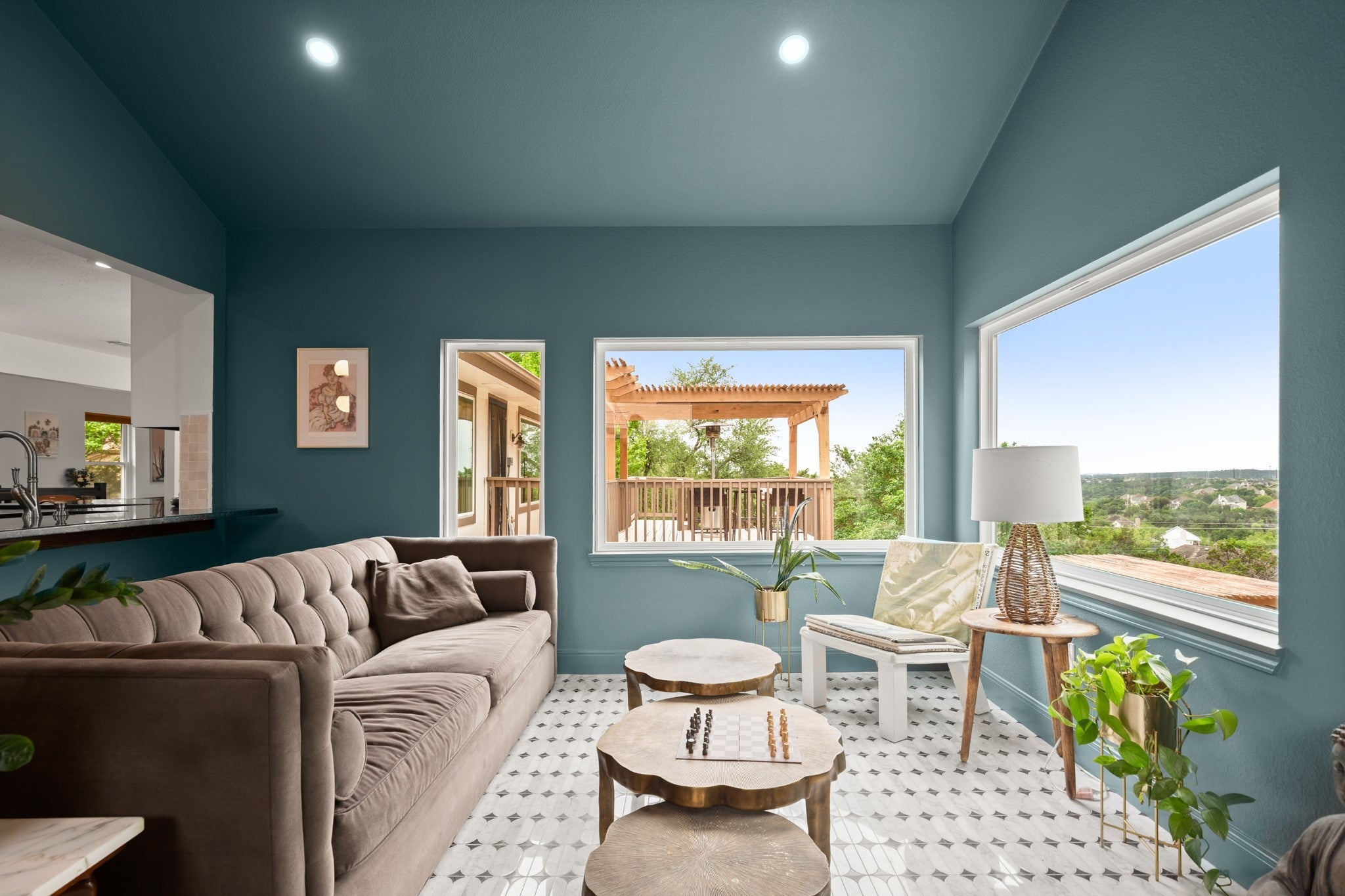 Prime Property with Spectacular Panoramic Hill Country Views, Sparkling Pool, Hot Tub, located in the Heart of North Austin! This home is situated on a Premium Lot, in a semi-Cul-De-Sac with over 100K in recent upgrades. Home has a Unique Layout, offers tons of Natural Light, Large Windows throughout, Large Vaulted Ceilings in Living & in Sunroom, Bamboo & Marble flooring throughout main areas. 4th Bedroom/Flex Space includes Projector & Giant Screen for watching movies. Open Kitchen with Large Island, Granite Countertops, and Mini-Fridge. Recent Upgrades include: Wainscotting in Foyer Entry, new Marble Flooring & Wallpaper, new Marble Floors throughout kitchen & Sunroom, New Windows in Sunroom. Newly Painted Kitchen Cabinets & Tiled Backsplash, New Mini-Split A/C in Garage offers additional living space, New Exterior & Interior Paint throughout entire home. Beautiful Private Backyard with 2 Pergolas, Upper Deck, Saltwater Pool with Fountain, Hot Tub, Outdoor Shower, Giant Lanai Space for Entertaining, Wooded Lot with Mature Trees & Privacy, Land for building additions, Fenced Yard, Sprinkler System, Large Storage Shed with Shelves. Highly Rated Austin ISD Schools. Minutes to Arboretum and Domain with easy access to shopping, dining, and everyday conveniences. 13 miles to Downtown Austin.