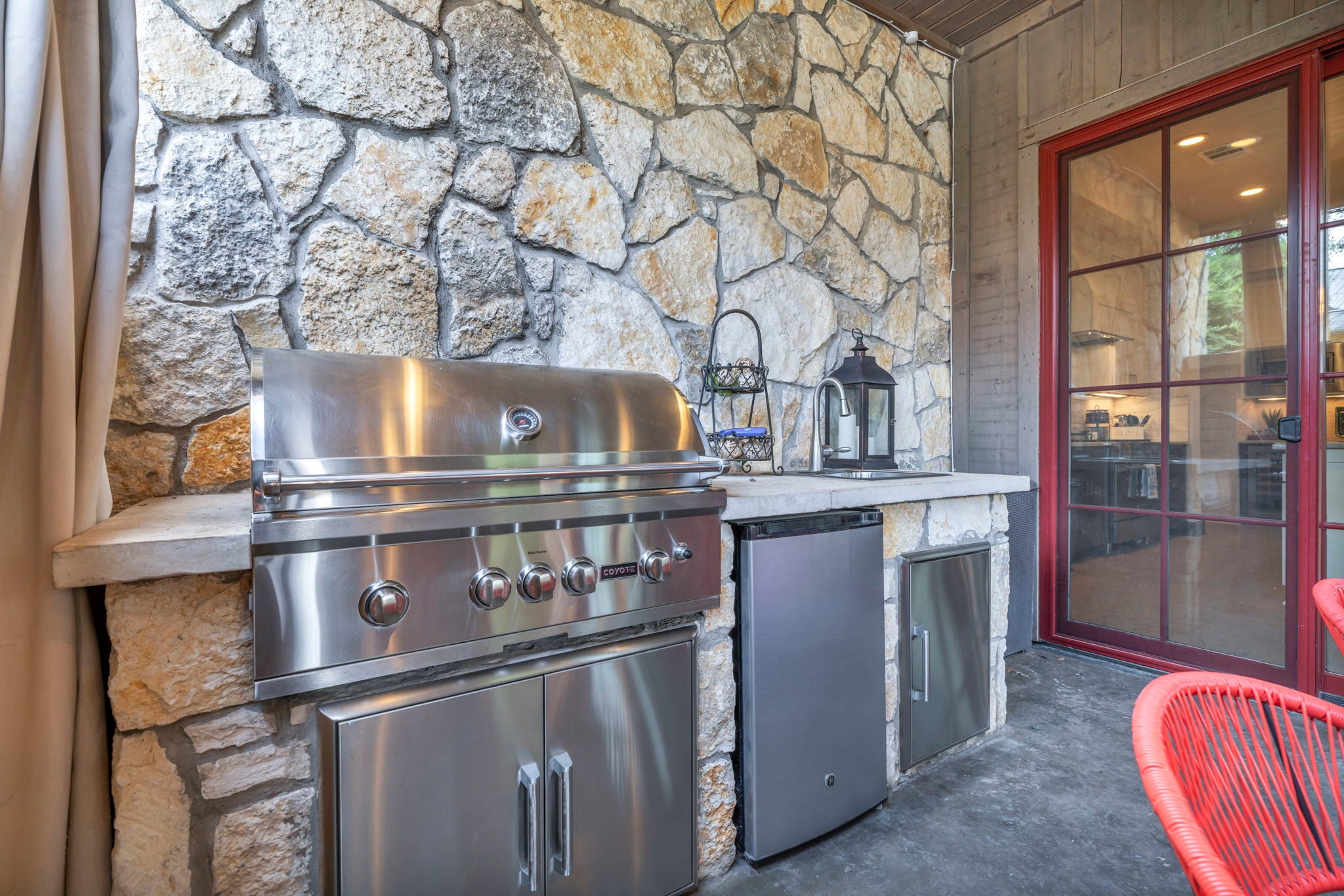 Hill Country retreat in The Reserve at Lake Travis! This beautifully designed 3-bed, 4-bath home offers an open floor plan with high ceilings, exposed beams, and upscale finishes throughout. The gourmet kitchen flows seamlessly into inviting living spaces, while the private primary suite features a spa-like bath with unique indoor/outdoor shower. Enjoy serene outdoor living with a covered patio, outdoor kitchen, and wooded privacy. Resort-style community amenities include pools, lazy river, trails, clubhouse, and marina access. Ideal as a full-time residence, weekend escape, or investment property—minutes from Lake Travis, Bee Cave, and Austin.