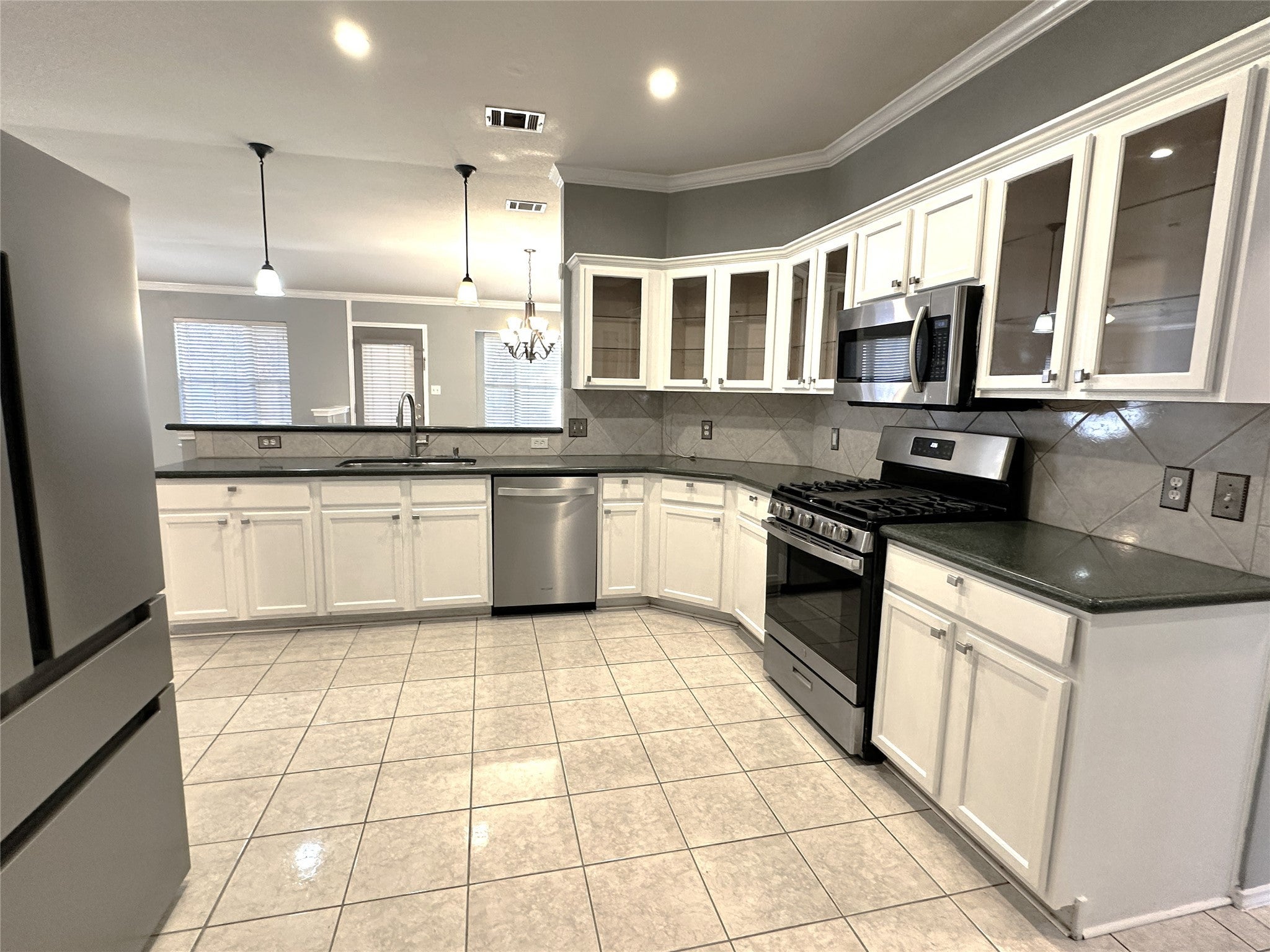 - Dishwasher, Disposal, Gas Range, Microwave, Free-Standing Gas Oven, Range, Refrigerator