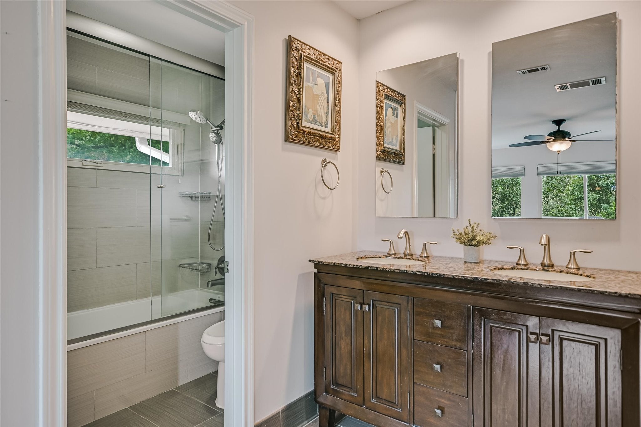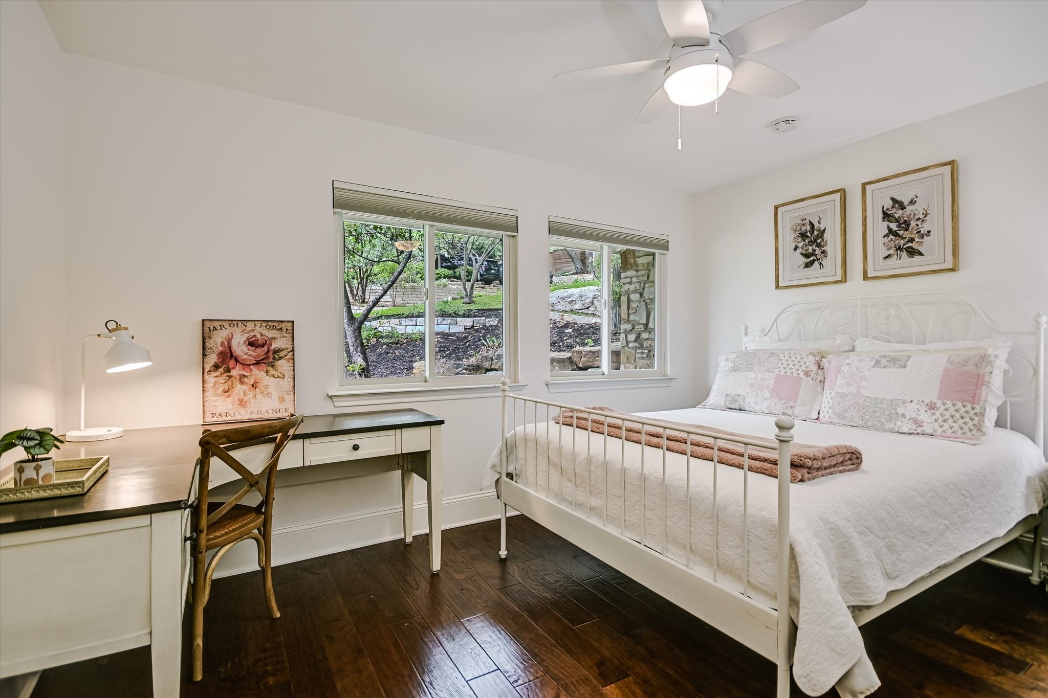 Located in prestigious Northwest Hills, this inviting two-story home is tucked away on a quiet cul-de-sac, offering the rare combination of sweeping views, exceptional privacy, & an expansive .526-acre lot. Priced at $999,000, this property delivers remarkable value in one of Austin’s most sought-after neighborhoods. Expansive outdoor decks & a screened-in porch create the perfect setting for relaxed evenings & lively gatherings. Whether you’re enjoying morning coffee from the balcony, unwinding in the screened porch, or taking in serene Hill Country views, this home embraces indoor-outdoor living at its finest. An outdoor sports court adds even more opportunity for recreation & fun. Spanning 2,398sqft, the home features four bedrooms & two-and-a-half baths. The main level is filled with natural light & welcomes you with high ceilings, a cozy fireplace, French doors opening to a balcony, & an adjoining dining room ideal for entertaining. The kitchen offers granite countertops, tasteful finishes, & newer appliances. The versatile great room provides additional living space with direct access to the screened porch. Three bedrooms are located on the main level, including two connected by a Jack & Jill bath. Upstairs, the private primary suite is a true retreat, featuring tall ceilings, breathtaking views, & its own balcony for a peaceful escape. Recent updates include a GAF Armor Shield II Class 4 roof, water heater, fresh interior & exterior paint, updated lighting & ceiling fans, newer windows, blinds and more — providing peace of mind for years to come. This home beautifully blends the tranquility of Hill Country living with everyday convenience. Enjoy easy access to Whole Foods, HEB, & shopping & dining at The Arboretum and The Domain. Zoned to highly regarded Doss Elementary, Murchison Middle School, and Anderson High School. A rare opportunity to own a private, view-filled retreat in the heart of Northwest Hills — all under $1 million.