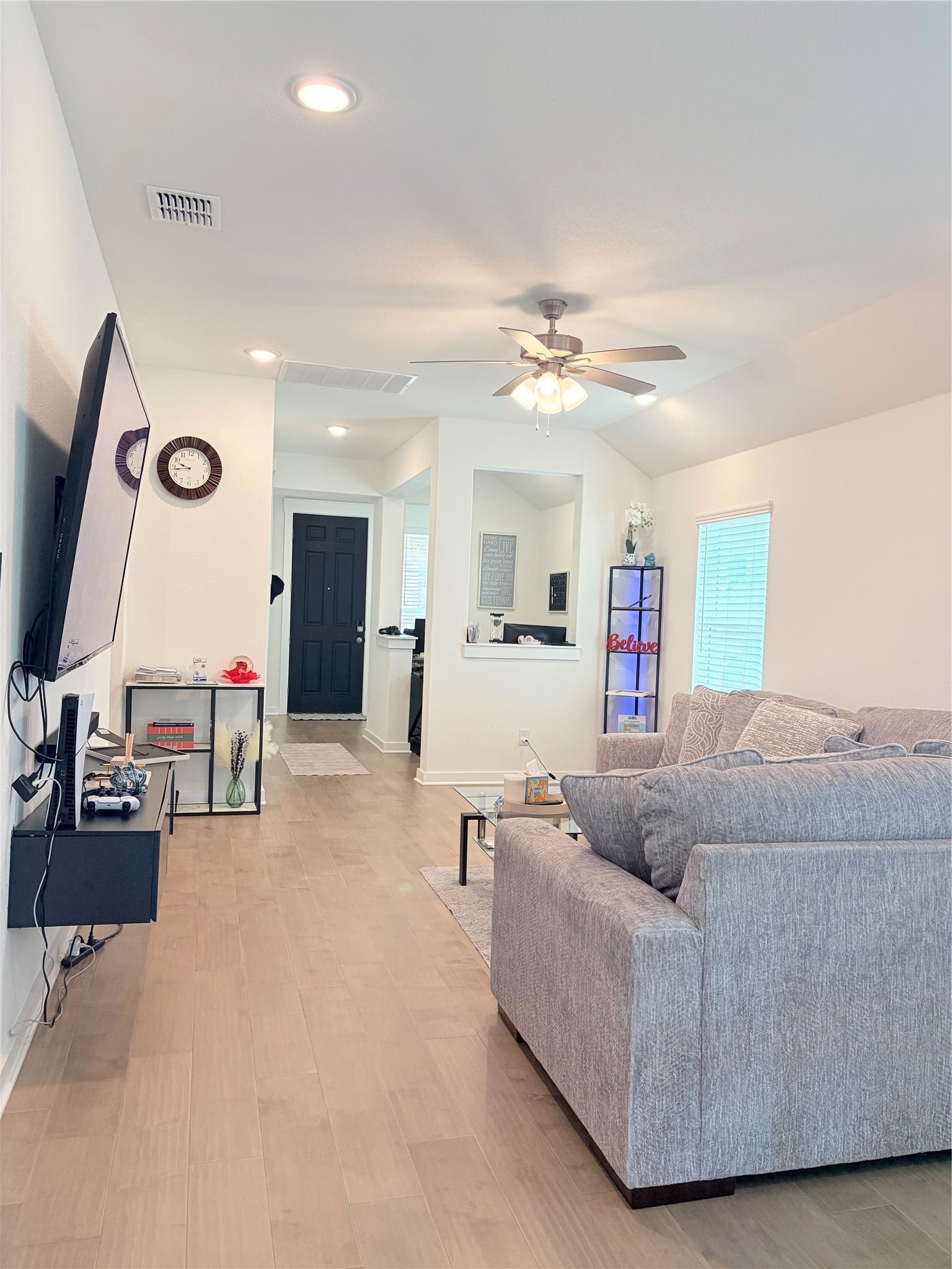 Welcome to this beautiful 3-bedroom, 2-bath home located in the highly sought-after Crosswinds neighborhood! Designed with comfort and functionality in mind, this home features a spacious open floor layout that seamlessly connects the living, dining, and kitchen areas—perfect for both everyday living and entertaining. Step outside to enjoy the covered back patio, an ideal space for relaxing evenings, weekend barbecues, or simply enjoying the Texas weather. The home also includes valuable upgrades that add convenience and peace of mind, including a water softener system and a built-in security system complete with a video doorbell. Conveniently located near major retailers and everyday essentials such as Costco, HEB, and Target, this home offers the perfect blend of neighborhood charm and easy access to shopping, dining, and entertainment. Don’t miss the opportunity to make this move-in-ready home in Crosswinds your own!